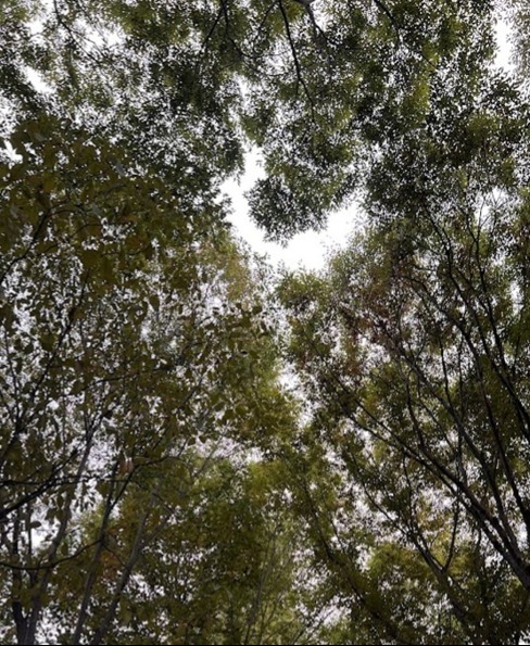 複数本の木を植えると、お隣同士の木の葉っぱと葉っぱが触れると、「エチレン」という植物ホルモンの一種を出して、それ以上伸びないようにしているそうです。