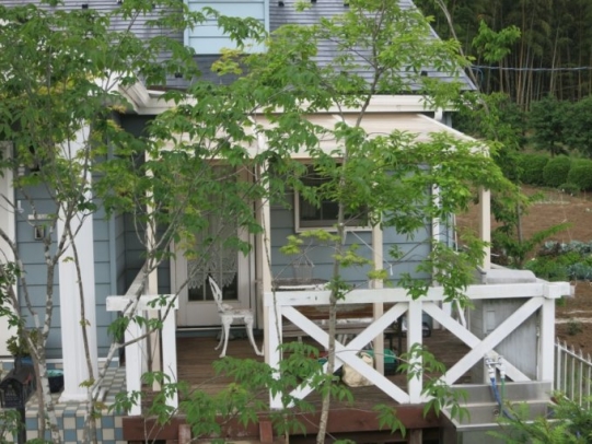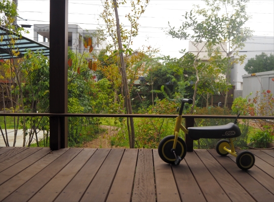 こちらの神奈川県愛甲郡K様邸は、最初に雑木を植えて、後から既存のウッドデッキにココマのテラスタイプを設置しました。