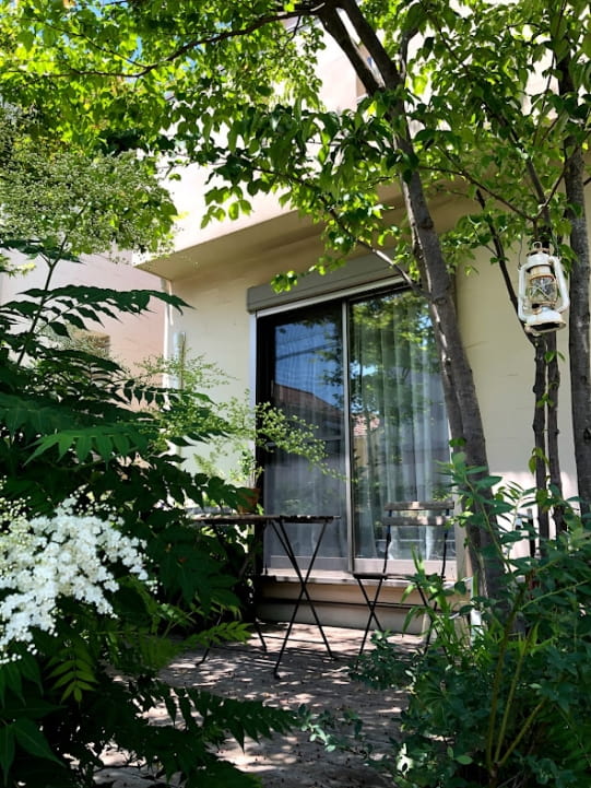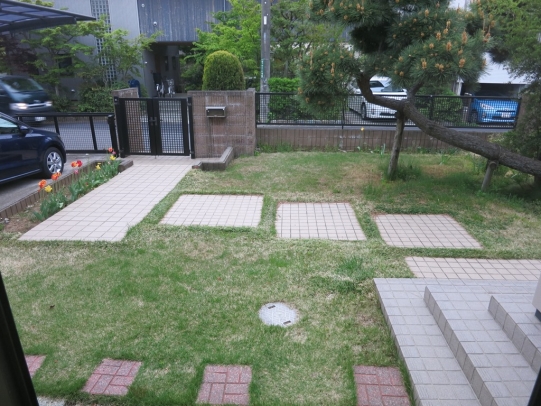 お母様が、植物を育てるが上手で、どんどん大きくなっていきます。くつろげる芝生部分もあり、心地良い庭になっています。