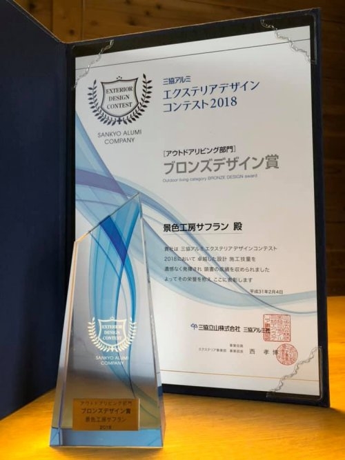 景色工房サフランが手掛けた神奈川県川崎市のK様邸のガーデンリフォームが、三協アルミエクステリアデザインコンテスト2018 アウトドアリビング部門(庭まわり)ブロンズデザイン賞を受賞しました。