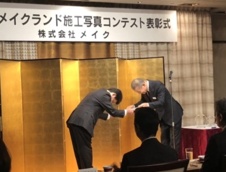 第14回 メイクランド施工写真コンテスト 庭まわり部門にて、サフランが応募しました施工写真が敢闘賞を受賞しました。先日、表彰式にお招きを、株式会社メイク 広瀬社長より授与いただきました。
