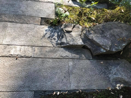 石舞台の石敷きです。これ好きです。自然なごつごつな感じから敷石に加工して変化していくところが面白いですね。