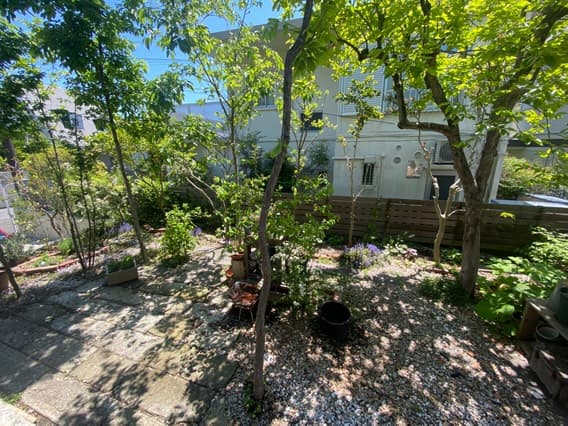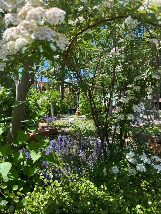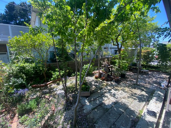 この木陰が心地良さそうな庭のお写真は、サフランOB客様からいただいたものです。「今年からキャノピー感が出てきましたよー」と。土壌が樹木には厳しい状況だったこともあり、近くに行くことがあるとお伺いして様子を見に寄る、気に掛けている庭の一軒だったので、ホッとしています。