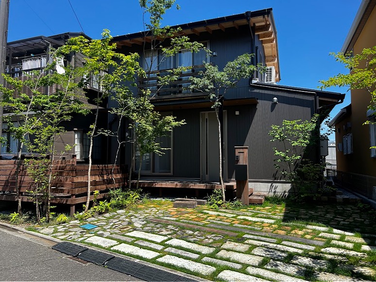 緑と共に暮らすことをお勧めしているサフランとしては、せっかく戸建てに住まわれるのに、緑のない暮らしは残念過ぎる・・・と、「お庭をあきらめないで!!」を合言葉に、色々なデザインの駐車場兼庭をご提案させていただいてます。