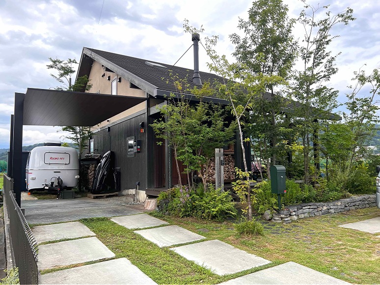 「駐車場兼庭」には、山採り雑木を使ったモリニワがおすすめです。落葉樹が中心なので、夏は木陰・木漏れ日で涼しく、冬は落葉して、日差しを室内の取り込みあたたかく暮らすことが出来ます。