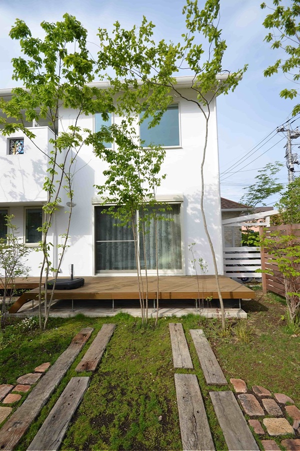 また、狭小地でも、高木だと最初から高さが5・6メートルある木で、下枝の無い樹形のものを選ぶので、車や人の動線を邪魔しない、空間の住み分けをすることで、普通は「植えられません」な場所でも植えることが可能です。緑のある暮らしをあきらめないですみます。(本当に植えられない敷地条件の場合もあるので、一度ご相談ください。)