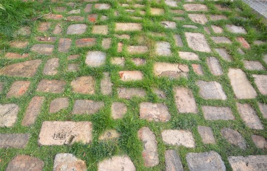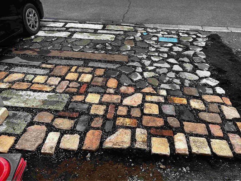 「そこに在ったもの??」って何?と思われたかと。実は、下の写真の色々な素材のものが敷かれている駐車場、この土地を購入して置きざりにされていた縁石が一緒に敷かれています。どれかわかりますか?