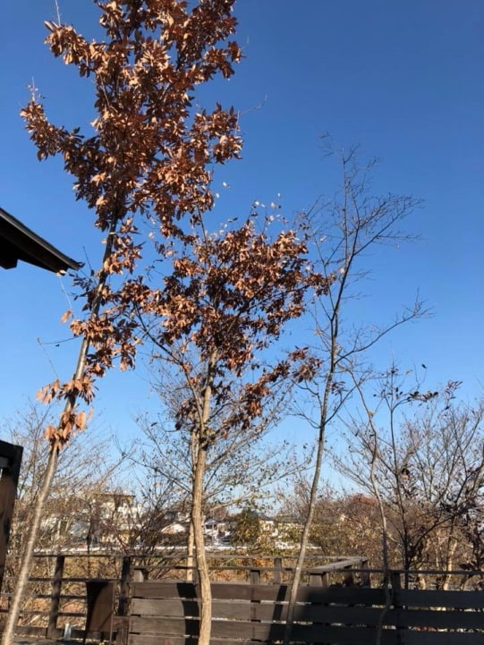 最後に、関東では雪が降ることは少ないですが、落葉樹だと、降った雪が葉っぱに積もり、重みで枝が折れる心配は少ないです。