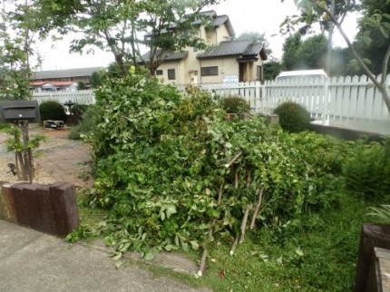 その姿に悲しくなったSご家族様。サフランでこの木を自然風剪定により、自然な樹形に戻すことにしました。