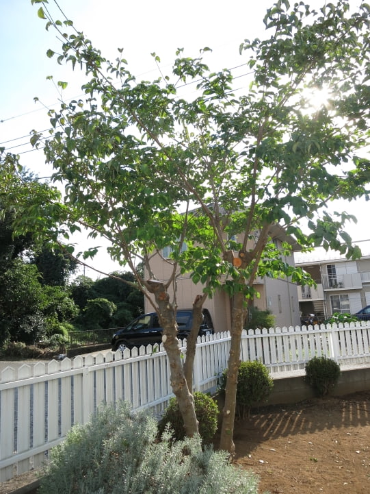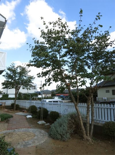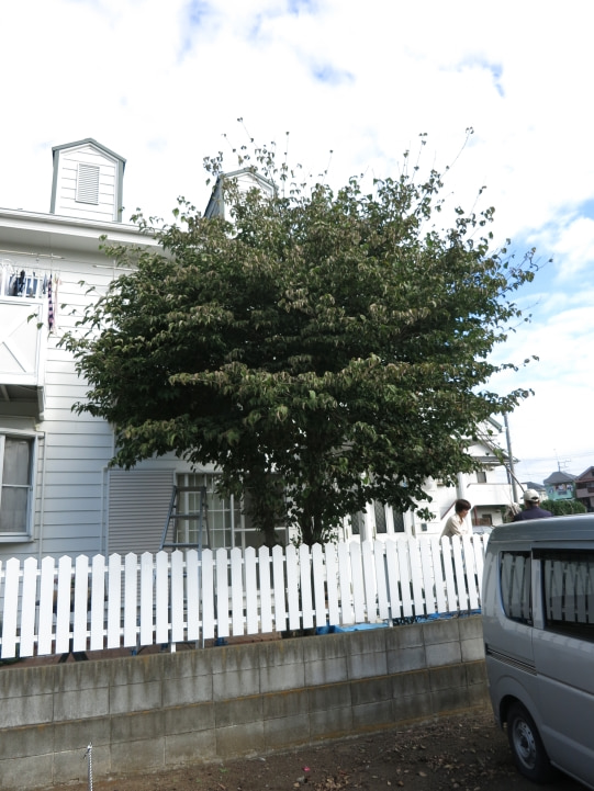 ヤマボウシは2本。ご新築の際に植えた当初は、涼しげな株立ちの木だったのではないでしょうか。20年程経つと立派な木に成長。