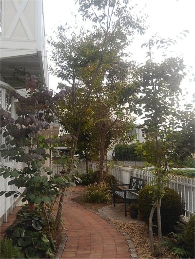 剪定前 ヤマボウシと新たに植えた雑木とが、違和感なくおさまっています。