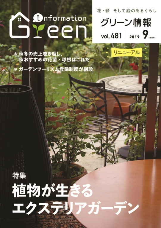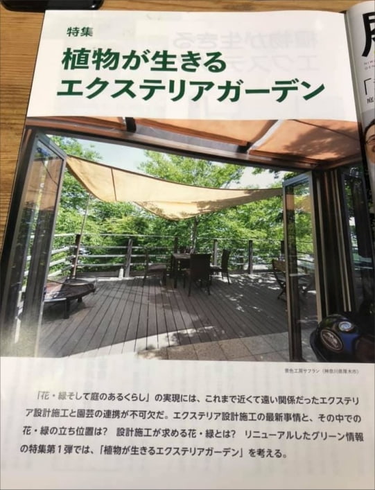 1980年創刊の歴史ある雑誌、創刊40周年を迎えられリニューアル期に、エクステリア・住まい・ライフスタイル・ガーデンメンテナンス・ガーデンセラピーまでを記事を提供する雑誌と切り替え、その1冊目にお声かけいただきました。