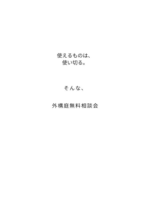 ホーム イベント報告 満席になりました! 4・5月開催 外構 庭無料相談会 ◆終了しました 満席になりました! 4・5月開催 外構 庭無料相談会 お申し込み 4・5月の外構・庭無料相談会 RESERVE & INQUIRY 平日ご希望の方はお問い合わせください。 ※ご希望の内容や日程を下記フォームよりお知らせください。折り返し担当よりご連絡いたします。