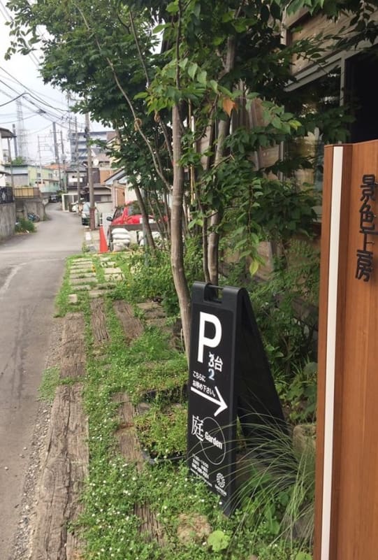 初めてご来店されたお客様に躊躇されてしまいますが、コンクリート駐車場ではなく、大谷石、御影石、根府川石、古窯レンガ、栗の古材、地面を掘って出てきた川石を石畳のように敷き、草目地の緑でそれぞれの石をつなげています。