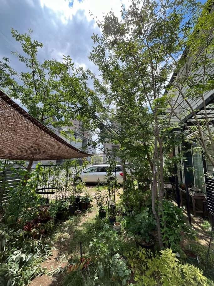 ホーム フォトギャラリー 新築・リフォーム すべて 神奈川県大和市 新築外構 木陰と木漏れ日のもとでガーデニング K様邸 神奈川県大和市 新築外構 木陰と木漏れ日のもとでガーデニング K様邸 新築 新築・リフォーム|すべて 2020年11月に新築外構・庭工事が完工したK様邸。駐車スペース全面が、アンティークレンガと枕木敷きの駐車場兼庭。山採り雑木で木陰と木漏れ日の出来る庭に。2025年7月末 剪定後の写真です。画像のみを表示全 8 枚中 1 枚目を表示Next ≫ 前面道路側に、ハードウッド材でウッドフェンスを。画像のみを表示全 8 枚中 2 枚目を表示≪ Prev|Next ≫ 2年前の2023年6月の剪定後の写真です。画像のみを表示全 8 枚中 3 枚目を表示≪ Prev|Next ≫ 6月の初夏のあじさいがきれいな時期は、庭も活き活きしています。画像のみを表示全 8 枚中 4 枚目を表示≪ Prev|Next ≫ 昨今の暑い夏に、鉢植えを夏越しするのは大変です。木陰の下に移動させて避難させるにはちょうどいい感じです。画像のみを表示全 8 枚中 5 枚目を表示≪ Prev|Next ≫ 一部シェードを掛けて、植物を保護されているのでしょうか・・・。手前に剪定枝が見えますが、ご要望で回収せずに利用されるようです。画像のみを表示全 8 枚中 6 枚目を表示≪ Prev|Next ≫ 置かれているガーデン雑貨も素敵なナチュラルガーデン。森の中にある邸宅のように見えますが、住宅街の一角です。画像のみを表示全 8 枚中 7 枚目を表示≪ Prev|Next ≫ 2020年11月 植栽工事中。更地からスタートした庭づくり。緑の充実度合いが比べると、よくわかります。画像のみを表示全 8 枚中 8 枚目を表示≪ Prev 一覧へ戻る 新築・リフォーム 地域別 スタイル別 シーン別 ご来店お客様用資料 すべて 新築 リフォーム 厚木市 相模原市 伊勢原市 海老名市 座間市 綾瀬市 綾瀬市 大和市 愛川町・清川村 藤沢市 藤沢市 茅ヶ崎市 鎌倉市 横浜市 逗子市 葉山町 川崎市 二宮町 大磯町 小田原市 平塚市 秦野市 南足柄市 寒川町 開成町 東京都町田市 東京都八王子市 東京都多摩市 東京都日野市 東京都三鷹市 東京都府中市 東京都世田谷区・杉並区 東京都稲城市 和風 アウトドア 和モダン 駐車場兼庭 ウッドデッキ モリニワ 門周り・玄関周り 目隠し・間仕切り テラス アプローチ 店舗 植栽 施工
