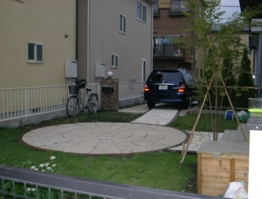ホーム フォトギャラリー 新築・リフォーム すべて 芝生の庭のサークルテラスは臨時駐車場に 神奈川県厚木市T様邸 芝生の庭のサークルテラスは臨時駐車場に 神奈川県厚木市T様邸 新築 新築・リフォーム|すべて 旗竿型敷地のお宅で、駐車場を2台分と臨時駐車場としてプラス1台を確保しながらお庭としての機能も欲しいとのご要望の神奈川県厚木市T様邸。サークルテラスをお庭の中心に据え、自動車が駐車できるような下地コンクリート仕様にして、普段はテラスとして、来客時は駐車場として使用できるようにしました。玄関前に、シンボルツリーに、涼しげな株立ちのヒメシャラを植えました。画像のみを表示全 6 枚中 1 枚目を表示Next ≫ グランドカバーは芝生です。枕木を並べて、自転車も置けるように。ナチュラルな庭のアクセントにもなりました。画像のみを表示全 6 枚中 2 枚目を表示≪ Prev|Next ≫ アプローチは、真ん中に自然石乱張りにレンガで縁取りし、まわりは洗い出しコンクリートにしました。門柱はナチュラルなレンガ積みに。お隣との目隠しにウッドフェンスも施工しました。画像のみを表示全 6 枚中 3 枚目を表示≪ Prev|Next ≫ 神奈川県厚木市 サークルテラスが臨時駐車場になる庭 T様邸 旗竿型敷地のお宅で、駐車場を2台分と臨時駐車場としてプラス1台を確保しながらお庭としての機能も欲しいとのご要望でした神奈川県厚木市T様邸。サークルテラスをお庭の中心に据え、自動車が駐車できるような下地コンクリート仕様にして、普段はテラスとして、来客時は駐車場として使用できるようにしました。画像のみを表示全 6 枚中 4 枚目を表示≪ Prev|Next ≫ 手前の枕木は、自転車を止める事もできるうえ、車をサークルテラスに止める際に、芝生を傷めず乗り入れることができます。画像のみを表示全 6 枚中 5 枚目を表示≪ Prev|Next ≫ 道路側から見た様子です。画像のみを表示全 6 枚中 6 枚目を表示≪ Prev 一覧へ戻る 新築・リフォーム 地域別 スタイル別 シーン別 ご来店お客様用資料 すべて 新築 リフォーム 厚木市 相模原市 伊勢原市 海老名市 座間市 綾瀬市 綾瀬市 大和市 愛川町・清川村 藤沢市 藤沢市 茅ヶ崎市 鎌倉市 横浜市 逗子市 葉山町 川崎市 二宮町 大磯町 小田原市 平塚市 秦野市 南足柄市 寒川町 開成町 東京都町田市 東京都八王子市 東京都多摩市 東京都日野市 東京都三鷹市 東京都府中市 東京都世田谷区・杉並区 東京都稲城市 和風 アウトドア 和モダン 駐車場兼庭 ウッドデッキ モリニワ 門周り・玄関周り 目隠し・間仕切り テラス アプローチ 店舗 植栽 施工