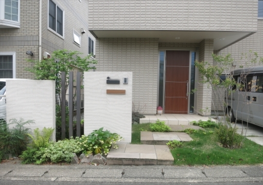 ホーム フォトギャラリー 新築・リフォーム すべて 神奈川県伊勢原市 雑木の緑に囲まれた門周りリフォーム・・・ライティングでお店のようになりました。K様邸 神奈川県伊勢原市 雑木の緑に囲まれた門周りリフォーム・・・ライティングでお店のようになりました。K様邸 リフォーム 新築・リフォーム|すべて 実は、3期目の工事ご依頼でした神奈川県伊勢原市K様邸。玄関前に門袖を新たに施工し、雑木を植えました。2階の窓からも緑が見えるようになってうれしいと喜ばれています。画像のみを表示全 8 枚中 1 枚目を表示Next ≫ 施工前の様子です。 お手入れが行き届き、十分素敵な門周りでしたが・・・。画像のみを表示全 8 枚中 2 枚目を表示≪ Prev|Next ≫ 既存門袖にデザインを合わせて、左官仕上げ門袖+ウッド列柱を施工。以前植えられていたハイノキは、日が当たり過ぎて、健全に育つ環境ではなかったので裏庭へ移植(移植後、元気に育っています!ハイノキはかなりの日陰が好みのようです。)画像のみを表示全 8 枚中 3 枚目を表示≪ Prev|Next ≫ 新たに植えたコナラ、イロハモミジ、ジューンベリー、カマツカ。お施主様ご自身もお好きな緑を植えられて楽しまれています。画像のみを表示全 8 枚中 4 枚目を表示≪ Prev|Next ≫ 芝生は撤去し、コブルヘブルの石をまきました。雰囲気も変わり、またお手入れも楽になります。丸くかわいいソイペーパーの飛び石は、お施主様施工です。画像のみを表示全 8 枚中 5 枚目を表示≪ Prev|Next ≫ コンクリート駐車場の草目地部分もコブル、ヘブルに。画像のみを表示全 8 枚中 6 枚目を表示≪ Prev|Next ≫ 門袖を下から照らし上げて、左官仕上げした壁の陰影が際立つように間接照明。表札のライトと合わせたかった・・・とセンスの良いお施主様が選ばれたのはバータイプ。雑木の木々もライトアップされてます。画像のみを表示全 8 枚中 7 枚目を表示≪ Prev|Next ≫ ウォールバーライト 美彩シリーズ(LIXIL)を採用。ご帰宅が楽しみな門周りになりました。画像のみを表示全 8 枚中 8 枚目を表示≪ Prev 一覧へ戻る 新築・リフォーム 地域別 スタイル別 シーン別 ご来店お客様用資料 すべて 新築 リフォーム 厚木市 相模原市 伊勢原市 海老名市 座間市 綾瀬市 綾瀬市 大和市 愛川町・清川村 藤沢市 藤沢市 茅ヶ崎市 鎌倉市 横浜市 逗子市 葉山町 川崎市 二宮町 大磯町 小田原市 平塚市 秦野市 南足柄市 寒川町 開成町 東京都町田市 東京都八王子市 東京都多摩市 東京都日野市 東京都三鷹市 東京都府中市 東京都世田谷区・杉並区 東京都稲城市 和風 アウトドア 和モダン 駐車場兼庭 ウッドデッキ モリニワ 門周り・玄関周り 目隠し・間仕切り テラス アプローチ 店舗 植栽 施工