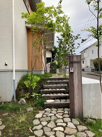 ホーム フォトギャラリー 新築・リフォーム すべて 神奈川県秦野市 新築外構 既存のものを活かしながら H様邸 神奈川県秦野市 新築外構 既存のものを活かしながら H様邸 新築 新築・リフォーム|すべて 元々古家にあったものを手を加えて活かした新築外構工事。そのおかげなのか、最初から馴染んだ自然な佇まいになっています。擁壁は、モルタルで塗り替えてます。が、施工上難しいところは、あえて手を加えず、そのままの表情で。画像のみを表示全 7 枚中 1 枚目を表示Next ≫ 駐車場は、1台はコンクリート打ちで、もう1台は自然石敷き+草目地に。画像のみを表示全 7 枚中 2 枚目を表示≪ Prev|Next ≫ アプローチ階段は枕木を使い、踏み面に自然石を敷き、自然石敷きと草目地のアプローチと駐車場と統一感があり、ナチュラルな雰囲気に。門柱はハードウッド材でオリジナル施工しています。画像のみを表示全 7 枚中 3 枚目を表示≪ Prev|Next ≫ 擁壁の土留めを、掘って出てきた石を利用しロックガーデン風に。下草類は雨が降ってきた時、一度葉っぱで雨を受けて、直接地面に落ちないことで、崩れないようにしています。画像のみを表示全 7 枚中 4 枚目を表示≪ Prev|Next ≫ 玄関側です。雑木の木々を愛でながら歩く、自然石敷きにしたアプローチ。画像のみを表示全 7 枚中 5 枚目を表示≪ Prev|Next ≫ 庭側です。古家のあった樹木も撤去することなく剪定し、新に雑木の木々を足しています。画像のみを表示全 7 枚中 6 枚目を表示≪ Prev|Next ≫ L字型にステップを付けて、ベンチのように座ることもでき、一段下がって低床デッキ。デッキ上に木陰が出来るように木々を植えてます。画像のみを表示全 7 枚中 7 枚目を表示≪ Prev 一覧へ戻る 新築・リフォーム 地域別 スタイル別 シーン別 ご来店お客様用資料 すべて 新築 リフォーム 厚木市 相模原市 伊勢原市 海老名市 座間市 綾瀬市 綾瀬市 大和市 愛川町・清川村 藤沢市 藤沢市 茅ヶ崎市 鎌倉市 横浜市 逗子市 葉山町 川崎市 二宮町 大磯町 小田原市 平塚市 秦野市 南足柄市 寒川町 開成町 東京都町田市 東京都八王子市 東京都多摩市 東京都日野市 東京都三鷹市 東京都府中市 東京都世田谷区・杉並区 東京都稲城市 和風 アウトドア 和モダン 駐車場兼庭 ウッドデッキ モリニワ 門周り・玄関周り 目隠し・間仕切り テラス アプローチ 店舗 植栽 施工