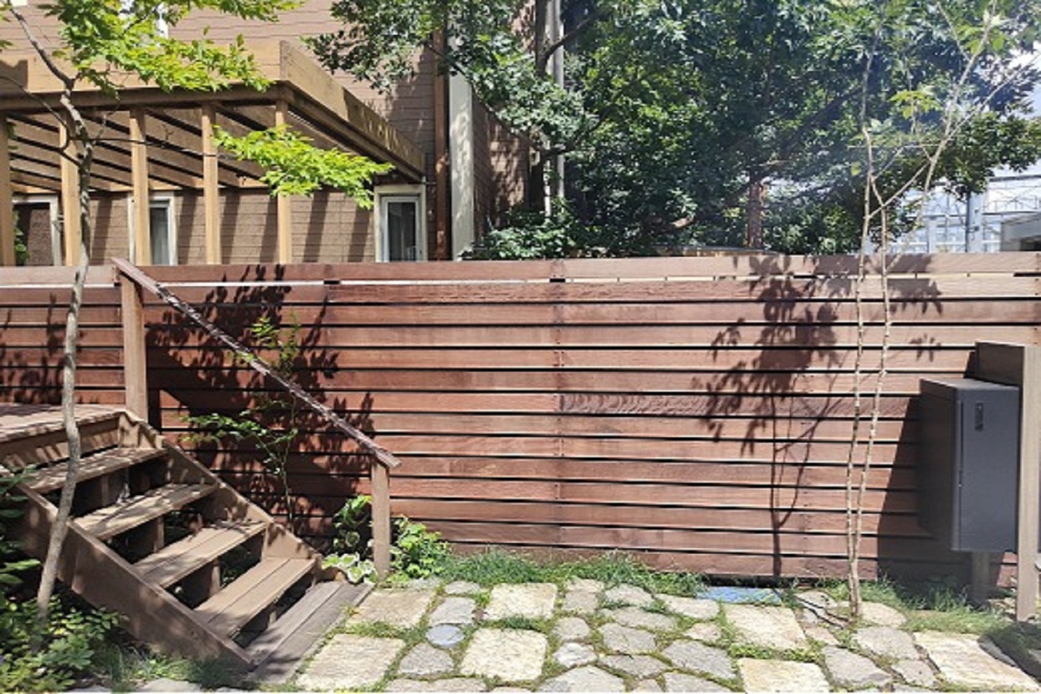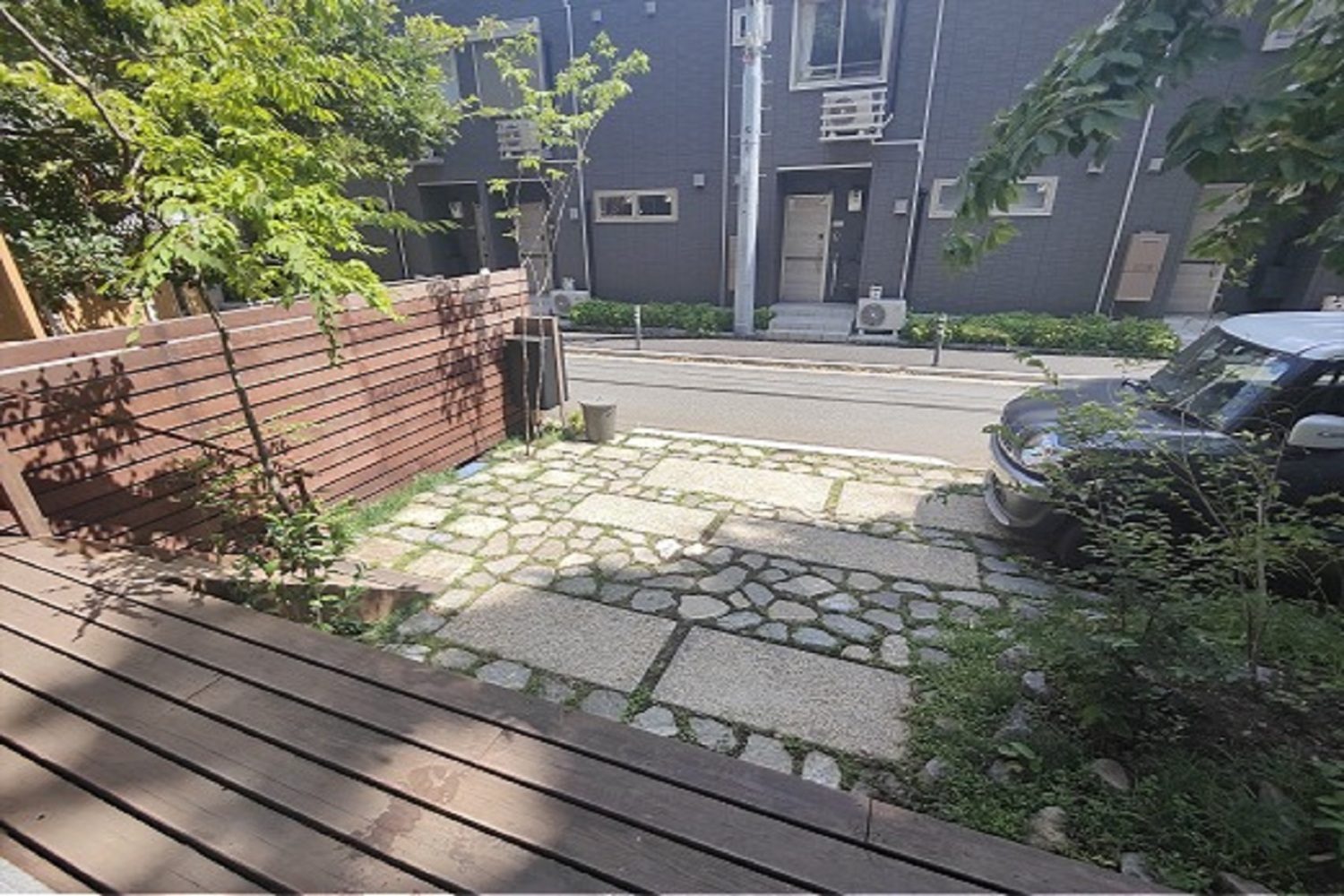 ホーム フォトギャラリー 新築・リフォーム すべて 三鷹市 新築外構 借景を庭に取り込み雑木林に囲まれた暮らしを…その後の様子。T様邸 三鷹市 新築外構 借景を庭に取り込み雑木林に囲まれた暮らしを…その後の様子。T様邸 新築 新築・リフォーム|すべて 新築外構工事完工から2年半後、植木の初剪定に伺いました。剪定作業が夕方まで掛かってしまったため、暗くなってから撮った写真になりますが、ご紹介させていただきます。画像のみを表示全 15 枚中 1 枚目を表示Next ≫ 住宅街の中にあるT様邸ですが、ご近所さんの大きな木々を借景に、雑木林の中のような暮らしを実現しています。ご自身の敷地の中にも木々を植えることで、借景との一体感が出ます。画像のみを表示全 15 枚中 2 枚目を表示≪ Prev|Next ≫ BESSの「程々の家」のT様邸。デッキとポーチが一体になっている玄関周り。弊社で施工した、境界のハードウッド材のウッドフェンスもアクが落ちてシルバーグレー色になり、建物外観や玄関周りに馴染んできています。画像のみを表示全 15 枚中 3 枚目を表示≪ Prev|Next ≫ 年月の経過で緑が充実し、アウトドアな暮らしを楽しまれている雰囲気とで、自然な生活の景色が素敵です。画像のみを表示全 15 枚中 4 枚目を表示≪ Prev|Next ≫ 建物側からはこんな眺めになります。画像のみを表示全 15 枚中 5 枚目を表示≪ Prev|Next ≫ 2階の窓からも緑が見えるようにも、木を植えてます。借景は時にご事情でなくなってしまうこともあるので、その時が来て、寂しくならない対策もしておくと良いかと思います。画像のみを表示全 15 枚中 6 枚目を表示≪ Prev|Next ≫ 完工当時の様子はこちらへ→画像のみを表示全 15 枚中 7 枚目を表示≪ Prev|Next ≫ 三鷹市 新築外構 借景を庭に取り込み雑木林に囲まれた暮らしを T様邸 周りのご近所さんが大きな木のあるお宅で、モリニワ的には恵まれた立地条件のT様邸、新築外構工事を承りました。雑木を植え、周りの景色をちょっとお借りしてつなげ、雑木林の中で暮らすように環境をつくりました。敷地の有効活用が出来る駐車場兼庭。根府川石と大谷石敷き、洗い出しコンクリートの石畳風に。草目地を維持するこつは、車がずっと止まっていて日が当たらないと枯れてしまうので、お車を度々移動させることです。画像のみを表示全 15 枚中 8 枚目を表示≪ Prev|Next ≫ 横桟の目隠しフェンス。ハードウッド材で施工。アクがどんどん落ちて、シルバーグレー色になります。色はお好みもありますが、色落ちした後塗ることもできます。塗らなくても、耐久性に問題はないです。画像のみを表示全 15 枚中 9 枚目を表示≪ Prev|Next ≫ 機能門柱は、スマート宅配ポスト(LIXIL)。樹木選びは、敷地形状や、人や車の動線の邪魔にならないような樹形、樹種による成長の仕方、環境に合っているのか??を考えます。画像のみを表示全 15 枚中 10 枚目を表示≪ Prev|Next ≫ 水栓柱ジラーレ(オンリーワンクラブ)をデッキ上で使えるように設置。画像のみを表示全 15 枚中 11 枚目を表示≪ Prev|Next ≫ 土留めを兼ねて、ハードウッド材で植栽スペースを。実は、古いコンクリート桝が残ってて、高さを下げて新しい桝に交換するにも結構費用が掛かってしまい、ブロック積んで土留めにするとスペースが取られてしまうのと、植え込むスペースが少なくなってしまうなどのデメリットがあるため、ナチュラルな雰囲気を醸し出すので良いのではないかと思います。雑木の木々はプロにお任せいただき、低木や下草類はセルフ施工されています。画像のみを表示全 15 枚中 12 枚目を表示≪ Prev|Next ≫ ウッドの土留めから自然に法面仕上げ。グランドカバーで土が流れないように、石をゴロゴロ据えてロックガーデンのようにしてます。庭に高低差があると、山の景色を切り取ったような雰囲気になります。画像のみを表示全 15 枚中 13 枚目を表示≪ Prev|Next ≫ 建物側からの眺めです。緑に囲まれて、庭いじりや薪割りをしたり、手仕事も楽しい庭です。画像のみを表示全 15 枚中 14 枚目を表示≪ Prev|Next ≫ 庭の樹木が成長して、雑木林の中で暮らしているようになる予定です。アウトドアやDIYがご趣味の方には、T様邸は、お馴染みのBESSの程々に家です。建物の雰囲気に合った自然風な外構・庭工事。ベースはプロにお任せいただき、その後はご自身で庭づくりを楽しんでいただけます。画像のみを表示全 15 枚中 15 枚目を表示≪ Prev 一覧へ戻る 新築・リフォーム 地域別 スタイル別 シーン別 ご来店お客様用資料 すべて 新築 リフォーム 厚木市 相模原市 伊勢原市 海老名市 座間市 綾瀬市 綾瀬市 大和市 愛川町・清川村 藤沢市 藤沢市 茅ヶ崎市 鎌倉市 横浜市 逗子市 葉山町 川崎市 二宮町 大磯町 小田原市 平塚市 秦野市 南足柄市 寒川町 開成町 東京都町田市 東京都八王子市 東京都多摩市 東京都日野市 東京都三鷹市 東京都府中市 東京都世田谷区・杉並区 東京都稲城市 和風 アウトドア 和モダン 駐車場兼庭 ウッドデッキ モリ