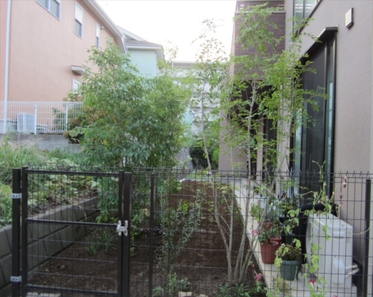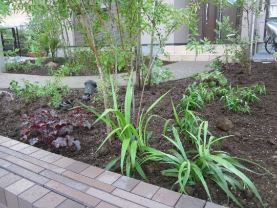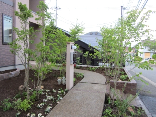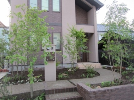 ホーム フォトギャラリー 新築・リフォーム すべて 神奈川県横浜市 新築外構 高級感あふれる建物デザインに合わせたアーキフィット T様邸 神奈川県横浜市 新築外構 高級感あふれる建物デザインに合わせたアーキフィット T様邸 新築 新築・リフォーム|すべて 雑木の庭の施工と一緒に工事依頼を頂いたカーポート。シックで高級感ある建物のイメージを壊さないように、シンプルなデザインのLIXILのアーキフィットをご提案しました。画像のみを表示全 13 枚中 1 枚目を表示Next ≫ フラットな屋根形状にオータムブラウン色で、違和感なくおさまっています。画像のみを表示全 13 枚中 2 枚目を表示≪ Prev|Next ≫ アプローチと玄関まわりを取り囲む雑木の庭に溶け込んでいます。画像のみを表示全 13 枚中 3 枚目を表示≪ Prev|Next ≫ この施工例のお庭周りの詳細はこちらから→画像のみを表示全 13 枚中 4 枚目を表示≪ Prev|Next ≫ 雑木と下草で高原風ガーデンに 神奈川県横浜市T様邸 昨年、住友林業さんでご自宅を新築されたT様。お庭はあとで考えながらゆっくり・・・と考えておられました。ただ、夏が近づくにつれ、雑草の物凄い繁殖に、早くお庭もきれいにしたい、と考えられて、景色工房サフランの展示場までご来店いただきました。 夏の工事となってしまったため、雑草の繁殖力の方がすごくて、しばらく草と共に暮らしていただくことになり、申し訳ございませんでした…。画像のみを表示全 13 枚中 5 枚目を表示≪ Prev|Next ≫ 敷地のコーナーの部分には、アオダモを植えました。枝葉の量が少なく、爽やかな印象の落葉樹で、紅葉もします。ただ今回植えさせていただいた木が、夏の暑さと根と葉のバランスで、この後ほとんど葉を落とすことになってしまいました…。今年は紅葉は見れませんが、来年はきっと美しい紅葉になるかと思います。T様、申し訳ありません…。少し長い目で見ていただければ…。画像のみを表示全 13 枚中 6 枚目を表示≪ Prev|Next ≫ 玄関前のイロハモミジです。こちらは至って良い状態。おそらく紅葉も美しいはずです。樹形もこのサイズとしては非常にまとまっています。自然風剪定を行っていけば、良い樹形を保てると思います。画像のみを表示全 13 枚中 7 枚目を表示≪ Prev|Next ≫ 全景です。ブラウン系の高級感あふれるご自宅に、緑が映えます。カーポートも施工させて頂きました。画像のみを表示全 13 枚中 8 枚目を表示≪ Prev|Next ≫ 車庫側から玄関を望んだ写真です。道路側にツリバナ、家側にソヨゴが植わっています。ツリバナは小さくかわいらしい花が、上からつるしたように咲くのでこの名前があります。大きな実をつけます。ソヨゴは常緑樹のシンボルツリーとしてはシマトネリコと並んでとてもポピュラーな樹木です。樹形が美しい雄木を植えています。画像のみを表示全 13 枚中 9 枚目を表示≪ Prev|Next ≫ キチジョウソウやヒューケラ、フッキソウなど、下草をふんだんに植えています。まだスペースがありますが、繁殖して増えるのと、T様がヒメイワダレソウを植えられる予定です。来年は緑いっぱいのお庭になっているかと…。画像のみを表示全 13 枚中 10 枚目を表示≪ Prev|Next ≫ ツリバナ越しに臨む門柱。高原の雰囲気になったのではないかと思います。画像のみを表示全 13 枚中 11 枚目を表示≪ Prev|Next ≫ 南側の主庭にも、シラカシ、シマトネリコなど目隠しを兼ねて植えさせていただきました。あとで芝生をお届けして、T様がお休みの日にご家族で芝張りをしていただきました。画像のみを表示全 13 枚中 12 枚目を表示≪ Prev|Next ≫ フラットなフォルムのカーポート、LIXIL アーキフィット。実用性はもちろん、ご自宅の雰囲気に合ったデザインではないでしょうか。画像のみを表示全 13 枚中 13 枚目を表示≪ Prev 一覧へ戻る 新築・リフォーム 地域別 スタイル別 シーン別 ご来店お客様用資料 すべて 新築 リフォーム 厚木市 相模原市 伊勢原市 海老名市 座間市 綾瀬市 綾瀬市 大和市 愛川町・清川村 藤沢市 藤沢市 茅ヶ崎市 鎌倉市 横浜市 逗子市 葉山町 川崎市 二宮町 大磯町 小田原市 平塚市 秦野市 南足柄市 寒川町 開成町 東京都町田市 東京都八王子市 東京都多摩市 東京都日野市 東京都三鷹市 東京都府中市 東京都世田谷区・杉並区 東京都稲城市 和風 アウトドア 和モダン 駐車場兼庭 ウッドデッキ モリニワ 門周り・玄関周り 目隠し・間仕切り テラス アプローチ 店舗 植栽 施工