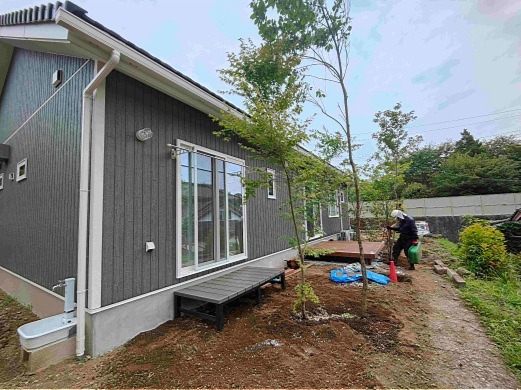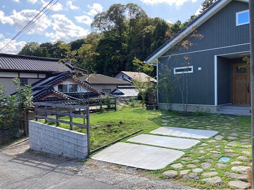 ホーム フォトギャラリー 新築・リフォーム すべて 神奈川県南足柄市 新築外構 ナチュラルガーデンづくり、プロがつくるところはおまかせいただくのもひとつの手です。H様邸 神奈川県南足柄市 新築外構 ナチュラルガーデンづくり、プロがつくるところはおまかせいただくのもひとつの手です。H様邸 新築 新築・リフォーム|すべて 新築外構・ガーデン工事が完工してより、1年程経った頃にお伺いしました。緑が生えそろって、心地良い空間になっていました。広い敷地のH様邸、外構部分やウッドデッキなどの構造物、高木植栽工事などをプロである弊社にご依頼いただき、ご自身でチャレンジ出来るところはDIYで庭づくりをされています。画像のみを表示全 8 枚中 1 枚目を表示Next ≫ 玄関前に箱抜きコンクリートで、フリーハンドで描いたような形に1台分の駐車スペース。自然石を敷いたアプローチは、臨時に駐車スペースとしてお車を止めることも可能です。この自然石は、建築工事の時に出てきた石を処分せず、敷いています。画像のみを表示全 8 枚中 2 枚目を表示≪ Prev|Next ≫ 新しく土留めブロック施工された箇所にも、元々は石積みで土留めされていまして、結構なサイズで量もあり、処分するには費用も掛かることもあり、処分せずに再利用できないものかと残しておいたようです。それを、アプローチの石敷きに使いました。画像のみを表示全 8 枚中 3 枚目を表示≪ Prev|Next ≫ 法面はブロックを積んで土留めをしたりせず、そのままの法面処理に、グランドカバーで土留めしています。ハードウッド材でウッドフェンス、ナチュラルな雰囲気で囲われ感が出せます。画像のみを表示全 8 枚中 4 枚目を表示≪ Prev|Next ≫ ポストは、人気のフィール2(オンリーワンクラブ)ライトブルー色。色んな色が増えていますね。下草もセルフで植えられています。画像のみを表示全 8 枚中 5 枚目を表示≪ Prev|Next ≫ ハードウッド材のウッドデッキ。デッキ前にコナラやソロの高木雑木を植えて、木陰が出来るようにしています。目隠しの縦格子フェンスは、ご自身で簡易的に置けるものを置かれてます。テーブルやいすも置かれて、お庭で過ごされている楽しい様子が想像できちゃうデッキスペースです。画像のみを表示全 8 枚中 6 枚目を表示≪ Prev|Next ≫ 植栽工事中の写真です。この後お引き渡ししたので、完工時はこのような土の状態でした。1年経った様子で、素敵に変えた頑張り度合いがわかりますね。画像のみを表示全 8 枚中 7 枚目を表示≪ Prev|Next ≫ 借景になる林もあり、環境に恵まれたH様邸。ナチュラルガーデンがとても馴染んでいます。がっつり一から庭づくりにチャレンジしたい強者さんも良し、庭づくり初心者さんや、長く良い状態を保ちたい方は、プロに任せる部分はプロに、ご自身で出来ることはご自身で、と分けて庭づくりに取り組むこともおすすめです。気負わず、楽しんで庭づくりを。画像のみを表示全 8 枚中 8 枚目を表示≪ Prev 一覧へ戻る 新築・リフォーム 地域別 スタイル別 シーン別 ご来店お客様用資料 すべて 新築 リフォーム 厚木市 相模原市 伊勢原市 海老名市 座間市 綾瀬市 綾瀬市 大和市 愛川町・清川村 藤沢市 藤沢市 茅ヶ崎市 鎌倉市 横浜市 逗子市 葉山町 川崎市 二宮町 大磯町 小田原市 平塚市 秦野市 南足柄市 寒川町 開成町 東京都町田市 東京都八王子市 東京都多摩市 東京都日野市 東京都三鷹市 東京都府中市 東京都世田谷区・杉並区 東京都稲城市 和風 アウトドア 和モダン 駐車場兼庭 ウッドデッキ モリニワ 門周り・玄関周り 目隠し・間仕切り テラス アプローチ 店舗 植栽 施工