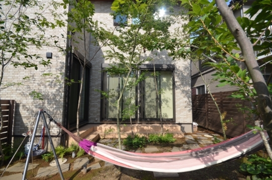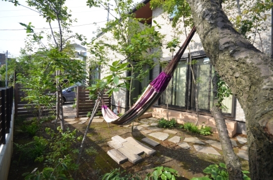 ホーム フォトギャラリー 新築・リフォーム すべて 神奈川県中郡大磯町 庭リフォーム 雑木の木々に囲まれてハンモックでゆらゆら癒される。Y様邸 神奈川県中郡大磯町 庭リフォーム 雑木の木々に囲まれてハンモックでゆらゆら癒される。Y様邸 リフォーム 新築・リフォーム|すべて 休日は、林の中でハンモックでのんびりお昼寝・・・が、ご自宅のお庭で実現できます。Y樣のご希望の一つに「ハンモックをしたい!」にお答えすべく、ハンモックが出来るスペースを考えながら雑木の庭を施工させて頂きました。画像のみを表示全 21 枚中 1 枚目を表示Next ≫ Y様邸のハンモックは施主樣支給品です。大きな梅の木があり、設置してみました。今、ネット上でも色んな種類のハンモックが売っています。探すのも楽しいですね。(もちろん、サフランでもお取り寄せ出来るものあります!)画像のみを表示全 21 枚中 2 枚目を表示≪ Prev|Next ≫ 雑木林のような中でハンモックでのんびり癒される庭 施工前~完工3ヶ月後 ご新築で玄関周りの外構工事は完了されて、リビング前のお庭が手付かずなままの神奈川県中郡Y様邸。目指すは、避暑地の雑木林の中でハンモックに揺られてのんびりするお庭。 家全体の和モダンな雰囲気に合う雑木の庭。グランドカバーは地苔。雑木が充実してくると木陰も大きくなり、苔も生えやすく。歩く箇所には、フォレストオールドクレイジーで自然石乱形敷きに。画像のみを表示全 21 枚中 3 枚目を表示≪ Prev|Next ≫ 施工前 梅の木を残して、土のままだったお庭。画像のみを表示全 21 枚中 4 枚目を表示≪ Prev|Next ≫ 施工後 新緑が気持ちの良い4月。新たに植えた木と馴染むよう剪定された梅の木。ソロ、エゴノキ、イロハモミジ、ヤマコウバシを組み合わせて雑木の庭に。画像のみを表示全 21 枚中 5 枚目を表示≪ Prev|Next ≫ 施工前 玄関から丸見えのお庭では、ちょっと落ち着かない・・・画像のみを表示全 21 枚中 6 枚目を表示≪ Prev|Next ≫ 施工後 玄関側とお庭との間仕切りにイタウバ材のウッドフェンスを設置。画像のみを表示全 21 枚中 7 枚目を表示≪ Prev|Next ≫ 3ヶ月後の様子。 ウッドフェンスのハードウッド特有のアクが落ちて色が変わってきています。落ち切ったシルバーグレー色の方が、家全体の雰囲気に合ってると思います。下枝のない樹形の木は、人と木のスペースの住み分けが出来るため、ハンモックするにもお互い邪魔することなく、緑を上に眺めながらゆらゆらすることが出来ます。画像のみを表示全 21 枚中 8 枚目を表示≪ Prev|Next ≫ 施工前 既存のシマトネリコが1本。画像のみを表示全 21 枚中 9 枚目を表示≪ Prev|Next ≫ 施工後 木陰が出来るように高木のコナラ。マルチングに、流木チップを。画像のみを表示全 21 枚中 10 枚目を表示≪ Prev|Next ≫ 3ヶ月後。 自宅に居ながら避暑地に行ったような気分になれるお庭になってきました。ハードウッドで枠を造った家庭菜園スペース。場所を移動するにも、撤去するにもハードウッドだと簡単に出来ます。画像のみを表示全 21 枚中 11 枚目を表示≪ Prev|Next ≫ 施工前 道路側から見た様子です。立派な梅の木が印象的なお庭。画像のみを表示全 21 枚中 12 枚目を表示≪ Prev|Next ≫ 雑木の木々に囲まれ、かなり印象が変わりました。画像のみを表示全 21 枚中 13 枚目を表示≪ Prev|Next ≫ 3ヶ月後。 季節は8月の夏。落葉樹を中心に植えるパッシブデザインを取り入れた庭は、緑の恩恵を受け、見た目の爽やかさと、暑い夏を過ごしやすくする環境づくりが出来ます。画像のみを表示全 21 枚中 14 枚目を表示≪ Prev|Next ≫ 神奈川県中郡 新築外構 ご自宅でいつでも好きな時に雑木の木陰のもとでハンモック Y様邸 ご新築時に、玄関周りの外構工事は完了されて、お庭の方は手付かずで土のままだった神奈川県中郡Y様邸。弊社ホームページをご覧になり、雑木の庭の施工を気に入って頂き、ご相談におみえになりました。 避暑地のような雑木林の中でハンモック・・・出掛けることなくご自宅でいつでも好きな時に実現するお庭。樹木のおかげで、四季折々の移り変わりを楽しみながら、快適に過ごすことが出来ます。画像のみを表示全 21 枚中 15 枚目を表示≪ Prev|Next ≫ コナラ、ジューンベリー、イロハモミジ、エゴノキ。3年後が完成形の予定です。山採りの木は、下枝がなく空間を有効に使えます。画像のみを表示全 21 枚中 16 枚目を表示≪ Prev|Next ≫ 右手前の太い幹は既存の梅の木。写真では分かりづらいですが、新たに植えた木の雰囲気に合わせて自然風剪定しました。画像のみを表示全 21 枚中 17 枚目を表示≪ Prev|Next ≫ 下草類は、ベニシダ、ハラン、ツワブキ、フッキソウなどを植え、山の景色の一部を切り取ったような雰囲気に。画像のみを表示全 21 枚中 18 枚目を表示≪ Prev|Next ≫ 撒き苔をして地苔を生やしています。その場所の環境に合い広がった地苔は、グランドカバーとしてより自然で、丈夫です。画像のみを表示全 21 枚中 19 枚目を表示≪ Pre