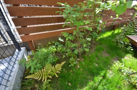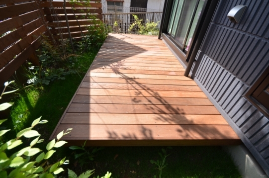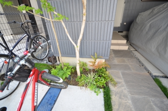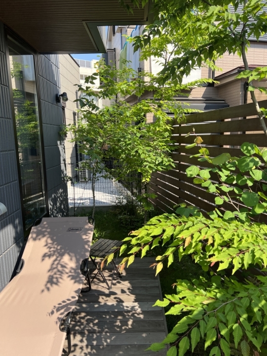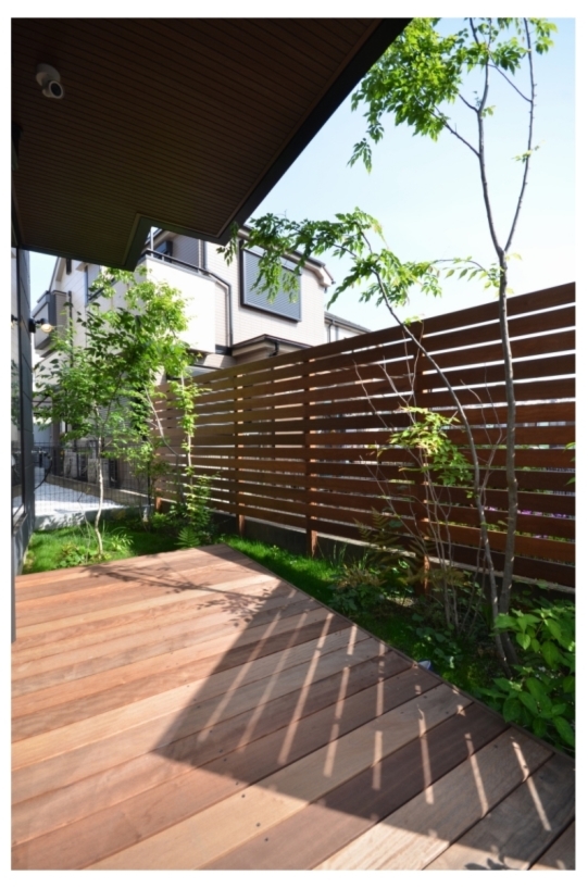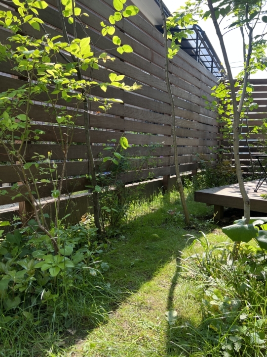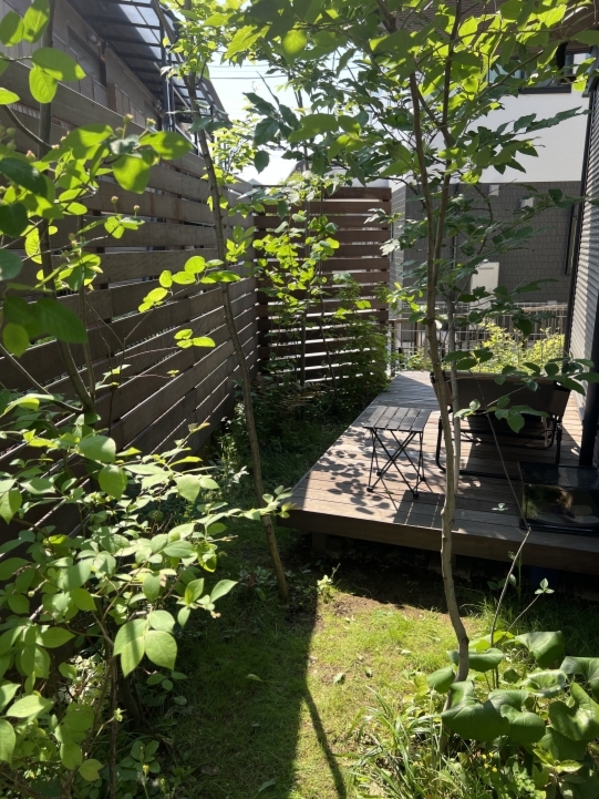 ホーム フォトギャラリー 新築・リフォーム すべて 神奈川県横浜市 新築外構 「 隙あらばモリニワ! 」の外構・庭工事 T様邸 神奈川県横浜市 新築外構 「 隙あらばモリニワ! 」の外構・庭工事 T様邸 新築 新築・リフォーム|すべて 普通は木を植えることを諦めてしまうスペースでも、ご希望があれば、「隙間があらばモリニワ!」雑木を植えてモリニワ化します。(木が育つ環境として大丈夫!と判断した上でです)完工から1年後の庭の様子です。デッキで気持ち良く過ごされているようでした。画像のみを表示全 10 枚中 1 枚目を表示Next ≫ 横浜市T様邸は、写真で見ていただくように、お隣さんと密接した敷地に新築されたお宅の外構工事と庭工事を承りました。画像のみを表示全 10 枚中 2 枚目を表示≪ Prev|Next ≫ 自転車置き場、ビルトインの駐車スペースは土間コンクリート。アプローチ床はオールドペイビングの自然石方形石敷き。目地は西洋芝。自転車置き場前に、ソロ、イロハモミジを植えました。画像のみを表示全 10 枚中 3 枚目を表示≪ Prev|Next ≫ 建物から50cm幅の植栽スペースに植えています。植えることは簡単ですが、その後、自然樹形を剪定でコントロールして管理していくことが重要になります。また、住宅密集地の中では、ご近所さんにも愛されるモリニワでいることが良い状態を保つ秘訣かと思います。画像のみを表示全 10 枚中 4 枚目を表示≪ Prev|Next ≫ お庭は、ジューンベリー、ヤマコウバシ・・・山の景色を切り取ったような、緑に囲まれたデッキテラス。水鉢やオブジェなどの選び方で、和でもアジアンリゾート、北欧風・・・その時のお好みの雰囲気に変えられます。画像のみを表示全 10 枚中 5 枚目を表示≪ Prev|Next ≫ イタウバ材のウッドフェンスは、GLからH2000。目隠ししてプライベート空間を確保。下枝のない樹形のソロなどの雑木は、デッキで人が過ごすスペースに干渉しません。画像のみを表示全 10 枚中 6 枚目を表示≪ Prev|Next ≫ ウッドデッキのサイズは、間口 3000mm+敷地の境界際まで、出幅 1500mm。デッキ材は、フェンスと同じイタウバ材です。画像のみを表示全 10 枚中 7 枚目を表示≪ Prev|Next ≫ グランドカバーは西洋芝。ブルーベリーやジューンベリーを植えて、お子さんと一緒に収穫する楽しみも。画像のみを表示全 10 枚中 8 枚目を表示≪ Prev|Next ≫ 1年後の様子です。植栽も馴染んで、ウッドフェンスやウッドデッキの色もアクが落ちてシルバーグレイ色に、建物外観デザインに合い、落ち着いてきたように思います。画像のみを表示全 10 枚中 9 枚目を表示≪ Prev|Next ≫ デッキに、アウトドアチェアが置かれていて、くつろぎスペースになってました。気持ち良さげでしたよ。画像のみを表示全 10 枚中 10 枚目を表示≪ Prev 一覧へ戻る 新築・リフォーム 地域別 スタイル別 シーン別 ご来店お客様用資料 すべて 新築 リフォーム 厚木市 相模原市 伊勢原市 海老名市 座間市 綾瀬市 綾瀬市 大和市 愛川町・清川村 藤沢市 藤沢市 茅ヶ崎市 鎌倉市 横浜市 逗子市 葉山町 川崎市 二宮町 大磯町 小田原市 平塚市 秦野市 南足柄市 寒川町 開成町 東京都町田市 東京都八王子市 東京都多摩市 東京都日野市 東京都三鷹市 東京都府中市 東京都世田谷区・杉並区 東京都稲城市 和風 アウトドア 和モダン 駐車場兼庭 ウッドデッキ モリニワ 門周り・玄関周り 目隠し・間仕切り テラス アプローチ 店舗 植栽 施工