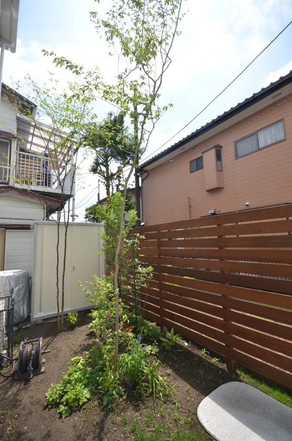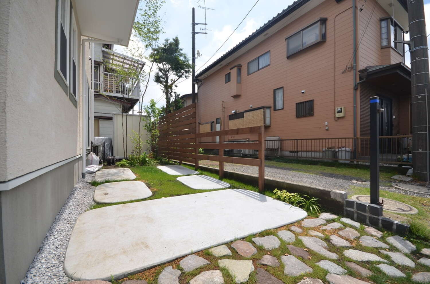 ホーム フォトギャラリー 新築・リフォーム すべて 神奈川県厚木市 新築外構 雑木と駐車場兼ガーデンでナチュラルに W様邸 神奈川県厚木市 新築外構 雑木と駐車場兼ガーデンでナチュラルに W様邸 新築 新築・リフォーム|すべて ナチュラルテイストな新築外構。画像のみを表示全 8 枚中 1 枚目を表示Next ≫ 手摺り設置するにあたり、玄関ポーチの広さを確保するため、ポーチ階段脇に設置出来る手擦りに。アイアンぽく見えますが、アルミ手摺りです。 画像のみを表示全 8 枚中 2 枚目を表示≪ Prev|Next ≫ 門柱は、枕木門柱。ポストは、人気のボビ。画像のみを表示全 8 枚中 3 枚目を表示≪ Prev|Next ≫ コンクリートをフリーハンドで描いたようなカタチに箱抜きにした「駐車場兼庭」手前はアプローチから続く自然石敷きに。草目地でよりナチュラルに。画像のみを表示全 8 枚中 4 枚目を表示≪ Prev|Next ≫ 車のタイヤが乗る部分のみコンクリートに。車がない時でも、殺風景にならずに。また、テラスとして使えます。画像のみを表示全 8 枚中 5 枚目を表示≪ Prev|Next ≫ 境界フェンスは、ハードウッド材で施工。目隠しが必要ない箇所は板の枚数、ピッチを変えて施工。オリジナル施工なので、希望のデザインが可能です。画像のみを表示全 8 枚中 6 枚目を表示≪ Prev|Next ≫ 窓から緑が見えるように、山採り雑木を植え、足元にはホタルブクロ、フッキソウなどの下草類を植えています。画像のみを表示全 8 枚中 7 枚目を表示≪ Prev|Next ≫ 外側から見た様子です。画像のみを表示全 8 枚中 8 枚目を表示≪ Prev 一覧へ戻る 新築・リフォーム 地域別 スタイル別 シーン別 ご来店お客様用資料 すべて 新築 リフォーム 厚木市 相模原市 伊勢原市 海老名市 座間市 綾瀬市 大和市 愛川町・清川村 藤沢市 茅ヶ崎市 鎌倉市 横浜市 逗子市 葉山町 川崎市 二宮町 大磯町 小田原市 平塚市 秦野市 南足柄市 寒川町 開成町 東京都町田市 東京都八王子市 東京都多摩市 東京都日野市 東京都三鷹市 東京都府中市 東京都世田谷区・杉並区 東京都稲城市 和風 アウトドア 和モダン 駐車場兼庭 ウッドデッキ モリニワ 門周り・玄関周り 目隠し・間仕切り テラス アプローチ 店舗 植栽 施工