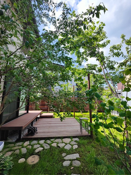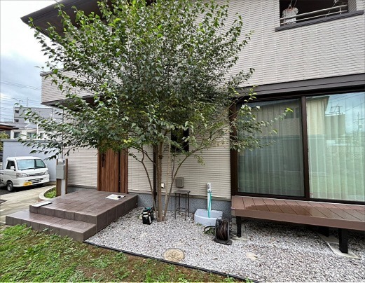 ホーム フォトギャラリー 新築・リフォーム すべて 神奈川県厚木市 ガーデンリフォームでモリニワの木陰・木漏れ日の中、お子さんも遊べる庭に。K様邸 神奈川県厚木市 ガーデンリフォームでモリニワの木陰・木漏れ日の中、お子さんも遊べる庭に。K様邸 リフォーム 新築・リフォーム|すべて 新築から3年経ち、同じ敷地内に母屋があって、既存の木と一緒にモリニワに、庭に出やすく使い勝手を考えたガーデンリフォームのご紹介です。画像のみを表示全 10 枚中 1 枚目を表示Next ≫ BEFORE掃き出し窓前に縁側のような人工木のデッキがあり、周りは砂利敷きでした。ここに、ハードウッド材で一段下がったステップデッキにし、段差が解消されて庭に出やすく、お子さんの転落防止にもなり、ベンチ代わりに座ることも出来ます。画像のみを表示全 10 枚中 2 枚目を表示≪ Prev|Next ≫ BEFORE玄関脇に植えられた株立ちで、大きく育っているエゴノキも自然風剪定して、動線の邪魔にならないように。画像のみを表示全 10 枚中 3 枚目を表示≪ Prev|Next ≫ AFTERエゴノキが見づらいですが、新たに植えた雑木で、木陰・木漏れ日の出来る庭 モリニワにしています。避暑地の雑木林の中で暮らしているような毎日になる予定です。画像のみを表示全 10 枚中 4 枚目を表示≪ Prev|Next ≫ BEFOREお隣から丸見えになっているので、目隠しをご希望。画像のみを表示全 10 枚中 5 枚目を表示≪ Prev|Next ≫ AFTERウッドデッキ材と同じ材で、高さH1800のウッドフェンスを施工。画像のみを表示全 10 枚中 6 枚目を表示≪ Prev|Next ≫ 既存のデッキから降りやすいよう、ステップデッキを設置。浮島のようなちょっと楽しい階段です。ウッドデッキの角の柱は、2本あり、シェードを設置するためのもので、モリニワが育つまで木陰が少ないため、夏の暑さ対策に設置しています。画像のみを表示全 10 枚中 7 枚目を表示≪ Prev|Next ≫ 広くなったウッドデッキは、お子さんが小さいうちは夏はプールをすることの可能です。ご家族でアウトドアするにも十分な広さになっています。画像のみを表示全 10 枚中 8 枚目を表示≪ Prev|Next ≫ グランドカバーが良く歩く箇所はうまく育たないため、自然石を敷いて、園路に。ちなみに、グランドカバーは、K様セルフ施工されています。画像のみを表示全 10 枚中 9 枚目を表示≪ Prev|Next ≫ 手前に見えるのが、既存のエゴノキです。枝数を減らすことで周りの樹木と馴染んでいます。下草類もK様で植えられています。ノーメンテとは、自然な庭の場合は無理なことですが、気楽に自然とお付き合いできるよう、アドバスさせていただいております。画像のみを表示全 10 枚中 10 枚目を表示≪ Prev 一覧へ戻る 新築・リフォーム 地域別 スタイル別 シーン別 ご来店お客様用資料 すべて 新築 リフォーム 厚木市 相模原市 伊勢原市 海老名市 座間市 綾瀬市 綾瀬市 大和市 愛川町・清川村 藤沢市 藤沢市 茅ヶ崎市 鎌倉市 横浜市 逗子市 葉山町 川崎市 二宮町 大磯町 小田原市 平塚市 秦野市 南足柄市 寒川町 開成町 東京都町田市 東京都八王子市 東京都多摩市 東京都日野市 東京都三鷹市 東京都府中市 東京都世田谷区・杉並区 東京都稲城市 和風 アウトドア 和モダン 駐車場兼庭 ウッドデッキ モリニワ 門周り・玄関周り 目隠し・間仕切り テラス アプローチ 店舗 植栽 施工
