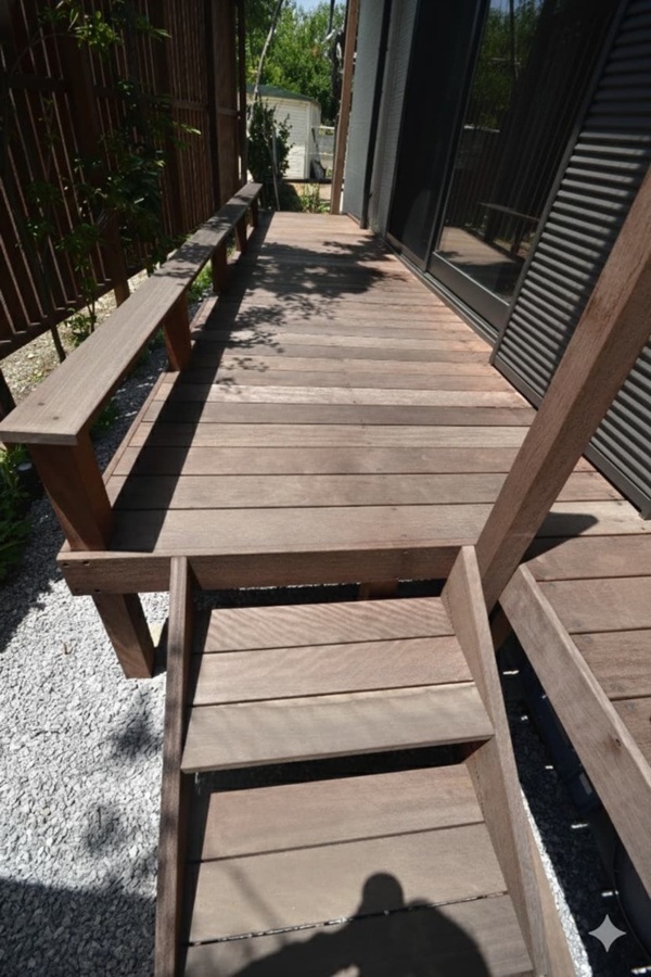 ホーム フォトギャラリー 新築・リフォーム すべて 神奈川県厚木市 外構・庭リフォーム 和の家の駐車場兼庭と縦格子フェンス O様邸 神奈川県厚木市 外構・庭リフォーム 和の家の駐車場兼庭と縦格子フェンス O様邸 リフォーム 新築・リフォーム|すべて 自然素材を使った和の趣の神奈川県厚木市O様邸。外構・ガーデンリフォーム工事を承りました。この写真は、2025年11月。完工から7年程経ち、剪定に伺った際に撮影しました。画像のみを表示全 9 枚中 1 枚目を表示Next ≫ リフォーム工事が完工したのは、2018年2月。BEFORE砕石敷きの駐車場を自然石敷き+草目地、山採り雑木を植えて「駐車場兼庭」にリフォームします。画像のみを表示全 9 枚中 2 枚目を表示≪ Prev|Next ≫ AFTER生垣は成長するので、成長した厚み分、庭がどんどん狭くなっていきます。今回は生垣を全撤去、ウッドフェンスにリフォームし、スペースが少し広くなりました。ウッドフェンス施工は初期費用は掛かりますが、生垣の剪定が不要になります。駐車場を庭のような雰囲気にする「駐車場兼庭」駐車スペースの床は、御影石と根府川石を石畳風に敷き、木陰・木漏れ日が出来るように山採り雑木を植えました。車や人の動線を邪魔にならないような樹形の木を選んでいます。画像のみを表示全 9 枚中 3 枚目を表示≪ Prev|Next ≫ 完工からしばらく経って、緑が心地良い時期を迎えた頃の写真です。ハードウッド材も色々な種類がありまして、イタウバ材を使っています。2階バルコニーの格子の意匠に合わせた縦格子のフェンス。高さはH2200。イタウバ材はアクが抜け、シルバーグレー色に変わり、塗装不要でメンテナンスフリーです。画像のみを表示全 9 枚中 4 枚目を表示≪ Prev|Next ≫ フェンスの内側の様子です。画像のみを表示全 9 枚中 5 枚目を表示≪ Prev|Next ≫ ウッドデッキもハードウッド材で施工。笠木のある高さの低いデッキフェンス。デッキ直に座った時に、テーブル代わりにもなったり、鉢植えを置いたり・・・画像のみを表示全 9 枚中 6 枚目を表示≪ Prev|Next ≫ 2025年の玄関前の様子です。避暑地のような雰囲気に見えませんか?窓からも木が見え、四季の移ろいを眺めながらの暮らしは、おすすめです。画像のみを表示全 9 枚中 7 枚目を表示≪ Prev|Next ≫ ウッドフェンスもアクが落ちて、シルバーグレー色になっています。完工して1年くらいでこの色になります。この色でのおつきあいの方が長いです。画像のみを表示全 9 枚中 8 枚目を表示≪ Prev|Next ≫ 夏は表面温度が熱くなって、使わなくなってしまうウッドデッキ。木陰のおかげで、見た目の心地良さだけではなく、実際に微風が吹き、涼しく過ごせます。画像のみを表示全 9 枚中 9 枚目を表示≪ Prev 一覧へ戻る 新築・リフォーム 地域別 スタイル別 シーン別 ご来店お客様用資料 すべて 新築 リフォーム 厚木市 相模原市 伊勢原市 海老名市 座間市 綾瀬市 綾瀬市 大和市 愛川町・清川村 藤沢市 藤沢市 茅ヶ崎市 鎌倉市 横浜市 逗子市 葉山町 川崎市 二宮町 大磯町 小田原市 平塚市 秦野市 南足柄市 寒川町 開成町 東京都町田市 東京都八王子市 東京都多摩市 東京都日野市 東京都三鷹市 東京都府中市 東京都世田谷区・杉並区 東京都稲城市 和風 アウトドア 和モダン 駐車場兼庭 ウッドデッキ モリニワ 門周り・玄関周り 目隠し・間仕切り テラス アプローチ 店舗 植栽 施工