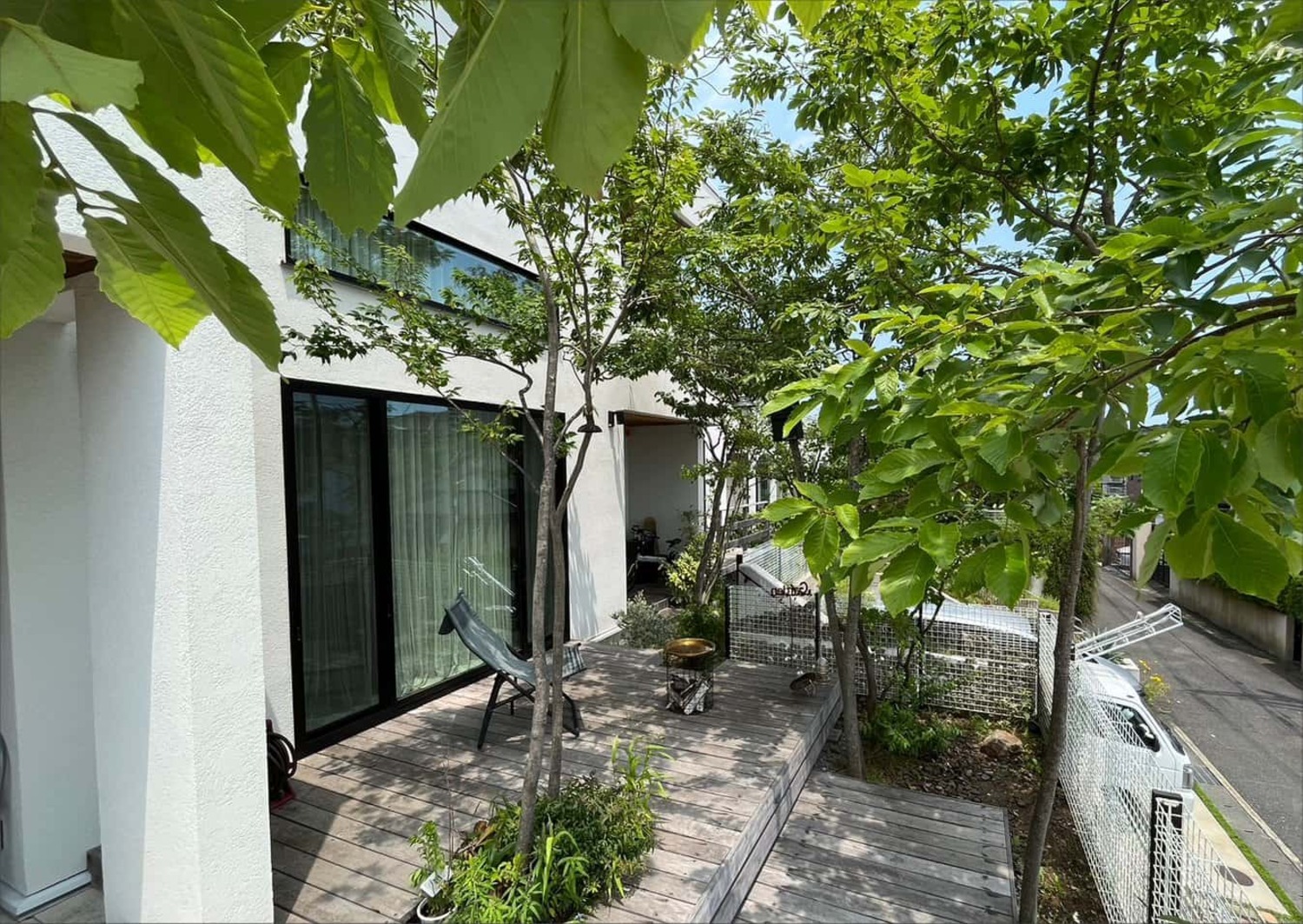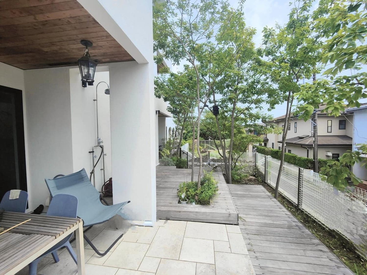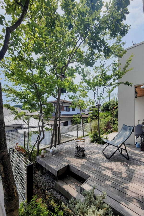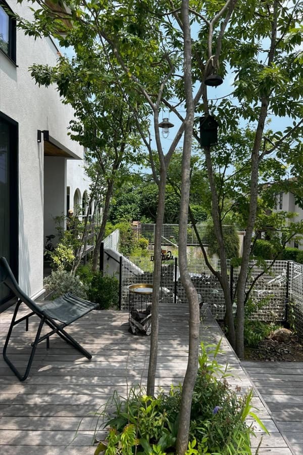 ホーム フォトギャラリー 新築・リフォーム すべて 神奈川県鎌倉市 新築外構 湘南でも雑木の庭でナチュラルリゾートを実現 H様邸 神奈川県鎌倉市 新築外構 湘南でも雑木の庭でナチュラルリゾートを実現 H様邸 新築 新築・リフォーム|すべて ご家族やお友達を呼んで過ごす時間が楽しみなガーデンが完成しました。弊社ホームページをご覧に、施工事例を気に入っていただき、新築外構工事、ガーデン工事のご依頼承りました。 インナーテラスとベンチ替わりにもなる天然木のステップデッキの組み合わせ。木陰・木漏れ日の下で、お子様も元気に走り回れる広いテラス空間です。画像のみを表示全 21 枚中 1 枚目を表示Next ≫ インナーテラスからは、遠くの山と近くの雑木の緑が見え、四季を感じて過ごせ、中と外を繋ぐ居心地の良い癒され空間になっています。画像のみを表示全 21 枚中 2 枚目を表示≪ Prev|Next ≫ イタウバ材のウッドデッキ上に陰を落としているのは、コナラ、イロハモミジ、ソロ、ジューンベリーなどの雑木の木々。デッキを四角く抜いて植えているのは、アオダモ、ソロです。木々が順調に成長して、緑に囲まれる景色になるのが楽しみです。画像のみを表示全 21 枚中 3 枚目を表示≪ Prev|Next ≫ エコリスメッシュフェンスパネル(LIXIL) ブロックが入ってないところは、バラなど蔓物を這わします。歩くところには、流木チップとバークチップ(施主様施工)を敷いています。画像のみを表示全 21 枚中 4 枚目を表示≪ Prev|Next ≫ 全体の様子です。施主様のご希望がはっきりされていたので、それに基づいたプランニングでした。白を基調にしたシンプルデザインな建物の外観に、経年変化による風合いのある素材、またスタイリッシュな素材を組み合わせ、雑木の木々で緑に囲まれた避暑地のように、周りに公園があったり、緑が豊富な鎌倉の地に馴染んだ外周りになりました。画像のみを表示全 21 枚中 5 枚目を表示≪ Prev|Next ≫ 古窯レンガ敷きと枕木敷きの臨時駐車場。草目地は、西洋芝。生え揃い始めたころです。サイクルポートは、カーポートSC ミニ ナチュラルシルバーF+ブラック色 21-29 標準柱(LIXIL)画像のみを表示全 21 枚中 6 枚目を表示≪ Prev|Next ≫ 2台分の駐車スペースは、石畳風デザインの箱抜きコンクリート+草目地。画像のみを表示全 21 枚中 7 枚目を表示≪ Prev|Next ≫ パティオも、古窯レンガ敷きと草目地に。奥には築山風にイロハモミジ、ソロ、マルバノキを植えました。画像のみを表示全 21 枚中 8 枚目を表示≪ Prev|Next ≫ 室内からの広がり、おもわず庭に出たくなる・・・内と外を繋げるテラス。神奈川県鎌倉市H様の庭。インナーテラスとステップデッキの組み合わせです。画像のみを表示全 21 枚中 9 枚目を表示≪ Prev|Next ≫ ウッドデッキはイタウバ材で施工。写真は、ハードウッド特有のアクが落ち始めている状態です。デッキサイズは、掃き出し窓から手前一段目が、間口3500mm×出幅2700mm。画像のみを表示全 21 枚中 10 枚目を表示≪ Prev|Next ≫ お庭に出るためのステップ。マリンライトを設置。樹木が成長すると、森の中のテラスのように。画像のみを表示全 21 枚中 11 枚目を表示≪ Prev|Next ≫ インナーテラス側からの眺めです。白いタイルにウッド、植栽に緑・・・毎日がリゾートな雰囲気で過ごせます。画像のみを表示全 21 枚中 12 枚目を表示≪ Prev|Next ≫ 一部抜いて植栽スペースを造り、木の根元の方しか見えませんが、アオダモ、ソロを植えています。ワイルドオーツ、フッキソウ、クリスマスローズなど、一度植えれば植え替えが要らない宿根草を植えています。画像のみを表示全 21 枚中 13 枚目を表示≪ Prev|Next ≫ 高さを変えたステップデッキは、ベンチのように座ることもできます。休日には、ご家族で朝食を、またお友達を呼んでBBQを、そとごはんしたくなるお庭です。画像のみを表示全 21 枚中 14 枚目を表示≪ Prev|Next ≫ 夏のウッドデッキの表面温度は60℃くらいになります。夏も外で過ごしたい場合は、高木を植え、木陰を落としてあげると表面温度は下がります。画像のみを表示全 21 枚中 15 枚目を表示≪ Prev|Next ≫ この施工事例のトータルデザインはこちらへ→画像のみを表示全 21 枚中 16 枚目を表示≪ Prev|Next ≫ 玄関ポーチ前は、枕木階段と古窯レンガ敷きに。画像のみを表示全 21 枚中 17 枚目を表示≪ Prev|Next ≫ 2023年6月画像のみを表示全 21 枚中 18 枚目を表示≪ Prev|Next ≫ 2023年6月画像のみを表示全 21 枚中 19 枚目を表示≪ Prev|Next ≫ 2023年6月画像のみを表示全 21 枚中 20 枚目を表示≪ Prev|Next ≫ 2023年6月画像のみを表示全 21 枚中 21 枚目を表示≪ Prev 一覧へ戻る 新築・リフォーム 地域別 スタイル別 シーン別 ご来店お客様用資料 すべて 新築 リフォーム 厚木市 相模原市 伊勢原市 海老名市 座間市 綾瀬市 大和市 愛川町・清川村 藤沢市 茅ヶ崎市 鎌倉市 横浜市 逗子市 葉山町 川崎市 二宮町 大磯町 小田原市 平塚市 秦野市 南足柄市 寒川町 開成町 東京都町田市 東京都八王子