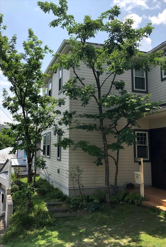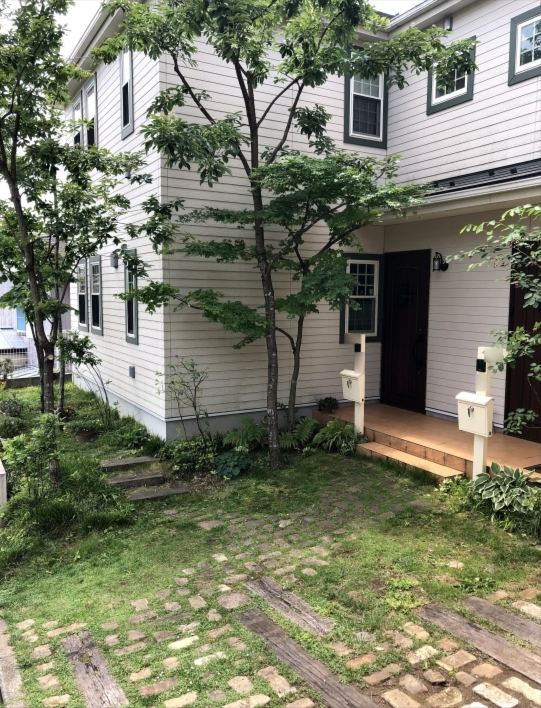 ホーム フォトギャラリー 新築・リフォーム すべて 神奈川県横浜市 新築外構 雑木の庭を住宅街の中に・・・その遍歴 U様邸 神奈川県横浜市 新築外構 雑木の庭を住宅街の中に・・・その遍歴 U様邸 新築 新築・リフォーム|すべて ここは避暑地??と勘違いしそうな雑木が並ぶU様邸。ですが、ここは横浜市のとある住宅密集地です。オープンエクステリアなこともあり、ご近所にも緑のおすそ分け。「この木はなんという木?素敵ですね・・・」と褒められるそうです。完工してから、5年が経ち、木々も木陰・木洩れ日ができ、充実した庭になっています。毎年剪定に伺った際に撮った写真をご紹介します。 2020年5月 現在の様子です。古窯レンガと枕木敷きの駐車場兼庭。傾斜のある敷地のため、草目地が広がるまで、雨が降った日は土が流れやすくちょっと大変だったのでは・・・と思いますが、自然な感じで素敵です。画像のみを表示全 26 枚中 1 枚目を表示Next ≫ 室内からも緑を眺めることができる木々。画像のみを表示全 26 枚中 2 枚目を表示≪ Prev|Next ≫ 低木や下草類の状態も良いです。画像のみを表示全 26 枚中 3 枚目を表示≪ Prev|Next ≫ さかのぼって、2年前の・・・2018年7月画像のみを表示全 26 枚中 4 枚目を表示≪ Prev|Next ≫ 秋に完工したU様邸。初めての春が過ぎ、夏を迎えた頃・・・2016年7月画像のみを表示全 26 枚中 5 枚目を表示≪ Prev|Next ≫ 2015年10月 完工当時の様子はこちらへ→いかがでしたか??植栽工事完工時は頼りなげな木々も、年々木陰・木洩れ日が心地よくなっていき、だいだいこの状態で維持管理していきます。見た目の心地良さプラス夏は涼しく、冬は暖かく過ごせる環境づくりもできます。画像のみを表示全 26 枚中 6 枚目を表示≪ Prev|Next ≫ 2世帯住宅のナチュラルな家に古窯レンガと雑木で 神奈川県横浜市U様邸 全面コンクリート打ちっぱなしの駐車場ではちょっと・・・とお考えだった神奈川県横浜市U様。弊社ホームページにて、古窯レンガ敷きのナチュラルな駐車場の施工をご覧に、気に入って下さり、新築外構工事のご依頼されました。画像のみを表示全 26 枚中 7 枚目を表示≪ Prev|Next ≫ 法面に枕木で階段を付け、ナチュラルな雰囲気に。グランドカバーはヒメイワダレソウと西洋芝を混ぜて植えました。画像のみを表示全 26 枚中 8 枚目を表示≪ Prev|Next ≫ 岡山は備前の古窯レンガと枕木で車庫スペースとアプローチを施工。この写真は草目地を施工したばかりのものです。画像のみを表示全 26 枚中 9 枚目を表示≪ Prev|Next ≫ 限られたスペースに機能門柱をおしゃれに・・・といったご希望にお答え出来る、CHABA-m チャバミニ+ポモ パステルクリーム色(美濃クラフト) シンプルなデザインはスペースも取らず、見た目だけじゃない優れものです。画像のみを表示全 26 枚中 10 枚目を表示≪ Prev|Next ≫ 門柱の足元他、下草はフッキソウ、ヤブラン、ヒューケラ、ギボウシなど・・・宿根草や多年草を植え、あまり手が掛からず年々ボリュームが増し、ナチュラルな雰囲気になるように。画像のみを表示全 26 枚中 11 枚目を表示≪ Prev|Next ≫ 緑が増えるとさらに雰囲気よくなります。完成形は3年後の予定です。画像のみを表示全 26 枚中 12 枚目を表示≪ Prev|Next ≫ 夏には木陰を作ってくれるコナラ、イロハモミジ、カマツカ、ソロ。画像のみを表示全 26 枚中 13 枚目を表示≪ Prev|Next ≫ おウチの中からも見える木々。画像のみを表示全 26 枚中 14 枚目を表示≪ Prev|Next ≫ 神奈川県横浜市 新築外構 2世帯住宅のオープン外構に雑木の庭を造ってからの5年間 U様邸 2020年5月・・・今年も剪定に伺いました、コナラやソロの木陰が心地よい神奈川県横浜市U様邸。「素敵なお庭ね。」とご近所さんに声を掛けられますとお施主様。ナチュラルな雰囲気の駐車場兼庭、オープンエクステリアは緑のおすわけにもなってます。完工から約5年経ちますU様邸の、樹木をはじめ緑がどのように成長、変化していったのか、写真を集めてみました。画像のみを表示全 26 枚中 15 枚目を表示≪ Prev|Next ≫ 2015年11月 完工当時。グランドカバーの西洋芝の発芽してきたところです。写真を撮った時期が秋ということで、樹木が落葉してちょっとさびしい雰囲気になっています。画像のみを表示全 26 枚中 16 枚目を表示≪ Prev|Next ≫ 2016年7月 完工から初めての夏を迎えた頃です。画像のみを表示全 26 枚中 17 枚目を表示≪ Prev|Next ≫ 2018年7月。ちょっと幹が太くなってきました。木陰の範囲も広がってきています。画像のみを表示全 26 枚中 18 枚目を表示≪ Prev|Next ≫ 2015年11月 完工当時。道路側の樹木です。画像のみを表示全 26 枚中 19 枚目を表示≪ Prev|Next ≫ 2020年5月。雑木林のような雰囲気になってきています。室内から見える景色も緑いっぱいで、避暑地にいるような気分になるのではないでしょうか。画像のみを表示全 26 枚中 20 枚目を表示≪ Prev|Next ≫ 上の写真は剪定後。剪定前はこんな感じです。木陰が沢山出来て、このままで剪定