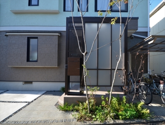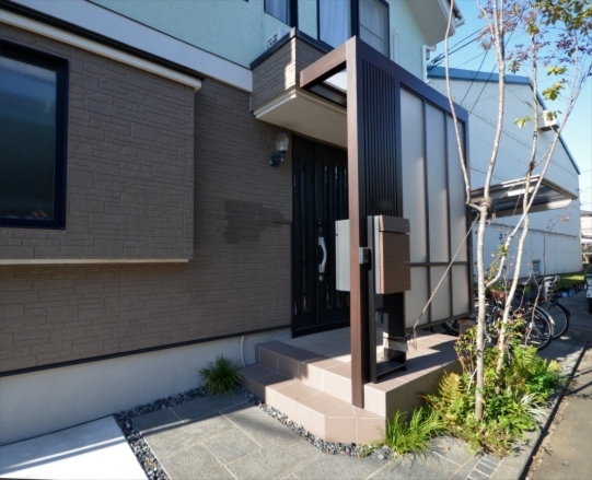 ホーム フォトギャラリー 新築・リフォーム すべて 府中市 プラスGで使い勝手がよくなる玄関周りリフォームと庭リフォーム T様邸 府中市 プラスGで使い勝手がよくなる玄関周りリフォームと庭リフォーム T様邸 リフォーム 新築・リフォーム|すべて お庭と玄関周りのリフォームをご検討中にネット検索していたところ、弊社のホームページ掲載の施工事例を気に入っていただき、ご相談・工事ご依頼くださいました。ご希望のことを、既存のものを活かしながらのリフォームの様子をビフォーアフターでご紹介させていただきます。画像のみを表示全 16 枚中 1 枚目を表示Next ≫ 玄関周り BEFORE玄関ドアを開けると、目の前が道路でお家の中が丸見えになってしまう・・・お悩みあるあるな事例です。画像のみを表示全 16 枚中 2 枚目を表示≪ Prev|Next ≫ 玄関周り AFTER玄関ポーチの形状変更し、プラスGシリーズ Gスクリーン(LIXIL)で玄関前を目隠し、Gルーフで雨の日も濡れずにすみます。また、植栽スペースを造り、アオダモ、ジューンベリー、マルバノキなどを植えました。画像のみを表示全 16 枚中 3 枚目を表示≪ Prev|Next ≫ 玄関ポーチ BEFORE既存の玄関ポーチです。道路正面から出入りする形状でした。画像のみを表示全 16 枚中 4 枚目を表示≪ Prev|Next ≫ 玄関ポーチ 工事中?階段を解体したところの様子です。このポーチを活かしながら、一部タイルも残し・・・画像のみを表示全 16 枚中 5 枚目を表示≪ Prev|Next ≫ 玄関ポーチ 工事中?ポーチ両脇から出入れするようにし、上段の出幅を広げ、道路際は土の状態に植栽スペースを設置。画像のみを表示全 16 枚中 6 枚目を表示≪ Prev|Next ≫ 玄関ポーチ AFTER仕上げのタイルは、既存タイルと同じものを貼っても良いのですが、経年変化で色が違ってしまうので、それなら全く違うものでお好きなタイルを新たに貼ったら良いのでは・・・とデザインしたかのように仕上げています。上の写真を見ていただくとわかりますが、コンクリート駐車場との間も自然石方形石敷きにしています。インターホン・ポスト位置も壁付けからGスクリーン縦長格子タイプ付けに変更。ポストは、宅配ポストにポストが付いてる仕様のヴィコDB(ユニソン)画像のみを表示全 16 枚中 7 枚目を表示≪ Prev|Next ≫ 庭側 BEFOREお庭側の方が課題が多いようで、お悩みポイントは・・・・3階建てアパートがあることと、日差しが強く、テレビに反射して見えないため、日中はシャッターを半分閉めてて、道路側掃き出し窓から通行する人が見えるの常にカーテンを閉めている状態。 ・臨時駐車場にも使いたいけど、掃き出し窓ステップのコンクリートが邪魔になる。・枕木敷きが劣化しているのが気になる。・可動式の日除けがほしい。・・・などなど。画像のみを表示全 16 枚中 8 枚目を表示≪ Prev|Next ≫ 庭側 AFTER?テラス屋根をGルーフで設置。気になる部分にフェンスを追加設置。掃き出し窓ステップを小さく加工。枕木敷きは撤去して、タイル敷きに。来客時には臨時駐車場として車を乗り入れることも可能です。画像のみを表示全 16 枚中 9 枚目を表示≪ Prev|Next ≫ 庭側 AFTER?花壇は撤去し、砂利敷きにソロ、ヤマコウバシなど植えました。自動散水装置を設置さえているので、下草類も元気に育っています。画像のみを表示全 16 枚中 10 枚目を表示≪ Prev|Next ≫ 水栓 BEFORE水栓一式撤去して・・・画像のみを表示全 16 枚中 11 枚目を表示≪ Prev|Next ≫ 水栓 AFTERカラーアルミ立水栓 補助蛇口仕様 ブラウン+ガーデンパン スプリット TYPE A メタルパーツC を設置。ちなみに、タイル床のマスはフロアハッチ施工してます。画像のみを表示全 16 枚中 12 枚目を表示≪ Prev|Next ≫ 駐車場 工事中一般的な土間コンクリートだったのですが、目地を切って・・・画像のみを表示全 16 枚中 13 枚目を表示≪ Prev|Next ≫ 駐車場 AFTERお庭のテラスタイルデザインと合わせて、自然石方形石と砂利を入れました。画像のみを表示全 16 枚中 14 枚目を表示≪ Prev|Next ≫ 全体図 BEFOREちょっと写真の角度が違いますが、全体図です。画像のみを表示全 16 枚中 15 枚目を表示≪ Prev|Next ≫ 全体図 AFTERT様のご希望で道路からの目隠しは簡易的なもので、シェードを使っています。機能面・デザイン面共に、長年気になりながら生活されていたことが解決し、お家で過ごす時間がストレスフリーになったのではないでしょうか。画像のみを表示全 16 枚中 16 枚目を表示≪ Prev 一覧へ戻る 新築・リフォーム 地域別 スタイル別 シーン別 ご来店お客様用資料 すべて 新築 リフォーム 厚木市 相模原市 伊勢原市 海老名市 座間市 綾瀬市 綾瀬市 大和市 愛川町・清川村 藤沢市 藤沢市 茅ヶ崎市 鎌倉市 横浜市 逗子市 葉山町 川崎市 二宮町 大磯町 小田原市 平塚市 秦野市 南足柄市 寒川町 開成町 東京都町田市 東京都八王子市 東京都多摩市 東京都日野市 東京都三鷹市 東京都府中市 東京都世田谷区・杉並区 東京都稲城市 和風 アウトドア 和モダン 駐車場兼庭 ウッドデッキ 