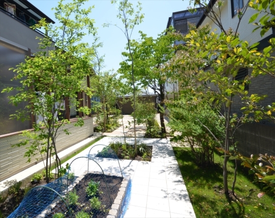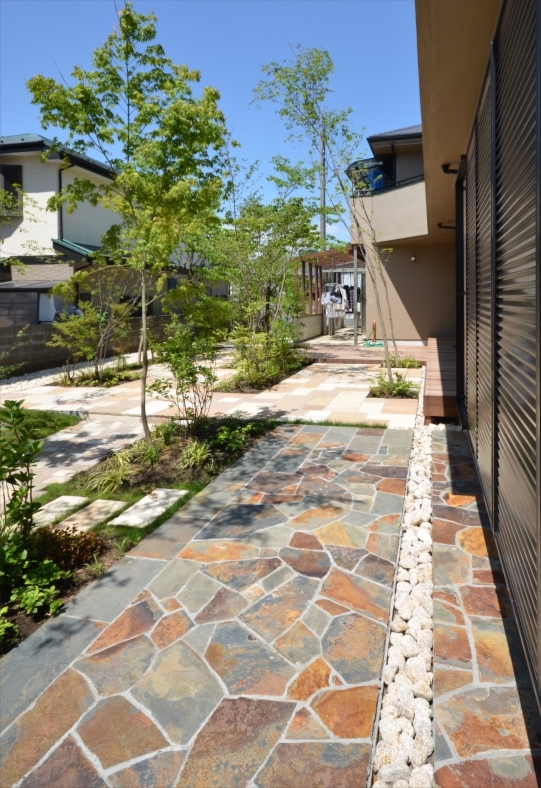 ホーム フォトギャラリー 新築・リフォーム すべて 神奈川県厚木市 芝生の庭からテラスのある庭へガーデンリフォーム K様邸 神奈川県厚木市 芝生の庭からテラスのある庭へガーデンリフォーム K様邸 リフォーム 新築・リフォーム|すべて 広い芝生の庭のリフォーム工事が完工しました。箇所毎に素材を変えてのテラス施工。既存樹木に雑木の木々を新たに植え、避暑地のテラスガーデンのような雰囲気に。 自然石方形石は、サンドストーン(メイクランド)ミックスゴールドとミックスイエローを大きさもランダムに混ぜて貼りました。画像のみを表示全 8 枚中 1 枚目を表示Next ≫ リフォーム工事前のお庭の様子です。きれいにお手入れされた芝生が広がるお庭でした。芝生のお手入れが大変になりリフォームをご依頼をされました。画像のみを表示全 8 枚中 2 枚目を表示≪ Prev|Next ≫ リフォーム工事後です。土の面積を減らしお手入れを軽減。木陰・木漏れ日のあるテラス。ベンチやガーデンファニチャーを置いて、緑を眺めるのも楽しみの一つです。画像のみを表示全 8 枚中 3 枚目を表示≪ Prev|Next ≫ お庭の入口の園路は、アンティークな石畳のような風合いのある、ラシカル・タンブル フォレストとブランカ ミックス貼りに。画像のみを表示全 8 枚中 4 枚目を表示≪ Prev|Next ≫ 掃き出し窓前のコンクリートテラスだったものを活かして、イタウバ材デッキを施工。ステップデッキにすることで、室内から庭への出入りもしやすくなります。画像のみを表示全 8 枚中 5 枚目を表示≪ Prev|Next ≫ 建物側から見た様子です。樹木が環境に慣れて成長始めるのに3年。緑に囲まれる日が楽しみです。画像のみを表示全 8 枚中 6 枚目を表示≪ Prev|Next ≫ 物干し用のテラス囲いのタイルテラスを延長して、錆びピンコロ石で囲った家庭菜園スペースを設けたタイルテラスに。画像のみを表示全 8 枚中 7 枚目を表示≪ Prev|Next ≫ 和室前の自然石敷きのテラスは、デュオストーン アルディ(メイクランド) 300角と600×300と乱形貼りに。伊勢ゴロタ石を敷いて雨落ちに。画像のみを表示全 8 枚中 8 枚目を表示≪ Prev 一覧へ戻る 新築・リフォーム 地域別 スタイル別 シーン別 ご来店お客様用資料 すべて 新築 リフォーム 厚木市 相模原市 伊勢原市 海老名市 座間市 綾瀬市 綾瀬市 大和市 愛川町・清川村 藤沢市 藤沢市 茅ヶ崎市 鎌倉市 横浜市 逗子市 葉山町 川崎市 二宮町 大磯町 小田原市 平塚市 秦野市 南足柄市 寒川町 開成町 東京都町田市 東京都八王子市 東京都多摩市 東京都日野市 東京都三鷹市 東京都府中市 東京都世田谷区・杉並区 東京都稲城市 和風 アウトドア 和モダン 駐車場兼庭 ウッドデッキ モリニワ 門周り・玄関周り 目隠し・間仕切り テラス アプローチ 店舗 植栽 施工