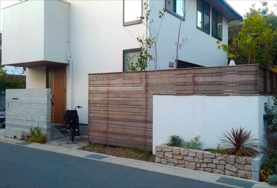ホーム フォトギャラリー 新築・リフォーム すべて 神奈川県逗子市 新築外構 ウッドフェンスをリゾートモダンデザインに。 A様邸 神奈川県逗子市 新築外構 ウッドフェンスをリゾートモダンデザインに。 A様邸 新築 新築・リフォーム|すべて 神奈川県逗子市新築外構・ガーデン工事のA様邸。ハードウッド材のイタウバ材で横桟の太さを変えた目隠しフェンス。画像のみを表示全 5 枚中 1 枚目を表示Next ≫ 左官仕上げの壁前に自然石張りの植栽スペース。ドライプランツはお施主様ご自身で植えられました。画像のみを表示全 5 枚中 2 枚目を表示≪ Prev|Next ≫ フェンスの内側は、L字型のベンチのあるタイルテラスになっています。画像のみを表示全 5 枚中 3 枚目を表示≪ Prev|Next ≫ ウッドフェンスは奥の庭側まで続いてます。ウッドデッキを囲うように植えた雑木の木々で、木陰をつくり過ごしやすい環境づくりと共にさりげなく目隠ししてます。画像のみを表示全 5 枚中 4 枚目を表示≪ Prev|Next ≫ ちなみに、玄関ドアを開けてすぐ道路に面している玄関前に、存在感のあるRC杉板本実仕上げ門袖を。画像のみを表示全 5 枚中 5 枚目を表示≪ Prev 一覧へ戻る 新築・リフォーム 地域別 スタイル別 シーン別 ご来店お客様用資料 すべて 新築 リフォーム 厚木市 相模原市 伊勢原市 海老名市 座間市 綾瀬市 綾瀬市 大和市 愛川町・清川村 藤沢市 藤沢市 茅ヶ崎市 鎌倉市 横浜市 逗子市 葉山町 川崎市 二宮町 大磯町 小田原市 平塚市 秦野市 南足柄市 寒川町 開成町 東京都町田市 東京都八王子市 東京都多摩市 東京都日野市 東京都三鷹市 東京都府中市 東京都世田谷区・杉並区 東京都稲城市 和風 アウトドア 和モダン 駐車場兼庭 ウッドデッキ モリニワ 門周り・玄関周り 目隠し・間仕切り テラス アプローチ 店舗 植栽 施工
