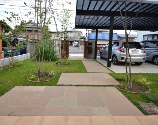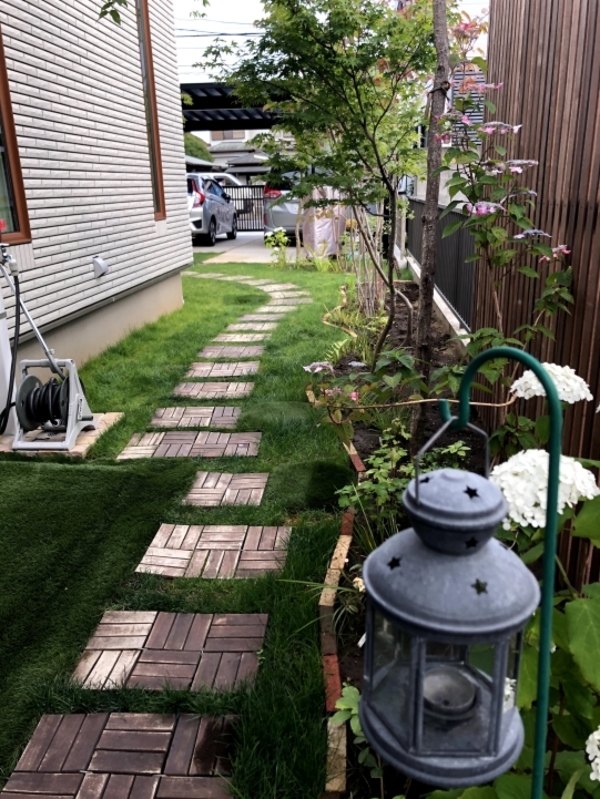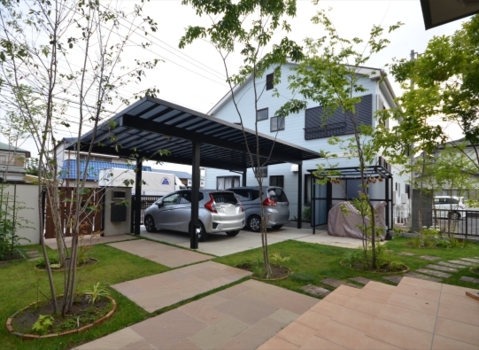ホーム フォトギャラリー 新築・リフォーム すべて 神奈川県中郡大磯町 新築外構 ソルディーポートとシンプルナチュラルな2世帯住宅 神奈川県中郡大磯町 新築外構 ソルディーポートとシンプルナチュラルな2世帯住宅 新築 新築・リフォーム|すべて 来店打ち合わせにご家族皆さんでいらっしゃいます仲良し家族。皆さんのご希望を詰め込んだ新築外構・庭工事が完工しました。セルフでつくられたお庭部分が充実した頃に写真を撮らせていただきました。画像のみを表示全 14 枚中 1 枚目を表示Next ≫ 玄関側から見た様子です。奥に見えるお車2台分のカーポートは、ソルディポート1500(LIXIL)画像のみを表示全 14 枚中 2 枚目を表示≪ Prev|Next ≫ 駐車スペースには、オーバードアを施工。ワイドオーバードアS4型ハイルーフ電動 (LIXIL) 手前のコンクリート土間はお車の転回スペース。来客時の臨時駐車場にもなります。サンドストーンピンコロを目地に並べて、ナチュラル感がプラスされています。画像のみを表示全 14 枚中 3 枚目を表示≪ Prev|Next ≫ 門扉は、開き門扉AA TS1型050914 親子開きH1400 クリエモカ(LIXIL)両脇に植栽スペースを、エゴノキが出迎えてくれます。画像のみを表示全 14 枚中 4 枚目を表示≪ Prev|Next ≫ 自転車置き場には、サイクルポートを、フーゴFパーク22-18型 H1800 北側パネル無し 熱線吸収ポリカ ブラック(LIXIL)を設置。画像のみを表示全 14 枚中 5 枚目を表示≪ Prev|Next ≫ アプローチ床は、フォレストペイビングで自然石方形石敷きに。コナラ・ジューンベリー・アオダモを脇に植え、3年後は心地良い木陰・木洩れ日ができる予定です。画像のみを表示全 14 枚中 6 枚目を表示≪ Prev|Next ≫ 家庭菜園スペースに、トマトなど野菜が順調に育っていました。道路側に縦格子の目隠しフェンスを、ブログコートフェンス F1型T-16(LIXIL)を施工。画像のみを表示全 14 枚中 7 枚目を表示≪ Prev|Next ≫ グランドカバーの西洋芝やウッド材の園路、樹木の周りのレンガの土留めも施主様施工です。掃き出し窓前に、木陰が出来るよう、コナラ・ソロ、イロハモミジを植えました。画像のみを表示全 14 枚中 8 枚目を表示≪ Prev|Next ≫ ご要望でした、コの字型のウッドデッキ、パラソルの柱を立てる穴を開けて、ご家族が集うアウトドアリビングに。人工芝は弊社では施工してないため、施主様自身で施工されています。画像のみを表示全 14 枚中 9 枚目を表示≪ Prev|Next ≫ こだわりのウッドデッキ。色々な材をご検討されてイタウバ材で施工。写真撮影のためにパラソルやテーブル・椅子もセッティングしてくださいました。ありがとうございます!!画像のみを表示全 14 枚中 10 枚目を表示≪ Prev|Next ≫ 縦格子の目隠しフェンスもイタウバ材で施工。高さ H2000、すき間は20mmに。写真では見えませんが、コナラ・ソロを植え、緑を愛でながら過ごすことができます。画像のみを表示全 14 枚中 11 枚目を表示≪ Prev|Next ≫ 可愛いガーデン雑貨で飾ったり、使いやすいように園路をつくられてたりして楽しまれてました。画像のみを表示全 14 枚中 12 枚目を表示≪ Prev|Next ≫ 通りに面した敷地において、程よいクローズ外構によりプライバシーが守られ、新しい土地での生活を満喫出来るお手伝いをさせていただきました。画像のみを表示全 14 枚中 13 枚目を表示≪ Prev|Next ≫ 完工後のアンケートにご協力いただけました。こちら→画像のみを表示全 14 枚中 14 枚目を表示≪ Prev 一覧へ戻る 新築・リフォーム 地域別 スタイル別 シーン別 ご来店お客様用資料 すべて 新築 リフォーム 厚木市 相模原市 伊勢原市 海老名市 座間市 綾瀬市 綾瀬市 大和市 愛川町・清川村 藤沢市 藤沢市 茅ヶ崎市 鎌倉市 横浜市 逗子市 葉山町 川崎市 二宮町 大磯町 小田原市 平塚市 秦野市 南足柄市 寒川町 開成町 東京都町田市 東京都八王子市 東京都多摩市 東京都日野市 東京都三鷹市 東京都府中市 東京都世田谷区・杉並区 東京都稲城市 和風 アウトドア 和モダン 駐車場兼庭 ウッドデッキ モリニワ 門周り・玄関周り 目隠し・間仕切り テラス アプローチ 店舗 植栽 施工