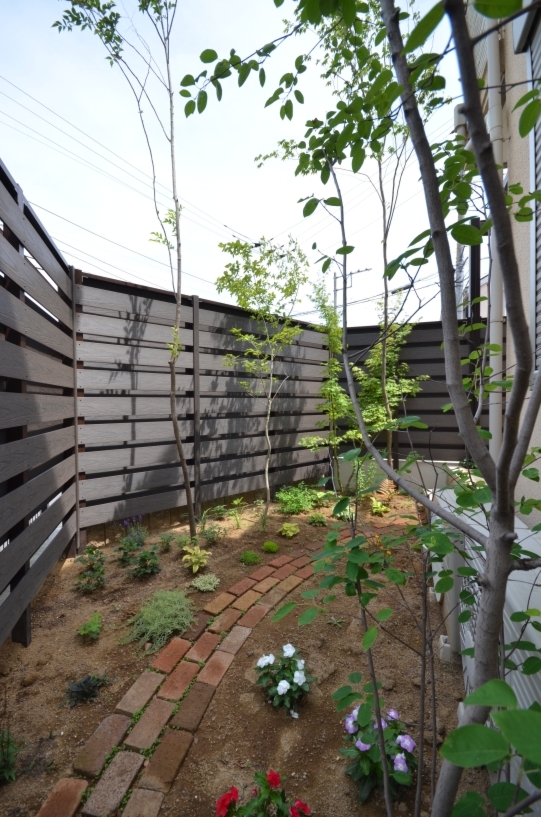 ホーム フォトギャラリー 新築・リフォーム すべて 神奈川県厚木市 共働きご家族がガーデニングを楽しむことができるガーデンリフォーム Y様邸 神奈川県厚木市 共働きご家族がガーデニングを楽しむことができるガーデンリフォーム Y様邸 リフォーム 新築・リフォーム|すべて 庭づくりをご自身でやってみたいと思っても、平日は仕事と家事。休日はお子さんとご一緒に過ごす・・・となると、後回しになって、そのうち庭が荒れていく・・・という状況はよくあることです。日々成長されるお子さんと過ごす時間は貴重です。そんな時間を大切に、庭リフォームをすることでストレスフリーにお庭で過ごすことが出来るようになった神奈川県厚木市Y様邸をご紹介させていただきます。画像のみを表示全 13 枚中 1 枚目を表示Next ≫ BEFORE 駐車場側ベニカナメモチの生垣に囲まれた庭。常緑樹の生垣は、緑の目隠しで自然な雰囲気になり良いのですが、毎年剪定が必要で、木の成長により庭部分の使えるスペースが減っていきます。画像のみを表示全 13 枚中 2 枚目を表示≪ Prev|Next ≫ AFTER 駐車場側生垣は撤去し、目隠しフェンスとして、木調樹脂フェンス モクプラボード リアル平板 ダークパイン(タカショー)を施工。既存ブロックは2段増積みして左官仕上げしています。画像のみを表示全 13 枚中 3 枚目を表示≪ Prev|Next ≫ BEFORE 掃き出し窓前?Y様のお話によりますと、お庭をDIYしようとチャレンジしてみたそうですが、放置状態になり2・3年経ち、庭に出るのは年に数回伸びすぎた木を剪定するためだけだったそうです。ウッドデッキ用に購入された束石が置かれていますね・・・。ご夫婦お二人共がお勤めの場合、お庭あるあるなことです。画像のみを表示全 13 枚中 4 枚目を表示≪ Prev|Next ≫ AFTER 掃き出し窓前?庭の一部土の部分を残して、室内床からフラットに繋がるタイルテラスに施工。テラス屋根は設計自由度の高い、プラスGシリーズ(LIXIL)のGルーフ+Gフレームで施工。フェンス下の植栽スペースに低木・下草類を植えました。生垣だった時より、緑の分量は減りましたが、室内から少し見えるだけでも癒されます。少しと言っても、Y様ご家族、緑を上手に育てられてて、ほぼ土が見えないほどモリモリに元気でした。画像のみを表示全 13 枚中 5 枚目を表示≪ Prev|Next ≫ BEFORE 玄関側生垣と既存樹木が生い茂っていました。画像のみを表示全 13 枚中 6 枚目を表示≪ Prev|Next ≫ AFTER 玄関側庭の出入り口に、エバーアートウッド門扉?横板貼102幅 H1400 ダークパイン(タカショー)を設置。タイルテラスのステップ一部に植栽スペースを、コナラを植えました。下枝のない樹形は人の動線を邪魔しません。フェンスの裏は、タイルテラス上に水栓を設置しています。画像のみを表示全 13 枚中 7 枚目を表示≪ Prev|Next ≫ BEFORE 掃き出し窓前?芝生の庭。2台あるエアコンの室外機は、電気業者さんに依頼し移動、奥に見えるモミジは移植します。画像のみを表示全 13 枚中 8 枚目を表示≪ Prev|Next ≫ AFTER 掃き出し窓前?手前に移植したモミジ。生垣による圧迫感もなくなり、お庭で楽しむスペースも増え、外で過ごす時間が増えます。画像のみを表示全 13 枚中 9 枚目を表示≪ Prev|Next ≫ BEFORE 角地変形角地である敷地の三角の部分は、ご家族でガーデニングを楽しめるエリアに。画像のみを表示全 13 枚中 10 枚目を表示≪ Prev|Next ≫ AFTER 角地 R2年11月これでお引き渡しです。写真に写ってないのもありますが、ソロ(アカシデ)・エゴノキ・ヤマコウバシ・ジューンベリーを植えています。画像のみを表示全 13 枚中 11 枚目を表示≪ Prev|Next ≫ AFTER 角地 R3年 6月園路をレンガでDIYされ、お花も植えられて、木々も順調に葉を出し素敵になってました。駐車場側にも、ハンギングやプランターで野菜を育てられていたり・・・充実した庭に。これからどんな風に変化していくのか楽しみですね。お庭づくりにおいて、ベースになる部分はプロにお任せして、手軽に出来ることや一番やってみたいことはご自身で!というのも1つの方法です。また、DIYに挫折しても受け皿はあります(笑)皆様、思いっきり楽しんでチャレンジしてみてください。画像のみを表示全 13 枚中 12 枚目を表示≪ Prev|Next ≫ Y様のお客様の声です。こちらへ→画像のみを表示全 13 枚中 13 枚目を表示≪ Prev 一覧へ戻る 新築・リフォーム 地域別 スタイル別 シーン別 ご来店お客様用資料 すべて 新築 リフォーム 厚木市 相模原市 伊勢原市 海老名市 座間市 綾瀬市 綾瀬市 大和市 愛川町・清川村 藤沢市 藤沢市 茅ヶ崎市 鎌倉市 横浜市 逗子市 葉山町 川崎市 二宮町 大磯町 小田原市 平塚市 秦野市 南足柄市 寒川町 開成町 東京都町田市 東京都八王子市 東京都多摩市 東京都日野市 東京都三鷹市 東京都府中市 東京都世田谷区・杉並区 東京都稲城市 和風 アウトドア 和モダン 駐車場兼庭 ウッドデッキ モリニワ 門周り・玄関周り 目隠し・間仕切り テラス アプローチ 店舗 植栽 施工