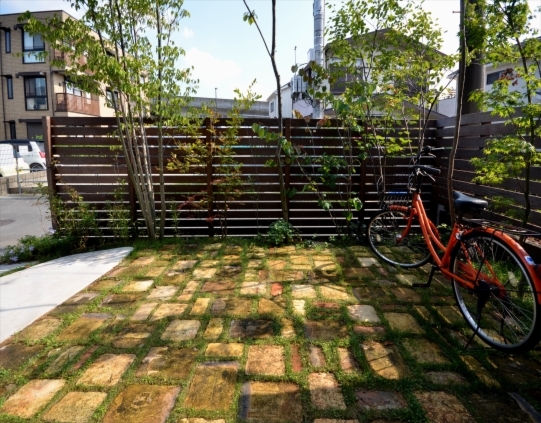 ホーム フォトギャラリー 新築・リフォーム すべて 町田市 新築外構 駐車場兼ガーデンを箱抜き土間コンクリート+古窯レンガ敷きで K様邸 町田市 新築外構 駐車場兼ガーデンを箱抜き土間コンクリート+古窯レンガ敷きで K様邸 新築 新築・リフォーム|すべて 新築外構工事をご依頼いただきました町田市K様邸。限られたスペースを有効活用する駐車場兼庭に。通常駐車するスペースはR形状に箱抜きしたコンクリート土間施工。奥の庭部分は、臨時駐車できるように、古窯レンガ敷きのテラスに。庭をあきらめずに、駐車スペースも確保することが出来ます。画像のみを表示全 10 枚中 1 枚目を表示Next ≫ コンクリート部分は、敷地に高低差があるため、お車を止めやすいよう考慮した形状で傾斜をつけてます。画像のみを表示全 10 枚中 2 枚目を表示≪ Prev|Next ≫ 草目地は、K様ご自身で施工。西洋芝とダイカンドラの種蒔きして草目地にします。雑草が生えてきても一緒に草目地として共存すると、お手入れも気楽です。室内からの眺めも殺風景にはならず、緑を感じながら過ごす毎日になります。画像のみを表示全 10 枚中 3 枚目を表示≪ Prev|Next ≫ 玄関側にもコンクリートで自転車が置きやすいようにしてます。トータルデザインのページはこちらへ→画像のみを表示全 10 枚中 4 枚目を表示≪ Prev|Next ≫ 町田市 新築外構 限られた敷地に木陰とお庭を 駐車場兼庭のナチュラル外構 K様邸 シンプルな建物外観デザインの東京都町田市K様邸。限られたスペースでも、お庭を諦めることなく緑を感じながら生活出来る、また機能面でも工夫し充実した新築外構・庭工事です。画像のみを表示全 10 枚中 5 枚目を表示≪ Prev|Next ≫ 玄関周りです。ポストはボビ ボルドー色。足元は、古窯レンガ敷きに。玄関ポーチには、グリップライン マイルドブラック色 (LIXIL)を。 インターホンを設置しているのはイタウバ材。アオダモとヤマコウバシを脇に植えてます。画像のみを表示全 10 枚中 6 枚目を表示≪ Prev|Next ≫ 接道と庭との目隠しにハードウッド材であるイタウバのウッドフェンスを施工。画像のみを表示全 10 枚中 7 枚目を表示≪ Prev|Next ≫ 車1台分の駐車スペースと自転車置き場は箱抜きコンクリートで。奥に見える物置きはアイビーストッカー(イナバ)。縁台は、基礎のコンクリートは弊社施工で、縁台部はK様セルフ施工です。画像のみを表示全 10 枚中 8 枚目を表示≪ Prev|Next ≫ 古窯レンガ敷きの駐車場兼庭。臨時駐車場として車を乗り入れても大丈夫。草目地はK様セルフ施工されてます。写真ではわかりづらいかもしれないのですが、道路と敷地と高低差が約40cmくらいありまして、敷地をなるべく広く使えるようにと、コストを考えて、ブロックを積まずに、ウッドで土留めをしています。画像のみを表示全 10 枚中 9 枚目を表示≪ Prev|Next ≫ 庭に陰を落とすコナラ、ソロ、ヤマボウシ、イロハモミジなどの雑木たち。室内からも緑が見えて、眺めも心地良いのではないでしょうか。植栽工事から3年後を完成とします。その頃には夏は涼しく、冬は暖かなパッシブデザインを取り入れた生活が実現している予定です。画像のみを表示全 10 枚中 10 枚目を表示≪ Prev 一覧へ戻る 新築・リフォーム 地域別 スタイル別 シーン別 ご来店お客様用資料 すべて 新築 リフォーム 厚木市 相模原市 伊勢原市 海老名市 座間市 綾瀬市 綾瀬市 大和市 愛川町・清川村 藤沢市 藤沢市 茅ヶ崎市 鎌倉市 横浜市 逗子市 葉山町 川崎市 二宮町 大磯町 小田原市 平塚市 秦野市 南足柄市 寒川町 開成町 東京都町田市 東京都八王子市 東京都多摩市 東京都日野市 東京都三鷹市 東京都府中市 東京都世田谷区・杉並区 東京都稲城市 和風 アウトドア 和モダン 駐車場兼庭 ウッドデッキ モリニワ 門周り・玄関周り 目隠し・間仕切り テラス アプローチ 店舗 植栽 施工