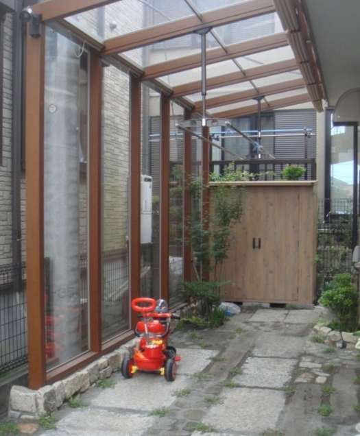 ホーム フォトギャラリー 新築・リフォーム すべて 神奈川県愛甲郡愛川町 ココマで和のテラス K様邸 神奈川県愛甲郡愛川町 ココマで和のテラス K様邸 新築 新築・リフォーム|すべて 景色工房サフランの展示場の近くにお住まいの神奈川県愛甲郡愛川町K様。住まわれて5年のお庭は、緑を植えたり、レンガを敷いたりと楽しまれていたのですが、そのうちお仕事が忙しくなり、お子さんが出来たりで、お手入れができなくなり、お手上げ状態になり、昨年の9月に展示場にご相談にみえました。展示場の前を通りかかり、庭をご覧になったとき、「これがいい!」と思われたそうです。 お庭だったところを、臨時駐車場兼テラスとして使いたいと言うご希望でした。そして雰囲気は「和」。展示場の雰囲気に近い形でご提案を致しました。画像のみを表示全 13 枚中 1 枚目を表示Next ≫ 床には、大きめの御影石敷石を中心に敷き詰めました。古材の御影石のため、なんともいえない味わいがあります。目地には、手が掛からないものというご希望から、ヒメイワデレソウを植え込んでいます。2,3ヵ月後には、雰囲気の良い草目地の空間になる予定です。画像のみを表示全 13 枚中 2 枚目を表示≪ Prev|Next ≫ LIXILのココマはサイドスルータイプを使用。低い腰壁部分には石積みを思わせる自然石の石張りを施しました。画像のみを表示全 13 枚中 3 枚目を表示≪ Prev|Next ≫ 床には、御影石の古材のほかに、古窯レンガや枕木、乱形の自然石玉石も使用して、山里の素朴な雰囲気を表現してみました。画像のみを表示全 13 枚中 4 枚目を表示≪ Prev|Next ≫ リビングから見える位置、かつ臨時駐車場として使用できる位置に、小さなヤマモミジとマホニアコンフーサ、下草類はセキショウやシダ・トクサを植え込みました。物置はタカショーのガーデン収納庫のクラシックナチュラル色を使用。落ちついた色調で和の雰囲気をまとめています。画像のみを表示全 13 枚中 5 枚目を表示≪ Prev|Next ≫ 建物際に石積みでちょっとした植栽スペースを作成しました。常緑のアセビや下草類を植えました。手前のギボウシは奥様が、施工前のお庭で育てられてたものです。画像のみを表示全 13 枚中 6 枚目を表示≪ Prev|Next ≫ 神奈川県愛甲郡愛川町 雨の日も快適、臨時駐車スペースにも・・・ビフォーアフター K様邸 ご自宅を新築されて5年のK様。お庭もいろいろ植栽を植えたり、平板を敷いたりと楽しまれていたのですが、お忙しくてなかなかお手入れができなくなり、現在の状況のお庭に。展示場を見て大変気にいって頂き、ご来店されて「こんな感じにしてください」と言われ驚きました。と言うのも、K様は展示場OPENして初めてご依頼頂いたお客様で、さらに私達が理想としてる庭をご支持頂けた事が初めてで感動したからです。K様のご希望は、お手入れが楽で、来客時には駐車スペースになるお庭。展示場のような古材を使った味のある石畳。植栽も和のもの中心で。画像のみを表示全 13 枚中 7 枚目を表示≪ Prev|Next ≫ Before画像のみを表示全 13 枚中 8 枚目を表示≪ Prev|Next ≫ After ガーデンラウンジ「ココマ」サイドスルータイプと日除けのロールスクリーンを設置する事で、お好みの目隠しができ、雨の日でも快適に過ごせます。足元は、石積み風に。自然石の古材や古窯レンガ・枕木を敷いた石畳と一体感がでます。目地には、お手入れが楽なヒメイワダレソウを植え、草目地に。生え揃ったときには緑の部分が増え、今とはまた違った表情になるのが楽しみです。画像のみを表示全 13 枚中 9 枚目を表示≪ Prev|Next ≫ Before画像のみを表示全 13 枚中 10 枚目を表示≪ Prev|Next ≫ After 雑然とした、水栓柱周りでした。石積みで、ガーデンパンと花壇を作りました。植栽は和テイストなアセビ・トクサ・セキショウやシダを植えました。画像のみを表示全 13 枚中 11 枚目を表示≪ Prev|Next ≫ Before画像のみを表示全 13 枚中 12 枚目を表示≪ Prev|Next ≫ After ハンギングやハツユキカズラ・大きくなりすぎたカレックスエバーゴールド…ナチュラルなお庭だった名残りに、お手入れができなくなり、草が生えて手に負えなくなった感じがわかります。しかし…これはこれで、ちょっと手を加えれば、いい感じのナチュラルガーデンになりそうな気はするのですが、それではまめなお手入れが必要なので、リガーデンしました。タカショーのガーデン収納庫を、和の雰囲気が出る色を選び設置しました。小さいヤマモミジにマホニアコンフーサ・和庭に合う下草を植えました。画像のみを表示全 13 枚中 13 枚目を表示≪ Prev 一覧へ戻る 新築・リフォーム 地域別 スタイル別 シーン別 ご来店お客様用資料 すべて 新築 リフォーム 厚木市 相模原市 伊勢原市 海老名市 座間市 綾瀬市 綾瀬市 大和市 愛川町・清川村 藤沢市 藤沢市 茅ヶ崎市 鎌倉市 横浜市 逗子市 葉山町 川崎市 二宮町 大磯町 小田原市 平塚市 秦野市 南足柄市 寒川町 開成町 東京都町田市 東京都八王子市 東京都多摩