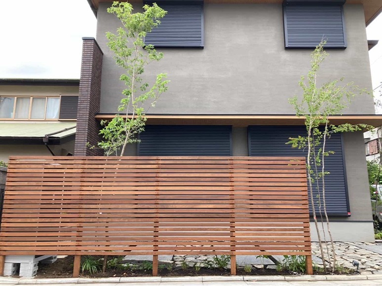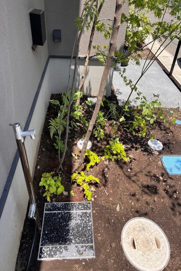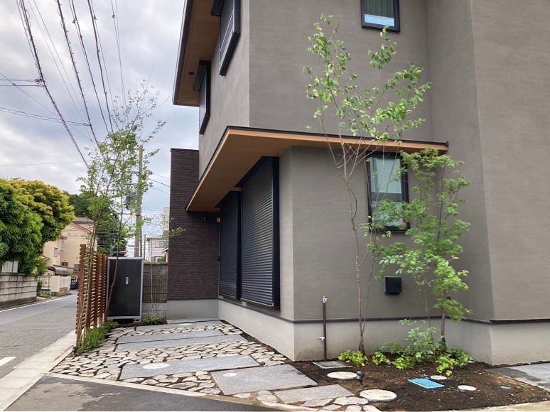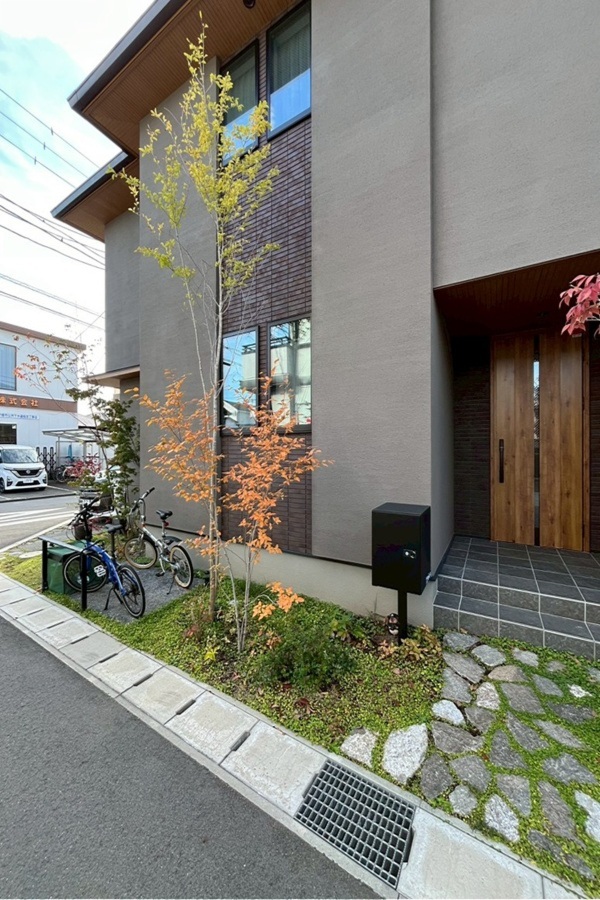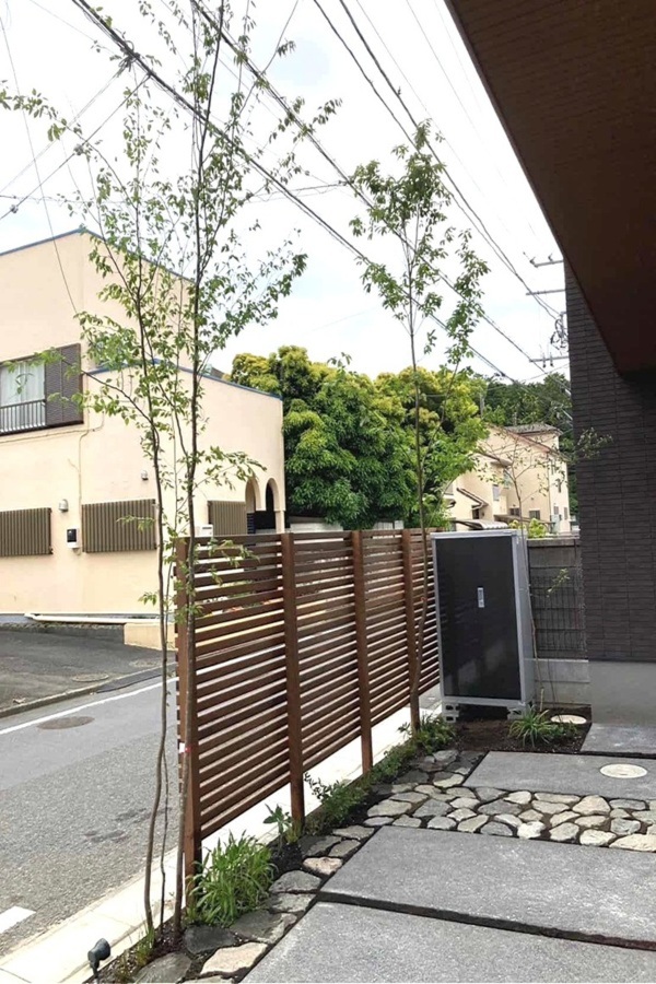 ホーム フォトギャラリー 新築・リフォーム すべて 神奈川県平塚市 駐車場兼庭で敷地を有効活用して自然な雰囲気の新築外構・・・その後の様子 T様邸 神奈川県平塚市 駐車場兼庭で敷地を有効活用して自然な雰囲気の新築外構・・・その後の様子 T様邸 新築 新築・リフォーム|すべて シンプルでシックな建物外観の神奈川県平塚市T様邸。限られたスペースを有効活用して駐車場兼庭、自然素材を使い、自然な雰囲気の新築外構工事。1年程経った様子をご紹介いたします。画像のみを表示全 15 枚中 1 枚目を表示Next ≫ ハードウッド材でオリジナル施工した、ウッド門柱。アクが落ちて、シルバーグレー色になっています。自然石敷きのアプローチ。草目地、グランドカバーも緑がきれいに広がっています。画像のみを表示全 15 枚中 2 枚目を表示≪ Prev|Next ≫ ちょうど紅葉の時期にお邪魔して写真を撮らせていただきました。色とりどりの葉っぱがきれいでした。室内からも樹木が見えるように植えているので、四季の移ろいを家の中からも感じることの出来る暮らしです。画像のみを表示全 15 枚中 3 枚目を表示≪ Prev|Next ≫ 自転車を置くスペース、水栓、樹木。隅切りの角地の敷地形状をうまく配置して、使い勝手よく。画像のみを表示全 15 枚中 4 枚目を表示≪ Prev|Next ≫ 駐車場でもあり、庭でもある「駐車場兼庭」。床は、自然石敷きと洗い出しコンクリートで石畳風に。車が止まってない時でも、室内からの眺めも、殺風景にならない「駐車場兼庭」です。画像のみを表示全 15 枚中 5 枚目を表示≪ Prev|Next ≫ フェンスの下部分は、下草類が育って隙間をカバーしてくれる予定ですが、グランドカバーに負けてる感じかな・・・画像のみを表示全 15 枚中 6 枚目を表示≪ Prev|Next ≫ 車通りのある道路から目隠しにハードウッド材でウッドフェンス。画像のみを表示全 15 枚中 7 枚目を表示≪ Prev|Next ≫ 完工当時 シンプルでシックな建物外観の神奈川県平塚市T様邸。限られたスペースを有効活用して、自然素材を使って、自然な雰囲気の新築外構工事です。画像のみを表示全 15 枚中 8 枚目を表示≪ Prev|Next ≫ ハードウッド材でオリジナル施工した、ウッド門柱。ポストと別に、宅配ボックスを設置しています。アプローチは自然石敷きに。土の部分草目地になる予定です。画像のみを表示全 15 枚中 9 枚目を表示≪ Prev|Next ≫ 駐車場でもあり、庭でもある「駐車場兼庭」車通りのある道路から目隠しにハードウッド材でウッドフェンスを設置。床は、自然石敷きと洗い出しコンクリートで石畳風に。車が止まってない時でも、室内からの眺めも、殺風景にならない「駐車場兼庭」です。画像のみを表示全 15 枚中 10 枚目を表示≪ Prev|Next ≫ 「駐車場兼庭」に車が止まると、こんな感じです。雑木の木々は、下枝のない樹形を選び、車や人の動線と被らないように、空間の住み分けをしています。画像のみを表示全 15 枚中 11 枚目を表示≪ Prev|Next ≫ ウッドフェンスを外側から見た様子です。下の方の横板を張らないことで、コストダウンになります・・・とご提案をよくさせていただいたおりますが、下草類が成長すると、空いてる感じが気にならなくなります。画像のみを表示全 15 枚中 12 枚目を表示≪ Prev|Next ≫ 内側から見た様子です。「駐車場兼庭」もグランドカバーで、緑いっぱいになる予定です。山採り雑木で、夏は木陰を落として、心地良い空間をつくります。画像のみを表示全 15 枚中 13 枚目を表示≪ Prev|Next ≫ 洗い出しコンクリートの自転車置き場。画像のみを表示全 15 枚中 14 枚目を表示≪ Prev|Next ≫ 水栓柱はジラーレ(オンリーワンクラブ)色のバリエーションも多く、デザインもシンプルなので、おすすめしております。画像のみを表示全 15 枚中 15 枚目を表示≪ Prev 一覧へ戻る 新築・リフォーム 地域別 スタイル別 シーン別 ご来店お客様用資料 すべて 新築 リフォーム 厚木市 相模原市 伊勢原市 海老名市 座間市 綾瀬市 綾瀬市 大和市 愛川町・清川村 藤沢市 藤沢市 茅ヶ崎市 鎌倉市 横浜市 逗子市 葉山町 川崎市 二宮町 大磯町 小田原市 平塚市 秦野市 南足柄市 寒川町 開成町 東京都町田市 東京都八王子市 東京都多摩市 東京都日野市 東京都三鷹市 東京都府中市 東京都世田谷区・杉並区 東京都稲城市 和風 アウトドア 和モダン 駐車場兼庭 ウッドデッキ モリニワ 門周り・玄関周り 目隠し・間仕切り テラス アプローチ 店舗 植栽 施工