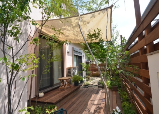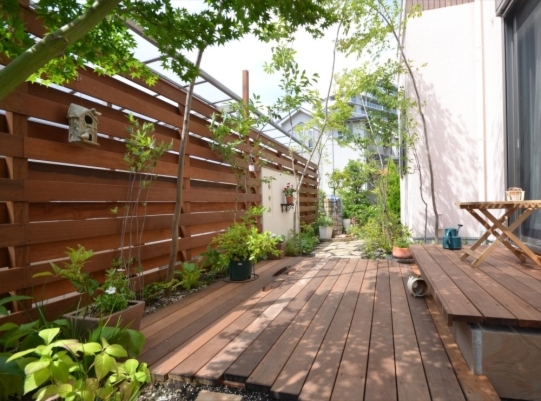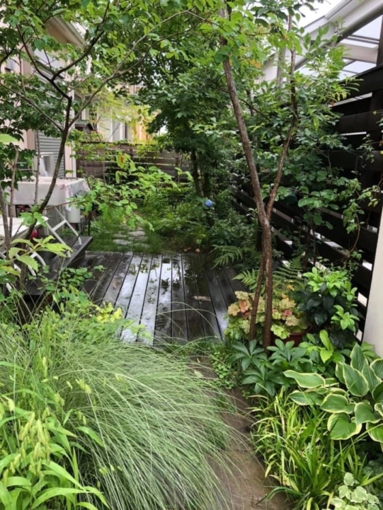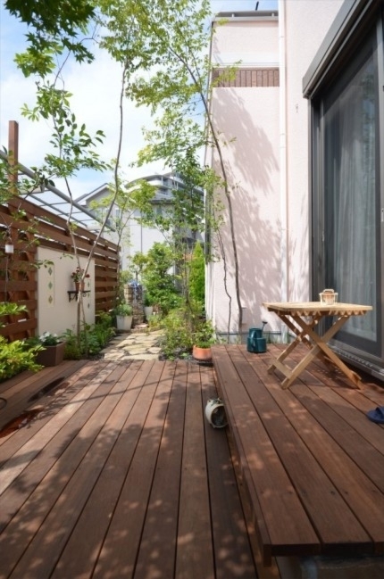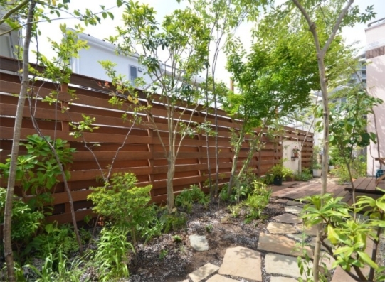 ホーム フォトギャラリー 新築・リフォーム すべて 稲城市 ガーデンリフォームで雑木とシェードで心地良く鳥もやってくるナチュラルガーデンに。K様邸 稲城市 ガーデンリフォームで雑木とシェードで心地良く鳥もやってくるナチュラルガーデンに。K様邸 リフォーム 新築・リフォーム|すべて 築10年経ち、大きくなりすぎた樹木や生垣のあるK様邸のお庭。金木犀とモミジは残し、自然樹形に剪定。新たに山採り雑木を植え、パッシブデザインを取り入れたガーデンリフォームを。ウッドフェンスの柱を角出しして、夏はシェードを掛けてさらに日除けが出来ます。画像のみを表示全 17 枚中 1 枚目を表示Next ≫ 5・6mはある山採りのコナラやソロ。下枝がないのでスペースを有効に使え、デッキ上や庭に木陰を作ってくれます。画像のみを表示全 17 枚中 2 枚目を表示≪ Prev|Next ≫ イタウバ材で、ステップのある低床デッキに。既存テラスの踏み面を板張り+蹴上げを自然石張り(フォレストペイビング)にし、ランダムに張ったウッドデッキ。画像のみを表示全 17 枚中 3 枚目を表示≪ Prev|Next ≫ 自然好きの施主様、林の中にいるような心地良さを日々感じながら過ごせるお庭に生まれ変わり喜んで頂けました。画像のみを表示全 17 枚中 4 枚目を表示≪ Prev|Next ≫ ベニカナメモチの生垣は全撤去し、イタウバ材のウッドフェンスにリフォーム。花台のある飾り壁や雑木の木々が爽やかに、室内から見る景色も心地良いです。画像のみを表示全 17 枚中 5 枚目を表示≪ Prev|Next ≫ K様邸のビフォーアフターの様子はこちらへ→画像のみを表示全 17 枚中 6 枚目を表示≪ Prev|Next ≫ 2019年7月 剪定時の様子をブログで紹介してます。この頃になると、樹木が成長し、シェードをしなくても木陰が出来るようになっています。画像のみを表示全 17 枚中 7 枚目を表示≪ Prev|Next ≫ 稲城市 ガーデンリフォームのビフォーアフター 山採り雑木と自然素材で心地良いテラス。K様邸 築10年経った東京都稲城市K様邸。既存樹木・生垣を見直し、お隣との境界の目隠し、南側の日除けをご希望。画像のみを表示全 17 枚中 8 枚目を表示≪ Prev|Next ≫ Before画像のみを表示全 17 枚中 9 枚目を表示≪ Prev|Next ≫ After 自然がお好きで、野鳥もお好きなK様。サフランのモリニワを楽しみに、遠方よりお打ち合わせにご来店頂きました。ありがとうございます。山採り雑木や自然素材を使って、パッシブデザインを取り入れたガーデンリフォームにより、機能的で、日々山の中にいるような心地良さを感じながら過ごせるお庭に・・・。画像のみを表示全 17 枚中 10 枚目を表示≪ Prev|Next ≫ Before画像のみを表示全 17 枚中 11 枚目を表示≪ Prev|Next ≫ After 土のままの状態のところは、西洋芝でグランドカバーをされて、うまく育たなかったそうです。歩く箇所は自然石(フォレスト・クレイジーペイビング)敷き、草目地はご自身で再度チャレンジするそうです。西洋芝の管理方法は伝授させて頂きました。画像のみを表示全 17 枚中 12 枚目を表示≪ Prev|Next ≫ Before画像のみを表示全 17 枚中 13 枚目を表示≪ Prev|Next ≫ After 南側の掃き出し窓は、既存テラスを活かして・・・イタウバ材で、ステップのある低床デッキに。既存テラスの踏み面を板張り+蹴上げを自然石張り(フォレストペイビング)にし、ランダムに張ったウッドデッキに。ソロやコナラで木陰を作りながら、夏はシェードで日陰を作り、快適なテラスに。画像のみを表示全 17 枚中 14 枚目を表示≪ Prev|Next ≫ Before画像のみを表示全 17 枚中 15 枚目を表示≪ Prev|Next ≫ 大きくなり過ぎたベニカナメモチの生垣は撤去。お庭がちょっと広く使え、明るいお庭になります。イタウバ材のフェンスに。K様のご希望で、窓から眺める景色に変化が欲しいということで、左官仕上げの飾り壁を。自然石の笠木(フォレストコーピング)にクロススクエアガラス デザインタイプでアクセントを。画像のみを表示全 17 枚中 16 枚目を表示≪ Prev|Next ≫ 新たに、アオダモ、エゴノキ、クロモジ、ナツハゼ、ジューンベリーなどを植えました。木陰が心地良い避暑地の中にあるテラスのような雰囲気になったのではないでしょうか。可愛い鳥の巣箱も付けられて、どんな鳥がやってくるか楽しみですね。画像のみを表示全 17 枚中 17 枚目を表示≪ Prev 一覧へ戻る 新築・リフォーム 地域別 スタイル別 シーン別 ご来店お客様用資料 すべて 新築 リフォーム 厚木市 相模原市 伊勢原市 海老名市 座間市 綾瀬市 綾瀬市 大和市 愛川町・清川村 藤沢市 藤沢市 茅ヶ崎市 鎌倉市 横浜市 逗子市 葉山町 川崎市 二宮町 大磯町 小田原市 平塚市 秦野市 南足柄市 寒川町 開成町 東京都町田市 東京都八王子市 東京都多摩市 東京都日野市 東京都三鷹市 東京都府中市 東京都世田谷区・杉並区 東京都稲城市 和風 アウトドア 和モダン 駐車場兼庭 ウッドデッキ モリニワ 門周り・玄関周り 目隠し・間仕切り テラス アプローチ 店舗 植栽 施工
