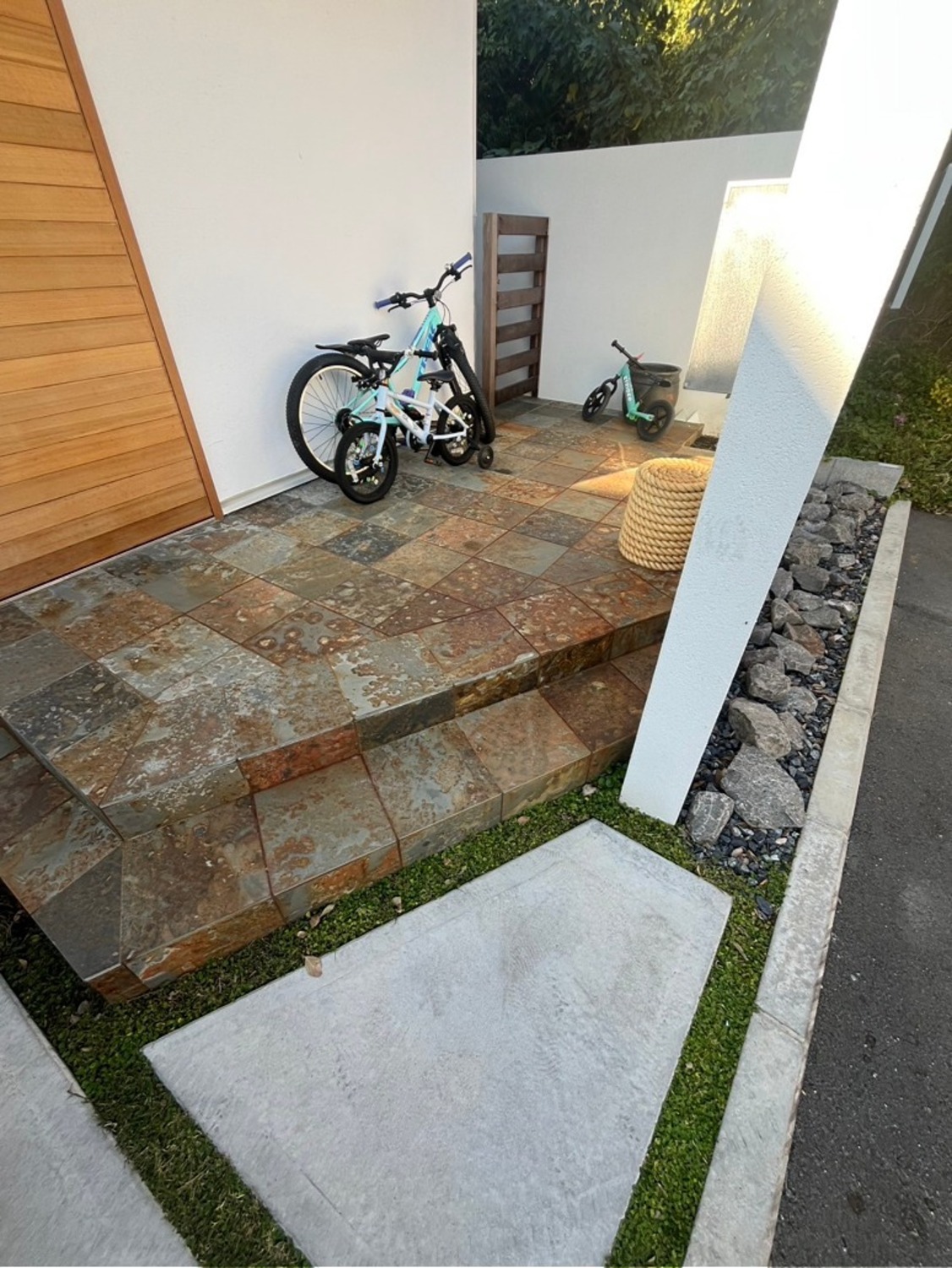 ホーム フォトギャラリー 新築・リフォーム すべて 神奈川県横浜市 自然素材を使って新築外構ガーデン S様邸 神奈川県横浜市 自然素材を使って新築外構ガーデン S様邸 新築 新築・リフォーム|すべて ご新築のご自宅の外構・ガーデンデザインのご希望を実現させてS様邸。ドライ系の植栽はご自身で植えられるため、また雰囲気が変わるかと思います。画像のみを表示全 8 枚中 1 枚目を表示Next ≫ 沖縄生まれの「花ブロック」が印象的な門袖。白く塗装されたのは、S様です。手前の砂利や景石をすえられたのもS様セルフ施工です。画像のみを表示全 8 枚中 2 枚目を表示≪ Prev|Next ≫ 玄関ポーチ階段も造作、施主様支給の自然石を石貼りしました。画像のみを表示全 8 枚中 3 枚目を表示≪ Prev|Next ≫ 駐車場2台の車庫土間コンクリートは箱抜きで、目地は草目地でご自身で種蒔きされています。画像のみを表示全 8 枚中 4 枚目を表示≪ Prev|Next ≫ ハードウッド材で施工した門扉の奥に、お庭に繋がる通路は自然石敷き+草目地。画像のみを表示全 8 枚中 5 枚目を表示≪ Prev|Next ≫ フォレストクレイジーペイビングの自然石張りテラス。画像のみを表示全 8 枚中 6 枚目を表示≪ Prev|Next ≫ お隣との境界フェンスもハードウッド材で施工。柱を角出しにしてシェードを取り付けられるように。パーティライトを渡して素敵にされてました。画像のみを表示全 8 枚中 7 枚目を表示≪ Prev|Next ≫ 画像のみを表示全 8 枚中 8 枚目を表示≪ Prev 一覧へ戻る 新築・リフォーム 地域別 スタイル別 シーン別 ご来店お客様用資料 すべて 新築 リフォーム 厚木市 相模原市 伊勢原市 海老名市 座間市 綾瀬市 綾瀬市 大和市 愛川町・清川村 藤沢市 藤沢市 茅ヶ崎市 鎌倉市 横浜市 逗子市 葉山町 川崎市 二宮町 大磯町 小田原市 平塚市 秦野市 南足柄市 寒川町 開成町 東京都町田市 東京都八王子市 東京都多摩市 東京都日野市 東京都三鷹市 東京都府中市 東京都世田谷区・杉並区 東京都稲城市 和風 アウトドア 和モダン 駐車場兼庭 ウッドデッキ モリニワ 門周り・玄関周り 目隠し・間仕切り テラス アプローチ 店舗 植栽 施工