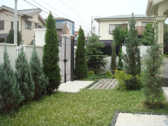 ホーム フォトギャラリー 新築・リフォーム すべて キャッスルガーデンをイメージにして 神奈川県相模原市S様邸 キャッスルガーデンをイメージにして 神奈川県相模原市S様邸 新築 新築・リフォーム|すべて 建物は、円形アーチを用いるなどトラディショナルな雰囲気の神奈川県相模原市S様邸。駐車場部分をオープンにして、シンメトリーデザインのファサードにしました。 駐車場の中心を、ヨーロッパの自然石の石畳が貫き、雰囲気をいっそう盛り上げています。画像のみを表示全 31 枚中 1 枚目を表示Next ≫ モールディング装飾された門袖や高さのある角門柱、鋳物門扉、黒のピンコロ石の蹴上げと白いタイルと、白と黒のコントラストが品良くおさまりました。画像のみを表示全 31 枚中 2 枚目を表示≪ Prev|Next ≫ 石畳アプローチにグランドカバーのヒメイワダレソウが、お出迎え。画像のみを表示全 31 枚中 3 枚目を表示≪ Prev|Next ≫ 株立ちのカツラ、ブルーアイス、ゴールドライダーで、白い壁に、緑の濃淡が映える庭になりました。画像のみを表示全 31 枚中 4 枚目を表示≪ Prev|Next ≫ グランドカバーには、ヒメイワダレソウは、5~9月位まで、小さな白い花を楽しむことができます。 お庭の様子はこちらから→画像のみを表示全 31 枚中 5 枚目を表示≪ Prev|Next ≫ 門柱脇にシンメトリーにグリーンコーンを、ドイツトウヒ、スカイロケット、ブルーヘブン…といろんな種類のコニファーを植えました。画像のみを表示全 31 枚中 6 枚目を表示≪ Prev|Next ≫ 裏庭は表のイメージと一転して、和の庭です。和室の窓から覗く、ヤマモミジの枝振りを中心に作庭しました。画像のみを表示全 31 枚中 7 枚目を表示≪ Prev|Next ≫ 天然竹垣で囲い、お隣りや周りの風景をシャットアウトし、心置きなく過ごせる癒し空間が完成しました。画像のみを表示全 31 枚中 8 枚目を表示≪ Prev|Next ≫ この施工例はテレビ東京「お庭百景」という番組で紹介されました こちらから見れます→YouTubeへ画像のみを表示全 31 枚中 9 枚目を表示≪ Prev|Next ≫ トラデショナルな建物に似合うお庭とヤマモミジの和庭 神奈川県相模原市S様邸 あんまり手が掛からないのが神奈川県相模原市S様のご希望でコニファー中心のお庭に。画像のみを表示全 31 枚中 10 枚目を表示≪ Prev|Next ≫ アプローチ脇の植栽です。門から玄関までの道のりがワクワクする雰囲気ができました。門脇のグリーンコーン、ドイツトウヒ、スカイロケット、間にエレガンテシマ。様々な色合いのコニファーがうまくまとまりました。画像のみを表示全 31 枚中 11 枚目を表示≪ Prev|Next ≫ 門脇に対のグリーンコーンが存在感があります。白い壁に緑の植栽がよく映えます。画像のみを表示全 31 枚中 12 枚目を表示≪ Prev|Next ≫ 雑木のカツラが一本入る事でポイントになり、景色にメリハリが出ます。奥から、カツラの脇がゴールドライダー、銀葉のブルーヘブンが連なり、ブリーンコーン。一番手前はブルーヘブンです。画像のみを表示全 31 枚中 13 枚目を表示≪ Prev|Next ≫ 芝生のお手入れは大変との事で、グランドカバーにヒメイワダレソウを植えました。一気に一面緑色になって、繁殖力にびっくりしました。画像のみを表示全 31 枚中 14 枚目を表示≪ Prev|Next ≫ 和室側の和の庭です。ヤマモミジにトクサにフッキソウ・・・和の庭の定番の植栽をあしらい落ち着いた癒しの空間ができました。画像のみを表示全 31 枚中 15 枚目を表示≪ Prev|Next ≫ 和室の中から眺めた景色です。この窓から見えるヤマモミジの枝ぶりを意識してお庭を構成しました。施主様に気に入って頂けた眺めになりました。画像のみを表示全 31 枚中 16 枚目を表示≪ Prev|Next ≫ 神奈川県相模原市 新築外構 和室の窓から眺める山モミジの坪庭 S様邸 植栽は、ヤマモミジを中心に、トクサ・フッキソウ・ヤブコウジ・セキショウ…と和庭の定番のものを選びました。派手過ぎない色合いの錆砂利を敷き詰めて落ちついた趣にしました。画像のみを表示全 31 枚中 17 枚目を表示≪ Prev|Next ≫ 和室の窓からちょうどいい具合に見えるように考え、山モミジや石積み・灯篭を配置しました。画像のみを表示全 31 枚中 18 枚目を表示≪ Prev|Next ≫ お庭の入口には、天然枝折戸を。画像のみを表示全 31 枚中 19 枚目を表示≪ Prev|Next ≫ 目隠しの天然竹垣で外の世界と遮断し、四季折々を楽しみながら、ほっとできる和のしつらえができました。画像のみを表示全 31 枚中 20 枚目を表示≪ Prev|Next ≫ 灯篭をはじめライティングで、夜もお庭を楽しむことができます。画像のみを表示全 31 枚中 21 枚目を表示≪ Prev|Next ≫ 表のコニファーガーデンと打って変わって、純和風空間に誘います。画像のみを表示全 31 枚中 22 枚目を表示≪ Prev|Next ≫ ヒメイワダレソウが広がるお庭のその後の様子…2011年9月 神奈川県相模原市S様邸 白い門周りが印象的なS様邸。門まで続く自然石ピンコロがいい風合いになってきています。画像のみを表示全 31 枚中 23 枚目を表