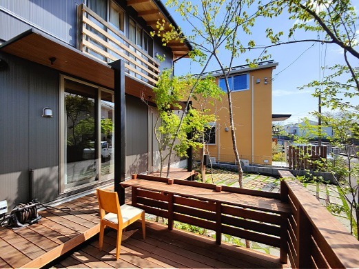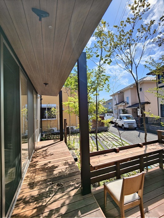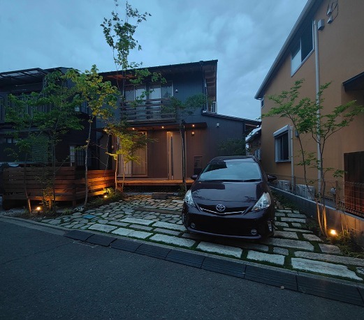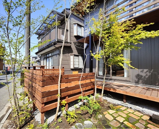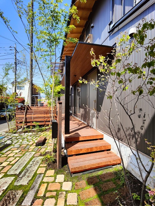 ホーム フォトギャラリー 新築・リフォーム すべて 神奈川県相模原市 新築外構 建物建築と外構を一体に考えた家 神奈川県相模原市 新築外構 建物建築と外構を一体に考えた家 新築 新築・リフォーム|すべて 外構・庭部分を、建物建築計画時から考えて造られた家です。限られた敷地を、余すとこなく有効活用。「隙あらばモリニワ」で、空間の住み分け。サフラン流をぎゅっと詰め込みました。画像のみを表示全 11 枚中 1 枚目を表示Next ≫ 玄関ポーチを外構工事で施工する利点を活かして、掃き出し窓前のウッドデッキとポーチをつなげて一体型に。イタウバ材を使ってます。画像のみを表示全 11 枚中 2 枚目を表示≪ Prev|Next ≫ イメージパースです。画像のみを表示全 11 枚中 3 枚目を表示≪ Prev|Next ≫ 玄関の庇も、掃き出し窓前テラス屋根と一体型に、テラスSC(LIXIL)を外構工事で施工。画像のみを表示全 11 枚中 4 枚目を表示≪ Prev|Next ≫ 笠木付きのウッド門柱も、イタウバ材でオリジナル施工。表札は、真鍮SBー04 05、ポストはオーパス(オンリーワンクラブ)シンプルにまとめました。画像のみを表示全 11 枚中 5 枚目を表示≪ Prev|Next ≫ 一段下がって、L字に張り出したウッドデッキ。2台分の駐車スペースを確保した上で、使い勝手も考えたウッドデッキの形状と位置、サイズです。カウンター型のテーブルを設置しました。画像のみを表示全 11 枚中 6 枚目を表示≪ Prev|Next ≫ ウッドデッキや建物に木陰を落とすように、周りにコナラ・ソロ・イロハモミジなど山採り雑木を植えています。キャノピー状に伸びた枝葉により木陰が出来て、天然の冷却装置になります。また、下枝のない樹形により、人の動線を邪魔しないため、普通植えられない位置にも植えることが可能です。写真は、植栽工事完工からしばらく経った3月頃から、新緑の季節までをごちゃまぜで掲載してるため、緑の成長度合いもまちまちになってます。完成形は3年後、その時々の成長過程の様子、季節毎の変化を楽しむ庭です。画像のみを表示全 11 枚中 7 枚目を表示≪ Prev|Next ≫ ウッドフェンスの当初の計画は、周りから全く見えなくなるような高さを予定していましたが、周りの方々が、気軽に声を掛けてくださるので、フェンスの高さを下げることにしました。画像のみを表示全 11 枚中 8 枚目を表示≪ Prev|Next ≫ 樹木をさりげなく照らすよう、ライティングもしています。テラスSCのライトは、スイッチでオンオフです。画像のみを表示全 11 枚中 9 枚目を表示≪ Prev|Next ≫ 大谷石、初狩石、古窯レンガ、枕木、縁石コンクリート廃材など・・・を敷いたテラス兼駐車場。草目地は、西洋芝とダイカンドラを種蒔きで。雑草も生えてきても共存。その方が自然は景色になるように思います。画像のみを表示全 11 枚中 10 枚目を表示≪ Prev|Next ≫ 素敵ですね、いつも眺めながら歩いてます・・・軽井沢みたい・・・と声を掛けられることも。通りを行く人に「緑のおすそ分け」で心地良さをおすそ分け。緑を通じて、コミュニケーションが取れる環境が出来ました。画像のみを表示全 11 枚中 11 枚目を表示≪ Prev 一覧へ戻る 新築・リフォーム 地域別 スタイル別 シーン別 ご来店お客様用資料 すべて 新築 リフォーム 厚木市 相模原市 伊勢原市 海老名市 座間市 綾瀬市 綾瀬市 大和市 愛川町・清川村 藤沢市 藤沢市 茅ヶ崎市 鎌倉市 横浜市 逗子市 葉山町 川崎市 二宮町 大磯町 小田原市 平塚市 秦野市 南足柄市 寒川町 開成町 東京都町田市 東京都八王子市 東京都多摩市 東京都日野市 東京都三鷹市 東京都府中市 東京都世田谷区・杉並区 東京都稲城市 和風 アウトドア 和モダン 駐車場兼庭 ウッドデッキ モリニワ 門周り・玄関周り 目隠し・間仕切り テラス アプローチ 店舗 植栽 施工