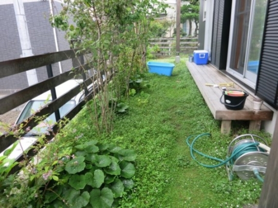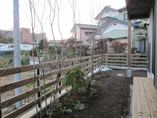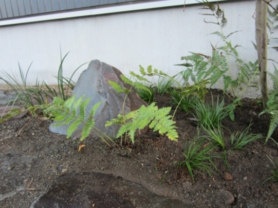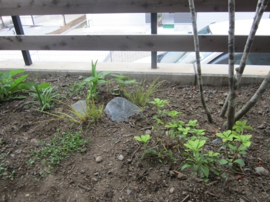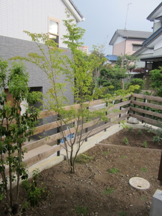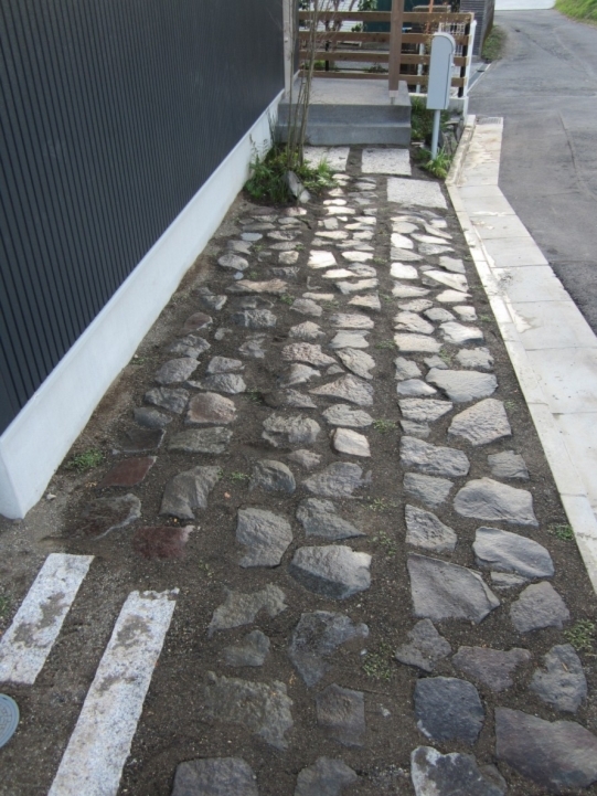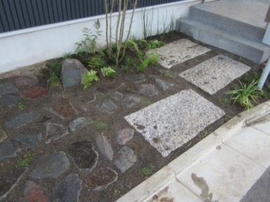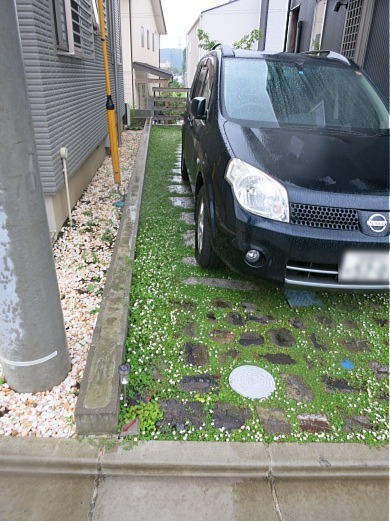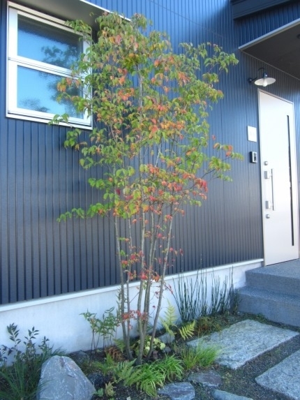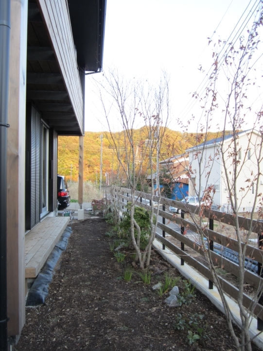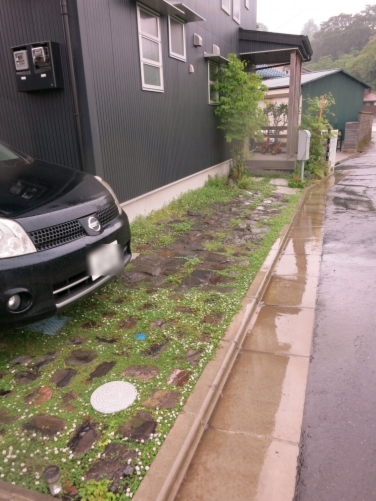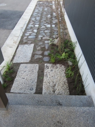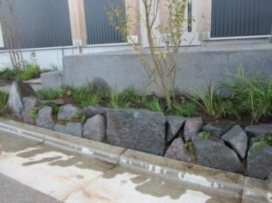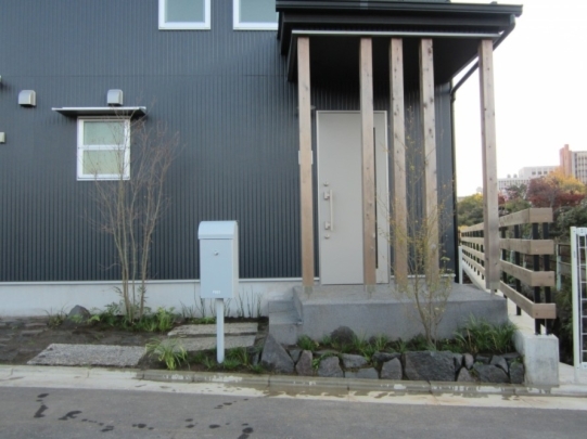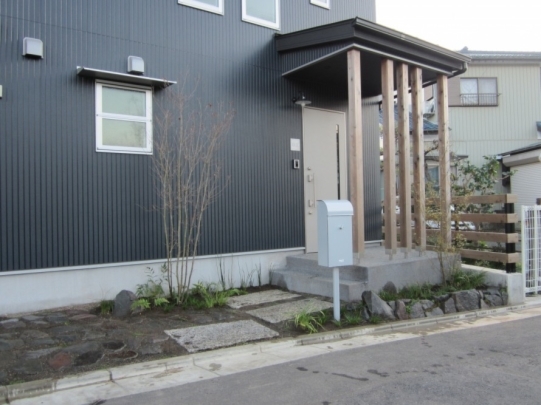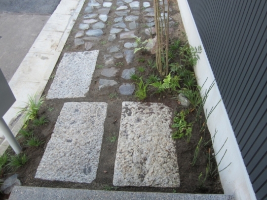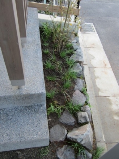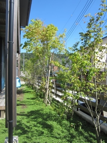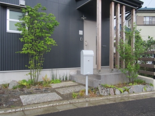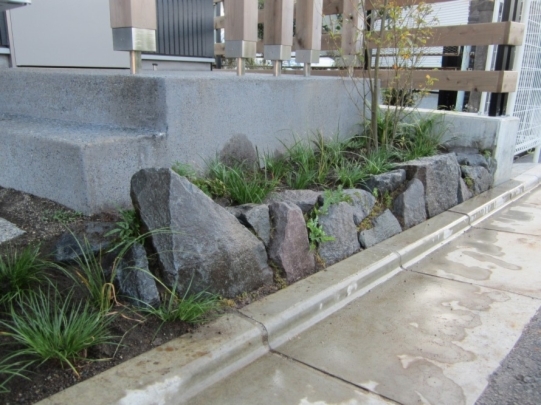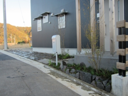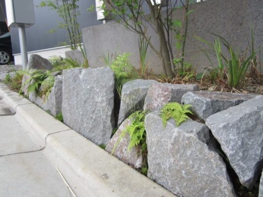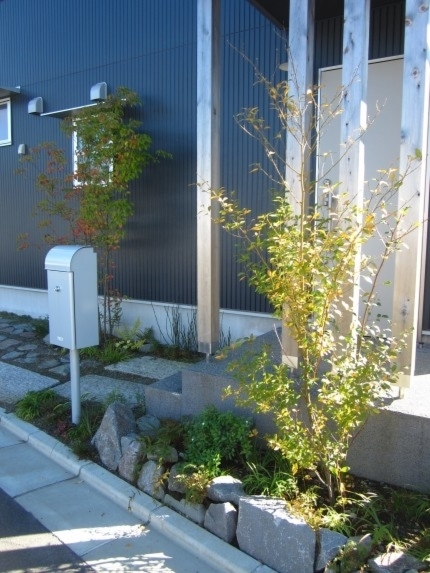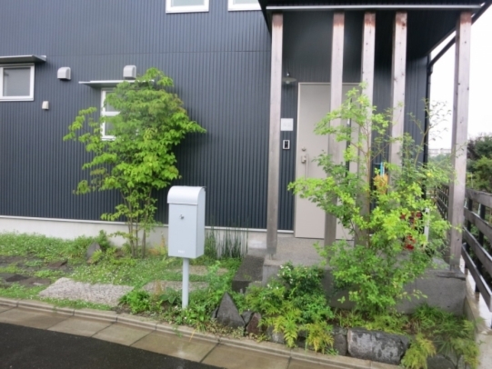 ホーム フォトギャラリー 新築・リフォーム すべて 神奈川県厚木市 新築外構 お手入れも頑張ると緑は答えてくれます‐2年後の様子 H様邸 神奈川県厚木市 新築外構 お手入れも頑張ると緑は答えてくれます‐2年後の様子 H様邸 新築 新築・リフォーム|すべて 私達もお気に入りの施工の神奈川県厚木市H様邸。度々様子を見にお寄りさせて頂いてますが、外構・お庭工事が完了して2年が経った今の様子をご紹介させて頂きます。施工当時の様子を見て頂くとよくわかりますが、完成したのが秋だったこともあり、葉っぱが落ちた後の木々やまだまだ土の部分が多い・・・感じでしたが、草目地のヒメイワダレソウも広がり、玄関脇のヤマボウシも生い茂っています。 施工当時の様子はこちらへ→画像のみを表示全 73 枚中 1 枚目を表示Next ≫ 環境が合わなくて枯れた下草もあり、別の種類の物を入れたり、H様がお好きな草花も足したりで・・・感じよくボリュームが出てきました。画像のみを表示全 73 枚中 2 枚目を表示≪ Prev|Next ≫ 緑の中に佇む、シンプルなデザインなのに存在感のあるポスト「フィール」。画像のみを表示全 73 枚中 3 枚目を表示≪ Prev|Next ≫ 玄関脇は、根府川石敷きのお庭兼来客時の臨時駐車場。こちらは北側で、草目地のヒメイワダレソウは日向が好きなため、中々広がらず、H様は苗を植え足したり、肥料をあげたりして、手を掛けられた結果、この状態になりました。画像のみを表示全 73 枚中 4 枚目を表示≪ Prev|Next ≫ 駐車場側もきれいに緑が広がっています。この状態になれば、ヒメイワダレソウの広がった根っこのおかげで、敷いた石も動くことが少なくなります。画像のみを表示全 73 枚中 5 枚目を表示≪ Prev|Next ≫ タイヤが乗る部分を御影石敷きにした庭の中の駐車場です。画像のみを表示全 73 枚中 6 枚目を表示≪ Prev|Next ≫ 縁台のようなヒノキデッキ。ブルーベリーやジューンベリーの実の収穫もでき、雑木に囲まれた心地いいお庭。奥には家庭菜園スペースもあります。画像のみを表示全 73 枚中 7 枚目を表示≪ Prev|Next ≫ オリジナル施工した「ヒノキウッドフェンス」の色も味のある色に変化してきています。画像のみを表示全 73 枚中 8 枚目を表示≪ Prev|Next ≫ 5月~9月頃まで白い花が咲くヒメイワダレソウ。「お花を踏んづけるのがかわいそう・・・」とおっしゃる方もいらっしゃいますが、踏まないと上に伸びてくるので、上に伸ばしたくない方はどうぞじゃんじゃん踏んで走り回って下さい。画像のみを表示全 73 枚中 9 枚目を表示≪ Prev|Next ≫ 地産地消の自然素材をシンプルモダンな建物に合わすと 神奈川県厚木市H様邸 こだわりの自然素材を使ってご自宅を建てられた神奈川県厚木市H様。外観はかなりモダンですが、家の中はヒノキの柱や床板、珪藻土の壁、栗の木のカウンターなど、ナチュラルな素材をふんだんに使った、とても居心地のいい家です。そんな家に合わせた外構、お庭を、「地産地消」素材を中心に提案させていただきました。コンクリートの駐車場、外構は「ちょっと違う」とお考えだったH様に、景色工房サフランの展示場のイメージがピッタリで、ご依頼いただく運びとなりました。画像のみを表示全 73 枚中 10 枚目を表示≪ Prev|Next ≫ ポストはオンリーワンクラブの「フィール」という製品です。独立仕様で、懐かしい感じもする存在感のあるポストです。色は当初、ホワイトやブラウン、グリーンもご提案しておりましたが、H様のご判断で最終的にシルバーに。サッシと同系色で、周りの緑や建物の柱、壁などが引き立つ、いいバランスになりました。画像のみを表示全 73 枚中 11 枚目を表示≪ Prev|Next ≫ アプローチは御影石の古材を敷きました。大判で厚みのある素材なので、下地コンクリート、モルタルなしで施工しています。まったく動く気配がなく、違和感なく出入りしていただくことができます。画像のみを表示全 73 枚中 12 枚目を表示≪ Prev|Next ≫ 2台目の駐車場になる玄関アプローチ横の石畳。地元、神奈川県産の根府川石を敷き詰めました。草目地にするためコンクリート、モルタルは使用せず、目地まで含めてすべて砂極めで施工しています。根府川石は硬く、見た目も硬質なイメージですが、草目地にすると柔らかさが出て、また灰褐色~茶褐色の微妙な色合いが、いい味を出してくれます。草が生えそろうのは来年の春以降になりますが、その頃はまた違った印象になるはずです。私も楽しみです。画像のみを表示全 73 枚中 13 枚目を表示≪ Prev|Next ≫ 南側のお庭には、濡れ縁風ウッドデッキを作成し、たくさんの落葉樹を植えました。アオダモ、ヤマモミジ、ソロ、ジューンベリー…。春は鮮やかな新芽の芽吹き、夏には緑陰、秋には燃えるような紅葉、冬は落葉して日差しを家の中へ。樹木は、彩のある景色と過ごしやすい環境を作ってくれる、天からのプレゼントです。画像のみを表示全 73 枚中 14 枚目を表示≪ Prev|Next ≫ 北側からの全景です。