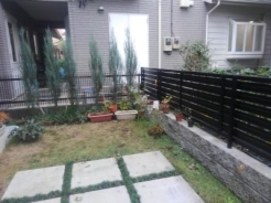 ホーム フォトギャラリー 新築・リフォーム すべて 神奈川県厚木市 庭リフォームのビフォーアフター 自然素材を使った駐車場兼雑木の庭に。K様邸 神奈川県厚木市 庭リフォームのビフォーアフター 自然素材を使った駐車場兼雑木の庭に。K様邸 リフォーム 新築・リフォーム|すべて ご新築から2年経って、芝生が日当たりが悪く、枯れてコケが生えたりでうまく育たない、またコニファー類が貧弱でちょっとさみしい・・・お庭を造り変えたい。画像のみを表示全 11 枚中 1 枚目を表示Next ≫ Before画像のみを表示全 11 枚中 2 枚目を表示≪ Prev|Next ≫ After 車も止められるお庭にコンクリート平板敷きと草目地のお庭になっていましたが全撤去し、自然素材の御影石、枕木、根府川石敷きに施工。草目地は西洋芝とヒメイワダレソウの混合で、環境にあった方が広がっていくようにしました。そして、山の景色を切り取ったように雑木の木々を植えました。掃き出し窓から眺める景色は、街中に居ながら避暑地のようです。画像のみを表示全 11 枚中 3 枚目を表示≪ Prev|Next ≫ Before画像のみを表示全 11 枚中 4 枚目を表示≪ Prev|Next ≫ After 玄関アプローチ横のコンクリートも撤去。根府川石敷きに。コナラとソロを植えました。枝葉が上部にしかない樹形のため、人の動線を邪魔することがなくスペースを有効活用し、緑を楽しむことが出来ます。画像のみを表示全 11 枚中 5 枚目を表示≪ Prev|Next ≫ Before画像のみを表示全 11 枚中 6 枚目を表示≪ Prev|Next ≫ After お隣さんとの目隠しに植えられていたコニファー類。枯れて茶色くなってしまった芝生。コニファーは撤去し、アセビ、ソヨゴ、オガタマ、ホンサカキの常緑樹を。画像のみを表示全 11 枚中 7 枚目を表示≪ Prev|Next ≫ Before画像のみを表示全 11 枚中 8 枚目を表示≪ Prev|Next ≫ After お母様が育てられているプランターや鉢植えの植物。コナラ、イロハモミジ、ヤマコウバシ、アオダモ、セキショウやホタルブクロなどの下草類を植え、お母さんが育てられていた植物も一緒に植えられ、楽しまれているようです。画像のみを表示全 11 枚中 9 枚目を表示≪ Prev|Next ≫ Before画像のみを表示全 11 枚中 10 枚目を表示≪ Prev|Next ≫ After 道路側にも、コニファー類を中心にした植栽が植えられていました。コナラ、エゴノキ、イロハモミジ、アセビ、ソヨゴなどに植え替え。通りを歩く人にも、緑のおすそ分けを。画像のみを表示全 11 枚中 11 枚目を表示≪ Prev 一覧へ戻る 新築・リフォーム 地域別 スタイル別 シーン別 ご来店お客様用資料 すべて 新築 リフォーム 厚木市 相模原市 伊勢原市 海老名市 座間市 綾瀬市 綾瀬市 大和市 愛川町・清川村 藤沢市 藤沢市 茅ヶ崎市 鎌倉市 横浜市 逗子市 葉山町 川崎市 二宮町 大磯町 小田原市 平塚市 秦野市 南足柄市 寒川町 開成町 東京都町田市 東京都八王子市 東京都多摩市 東京都日野市 東京都三鷹市 東京都府中市 東京都世田谷区・杉並区 東京都稲城市 和風 アウトドア 和モダン 駐車場兼庭 ウッドデッキ モリニワ 門周り・玄関周り 目隠し・間仕切り テラス アプローチ 店舗 植栽 施工