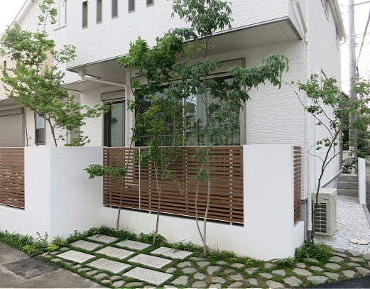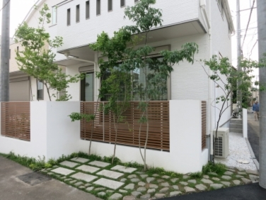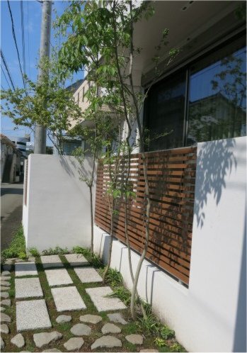 ホーム フォトギャラリー 新築・リフォーム すべて 神奈川県相模原市 新築外構 ナチュラル和モダンな門周り S様邸 神奈川県相模原市 新築外構 ナチュラル和モダンな門周り S様邸 新築 新築・リフォーム|すべて 落ち着いた雰囲気の建物に合わせた門周り。アオダモとマルバノキを対に植えました。画像のみを表示全 41 枚中 1 枚目を表示Next ≫ 白い左官仕上げ門柱にガラスブロック、アクセントにウッド列柱を脇に。表札は、施主様がお選びなられた和を感じさせる、美濃焼サイン(TOEX)。画像のみを表示全 41 枚中 2 枚目を表示≪ Prev|Next ≫ 足元にも植栽を入れて。下から表札を照らすようにライティングもしました。画像のみを表示全 41 枚中 3 枚目を表示≪ Prev|Next ≫ この施工例のトータルデザインはこちらへ→画像のみを表示全 41 枚中 4 枚目を表示≪ Prev|Next ≫ 雑木に囲まれた和モダンな坪庭のある家 神奈川県相模原市S様邸 限られたスペースを有効に、機能的でありながら緑も楽しめる外構・お庭プランの神奈川県相模原市S様邸。植栽プランはすべてお任せ頂きました。手前に植えたモミジをはじめ、歩いて邪魔にならない等・・・生活動線や環境を考えて選んだ雑木の木々。マイリッシュA4型チョコメイプル色(三協)の木調色フェンスでナチュラルな雰囲気を演出しています。画像のみを表示全 41 枚中 5 枚目を表示≪ Prev|Next ≫ コナラ・サワフタギ・アオダモ・・・建物の中からの眺めも殺風景にならず、四季折々の景色を楽しめます。画像のみを表示全 41 枚中 6 枚目を表示≪ Prev|Next ≫ 御影石と根府川石敷きの、臨時に車を止める事もできるお庭兼駐車スペース。草目地には西洋芝とヒメイワダレソウを植えました。ジューンベリーは、お子さんと実の収穫も楽しんで頂きたいと思います。画像のみを表示全 41 枚中 7 枚目を表示≪ Prev|Next ≫ マイリッシュA6型チョコメイプル色(三協)の縦桟フェンス。隣に植えたのは、マルバノキです。画像のみを表示全 41 枚中 8 枚目を表示≪ Prev|Next ≫ 白い左官仕上げの門柱には、アクセントにガラスブロック(たまゆら)+アルミ列柱(70角)脇に植えたのはアオダモ。ガーデンアップライト2型(タカショー)を設置し、夜の帰宅時には、優しく照らす灯りでホッと出来る演出をしました。画像のみを表示全 41 枚中 9 枚目を表示≪ Prev|Next ≫ イタウバ材デッキの奥には和モダンな坪庭。イロハモミジにコナラ、市松模様の敷石、ミニ灯篭風の和風ローボルトライト 月雫(つきしずく) 瓦色。画像のみを表示全 41 枚中 10 枚目を表示≪ Prev|Next ≫ 緑の力を借りて、雑木に囲まれたナチュラル和モダンの家 神奈川県相模原市S様邸 緑と人や車との共有スペースを考慮しながら、限られたスペースに雑木の木々を植えました。緑に囲まれていることで、緑の蒸散作用のおかげで、真夏でも涼しく感じながら過ごすことができます。画像のみを表示全 41 枚中 11 枚目を表示≪ Prev|Next ≫ ジューンベリーは、春には白い花を咲かせ、その名の通り6月頃実が成り、収穫して食べることが出来ます。画像のみを表示全 41 枚中 12 枚目を表示≪ Prev|Next ≫ お庭兼駐車場スペースの石畳の目地には、西洋芝を種を蒔き草目地に。画像のみを表示全 41 枚中 13 枚目を表示≪ Prev|Next ≫ 和の坪庭に植えたイロハモミジ。秋の紅葉が楽しみです。画像のみを表示全 41 枚中 14 枚目を表示≪ Prev|Next ≫ 左手前に植えたのはコナラ。2階からもちらりと見えるの高さ。画像のみを表示全 41 枚中 15 枚目を表示≪ Prev|Next ≫ バイカウツギ、フッキソウ、キチジョウソウ・・・一年後のボリュームアップした姿が楽しみです。画像のみを表示全 41 枚中 16 枚目を表示≪ Prev|Next ≫ 背の高い雑木は、お庭に木陰を作ってくれます。おうちの中から見る景色も、道路が丸見えよりも心地良いのではないでしょうか。画像のみを表示全 41 枚中 17 枚目を表示≪ Prev|Next ≫ 玄関前には、アオダモとマルバノキを対になるように植えました。画像のみを表示全 41 枚中 18 枚目を表示≪ Prev|Next ≫ 門柱下にも植栽スペースを。白い左官塗り門柱に緑をプラスしてさらに彩りよく。画像のみを表示全 41 枚中 19 枚目を表示≪ Prev|Next ≫ 神奈川県相模原市 雑木に囲まれた和モダンな坪庭のある家のその後 S様邸 コナラ・サワフタギ・アオダモ・・・建物の中からの眺めも殺風景にならず、四季折々の景色を楽しめ神奈川県相模原市るS様邸。その後の緑のボリュームが増した様子を紹介させて頂きます。画像のみを表示全 41 枚中 20 枚目を表示≪ Prev|Next ≫ 電柱も移設されすっきり、お庭兼臨時駐車場の石畳。目地には西洋芝。種を撒いて可愛い芽が出てきました。画像のみを表示全 41 枚中 21 枚目を表示≪ Prev|Next ≫ 石畳は、御影石の方形と根府川石を使っています。 画像のみを表示全 41 枚中 22 枚目を表示≪ Prev|Next ≫ 和の坪庭を目の前に、イタウバ材のウッドデッキ。雑木の木陰が出来て心地よさそうです。画像のみを表示全 41 枚中 23 枚目を表示≪ Prev|Next ≫ 掃