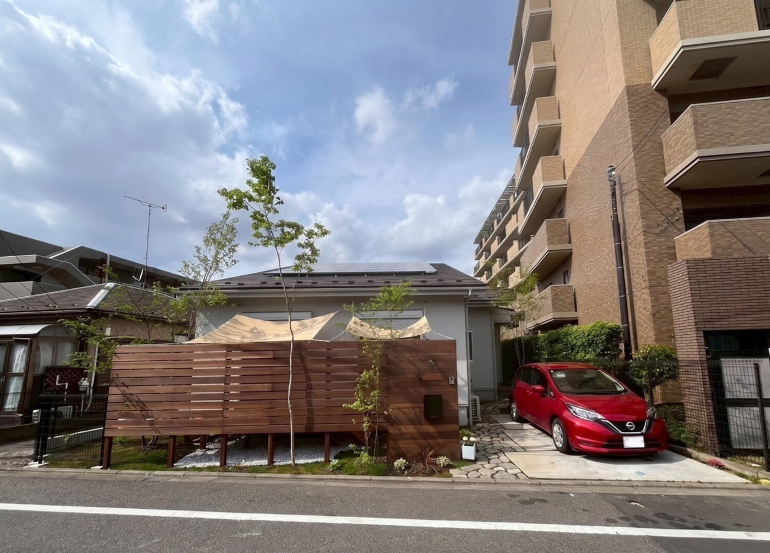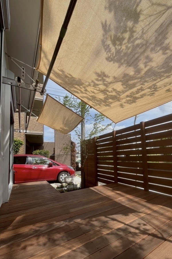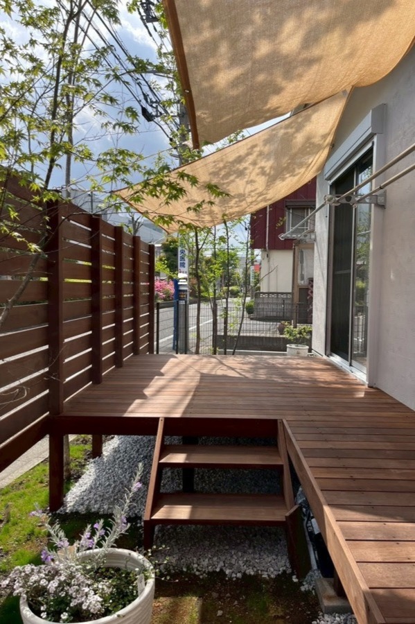 ホーム フォトギャラリー 新築・リフォーム すべて 神奈川県大和市 平屋の新築外構 ウッドデッキに木陰をつくりで庭を楽しむ T様邸 神奈川県大和市 平屋の新築外構 ウッドデッキに木陰をつくりで庭を楽しむ T様邸 新築 新築・リフォーム|すべて 神奈川県大和市でご新築されたT様。平屋の建物の外構・庭工事です。画像のみを表示全 6 枚中 1 枚目を表示Next ≫ 通りに面した立地条件でも、庭で過ごしていただきたく、ウッドフェンスで目隠し。 掃き出し窓からフラットにつながるウッドデッキ。 夏でも過ごしやすくするために、木陰が出来るように、山採り雑木を植えてます。画像のみを表示全 6 枚中 2 枚目を表示≪ Prev|Next ≫ 木陰がちゃんと出来るまで3年くらいかかるため、その間はシェードをして日除けします。T様は、目隠しにも使われています。 画像のみを表示全 6 枚中 3 枚目を表示≪ Prev|Next ≫ 門袖は、ウッドフェンスと一体になっています。 ハードウッド材を使っているので、1年くらいでアクが落ちて、シルバーグレー色になります。画像のみを表示全 6 枚中 4 枚目を表示≪ Prev|Next ≫ アプローチは自然石敷きに。駐車場は箱抜きコンクリートに。 鉢植えや下草類はT様ご自身でガーデニングされています。画像のみを表示全 6 枚中 5 枚目を表示≪ Prev|Next ≫ アプローチは自然石敷きに。駐車場は箱抜きコンクリートに。 鉢植えや下草類はT様ご自身でガーデニングされています。画像のみを表示全 6 枚中 6 枚目を表示≪ Prev 一覧へ戻る 新築・リフォーム 地域別 スタイル別 シーン別 ご来店お客様用資料 すべて 新築 リフォーム 厚木市 相模原市 伊勢原市 海老名市 座間市 綾瀬市 大和市 愛川町・清川村 藤沢市 茅ヶ崎市 鎌倉市 横浜市 逗子市 葉山町 川崎市 二宮町 大磯町 小田原市 平塚市 秦野市 南足柄市 寒川町 開成町 東京都町田市 東京都八王子市 東京都多摩市 東京都日野市 東京都三鷹市 東京都府中市 東京都世田谷区・杉並区 東京都稲城市 和風 アウトドア 和モダン 駐車場兼庭 駐車場 ウッドデッキ モリニワ・雑木の庭 テラス 門周り・玄関周り 目隠し・間仕切り アプローチ 店舗 カーポート・自転車置き場(サイクルポート) ガーデンアイテム 植栽 施工