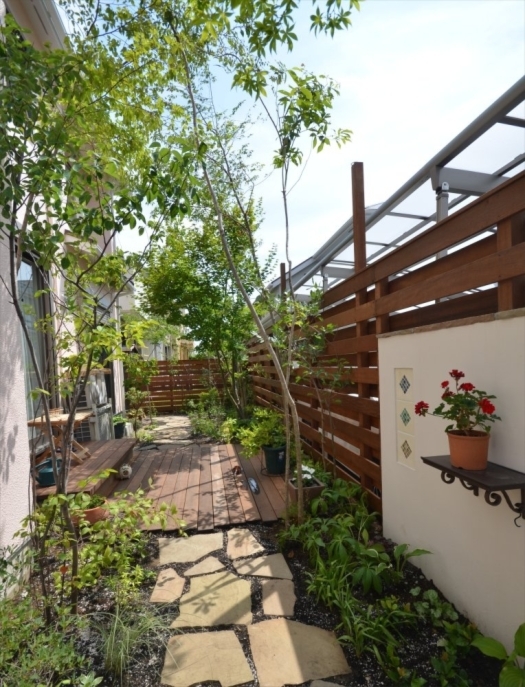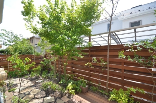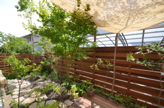 ホーム フォトギャラリー 新築・リフォーム すべて 稲城市 真夏の暑いお庭の必需品日除けアイテムのシェード K様邸 稲城市 真夏の暑いお庭の必需品日除けアイテムのシェード K様邸 リフォーム 新築・リフォーム|すべて 真夏のデッキ上の温度は、天然木で60℃を超えます。そこで、シェード(タカショー)で日除けを設置。ウッドデッキの柱を高くし、シェードの金具が設置出来るようにしています。雨よけは出来ないメッシュタイプなので、雨が降ってきたら取り外す必要があります。画像のみを表示全 15 枚中 1 枚目を表示Next ≫ シェードプラス、雑木の木々を周りに植えることで出来る、微気候改善をすると、さらに快適に過ごせるお庭になります。画像のみを表示全 15 枚中 2 枚目を表示≪ Prev|Next ≫ K様邸のガーデンリフォーム前の様子です。 ビフォーアフターはこちらへ→画像のみを表示全 15 枚中 3 枚目を表示≪ Prev|Next ≫ 稲城市 ガーデンリフォームのビフォーアフター 山採り雑木と自然素材で心地良いテラス。K様邸 築10年経った東京都稲城市K様邸。既存樹木・生垣を見直し、お隣との境界の目隠し、南側の日除けをご希望。画像のみを表示全 15 枚中 4 枚目を表示≪ Prev|Next ≫ Before画像のみを表示全 15 枚中 5 枚目を表示≪ Prev|Next ≫ After 自然がお好きで、野鳥もお好きなK様。サフランのモリニワを楽しみに、遠方よりお打ち合わせにご来店頂きました。ありがとうございます。山採り雑木や自然素材を使って、パッシブデザインを取り入れたガーデンリフォームにより、機能的で、日々山の中にいるような心地良さを感じながら過ごせるお庭に・・・。画像のみを表示全 15 枚中 6 枚目を表示≪ Prev|Next ≫ Before画像のみを表示全 15 枚中 7 枚目を表示≪ Prev|Next ≫ After 土のままの状態のところは、西洋芝でグランドカバーをされて、うまく育たなかったそうです。歩く箇所は自然石(フォレスト・クレイジーペイビング)敷き、草目地はご自身で再度チャレンジするそうです。西洋芝の管理方法は伝授させて頂きました。画像のみを表示全 15 枚中 8 枚目を表示≪ Prev|Next ≫ Before画像のみを表示全 15 枚中 9 枚目を表示≪ Prev|Next ≫ After 南側の掃き出し窓は、既存テラスを活かして・・・ イタウバ材で、ステップのある低床デッキに。既存テラスの踏み面を板張り+蹴上げを自然石張り(フォレストペイビング)にし、ランダムに張ったウッドデッキに。ソロやコナラで木陰を作りながら、夏はシェードで日陰を作り、快適なテラスに。画像のみを表示全 15 枚中 10 枚目を表示≪ Prev|Next ≫ Before画像のみを表示全 15 枚中 11 枚目を表示≪ Prev|Next ≫ After 既存の樹木は、金木犀、モミジは残しました。 刈り込まれた金木犀は自然風剪定に。大きくなり過ぎたモミジも透かして涼しげな樹形に年月をかけて整えていきます。画像のみを表示全 15 枚中 12 枚目を表示≪ Prev|Next ≫ Before画像のみを表示全 15 枚中 13 枚目を表示≪ Prev|Next ≫ After 大きくなり過ぎたベニカナメモチの生垣は撤去。お庭がちょっと広く使え、明るいお庭になります。イタウバ材のフェンスに。K様のご希望で、窓から眺める景色に変化が欲しいということで、左官仕上げの飾り壁を。自然石の笠木(フォレストコーピング)にクロススクエアガラス デザインタイプでアクセントを。画像のみを表示全 15 枚中 14 枚目を表示≪ Prev|Next ≫ 新たに、アオダモ、エゴノキ、クロモジ、ナツハゼ、ジューンベリーなどを植えました。木陰が心地良い避暑地の中にあるテラスのような雰囲気になったのではないでしょうか。可愛い鳥の巣箱も付けられて、どんな鳥がやってくるか楽しみですね。画像のみを表示全 15 枚中 15 枚目を表示≪ Prev 一覧へ戻る 新築・リフォーム 地域別 スタイル別 シーン別 ご来店お客様用資料 すべて 新築 リフォーム 厚木市 相模原市 伊勢原市 海老名市 座間市 綾瀬市 綾瀬市 大和市 愛川町・清川村 藤沢市 藤沢市 茅ヶ崎市 鎌倉市 横浜市 逗子市 葉山町 川崎市 二宮町 大磯町 小田原市 平塚市 秦野市 南足柄市 寒川町 開成町 東京都町田市 東京都八王子市 東京都多摩市 東京都日野市 東京都三鷹市 東京都府中市 東京都世田谷区・杉並区 東京都稲城市 和風 アウトドア 和モダン 駐車場兼庭 ウッドデッキ モリニワ 門周り・玄関周り 目隠し・間仕切り テラス アプローチ 店舗 植栽 施工