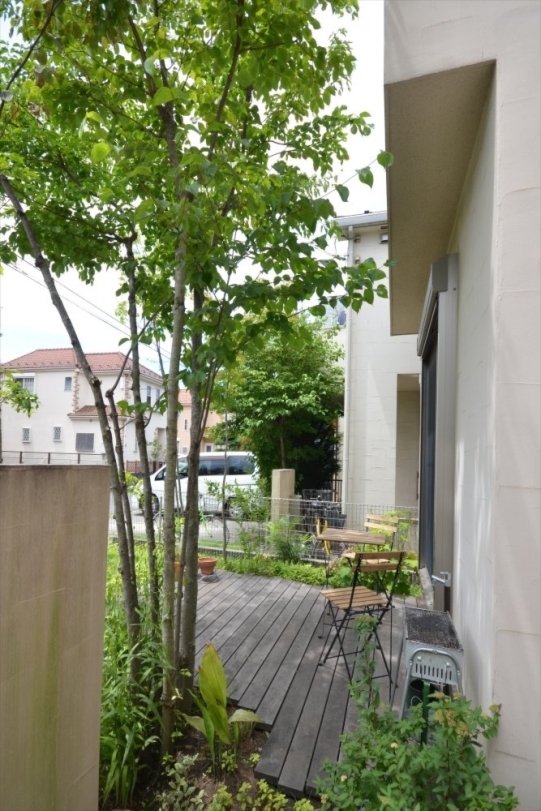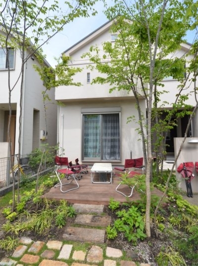 ホーム フォトギャラリー 新築・リフォーム すべて 神奈川県相模原市 完工からそろそろ2年になる緑陰の雑木の庭 ガーデンリフォーム工事 Y様邸 神奈川県相模原市 完工からそろそろ2年になる緑陰の雑木の庭 ガーデンリフォーム工事 Y様邸 リフォーム 新築・リフォーム|すべて 2018年7月、ウッドデッキに木陰が出来、風がそよそよ気持ち良さげな避暑地のようなお庭は、神奈川県相模原市Y様邸。2016年10月にガーデンリフォームが完成。雑木の庭にリフォームされ、雑木の剪定に伺わせて頂きました。画像のみを表示全 19 枚中 1 枚目を表示Next ≫ ハードウッド材のウッドデッキ、枕木のステップ、アンティークレンガ敷きのテラス。画像のみを表示全 19 枚中 2 枚目を表示≪ Prev|Next ≫ リフォーム後も残した既存のヤマボウシも剪定。涼しげな樹形で、存在感のある頼もしい高木です。画像のみを表示全 19 枚中 3 枚目を表示≪ Prev|Next ≫ ガーデンファニチャーがあると絵になります。庭を眺めながらお茶したくなりませんか?画像のみを表示全 19 枚中 4 枚目を表示≪ Prev|Next ≫ キチキチなお手入れより、自然の成り行きを楽しむ庭。と言っても、庭の様子で、Y様の目が行き届いているのがわかります。画像のみを表示全 19 枚中 5 枚目を表示≪ Prev|Next ≫ 道路に面して植えた木々も順調に育っています。街を通る人にも緑の心地良さのおすそ分けです。画像のみを表示全 19 枚中 6 枚目を表示≪ Prev|Next ≫ 2016年 10月 完工当時の様子はこちらへ→画像のみを表示全 19 枚中 7 枚目を表示≪ Prev|Next ≫ 神奈川県相模原市 ガーデンリフォームのビフォーアフター コニファーガーデンから雑木の庭へ。Y様邸 2016年10月、LIXIL相模原ショールームで弊社が開催した「雑木の庭セミナー」とご相談会にご参加頂きましたY様。お庭のリフォームを承りました。大きくなり過ぎたコニファーが、まず目に飛び込んでくるお庭。画像のみを表示全 19 枚中 8 枚目を表示≪ Prev|Next ≫ Before画像のみを表示全 19 枚中 9 枚目を表示≪ Prev|Next ≫ After コニファー3本を撤去。2台分あったコンクリート駐車場は、1台分は必要ないとコンクリートを撤去。土になった部分に、コナラ、イロハモミジ、ソロ、ジューンベリー、ヤマコウバシを植え、雑木林の中にあるテラスのような雰囲気に。道路からの目隠しになるよう常緑樹のホンサカキ、ソヨゴを植えています。画像のみを表示全 19 枚中 10 枚目を表示≪ Prev|Next ≫ Before画像のみを表示全 19 枚中 11 枚目を表示≪ Prev|Next ≫ After 常緑のコニファーの存在感がかなり大きいです。2階位の高さになったヤマボウシもいます。掃き出し窓前にイタウバ材のウッドデッキ。枕木の階段を降りて、古窯レンガ敷きのテラスに。草目地には西洋芝を。ヤマボウシは残し、新たに植えた木に馴染むよう剪定しました。お庭へ出やすい動線が出来て、室内から眺める景色も爽やかになったことでしょう。画像のみを表示全 19 枚中 12 枚目を表示≪ Prev|Next ≫ Before画像のみを表示全 19 枚中 13 枚目を表示≪ Prev|Next ≫ After 写真を撮らせて頂こうと伺った日に、息子さんがBBQの準備をされていました。お話を聞くと、このお庭でBBQをするのは初めて、「お庭を素敵にしてくれてありがとうございます・・・」とおっしゃて頂きました。お庭をリフォームした事により、ご自宅での楽しみが増えたようです。私達も嬉しく思いました。画像のみを表示全 19 枚中 14 枚目を表示≪ Prev|Next ≫ その後の様子 そろそろ2年経ちます。 こちらへ→画像のみを表示全 19 枚中 15 枚目を表示≪ Prev|Next ≫ 神奈川県相模原市 コニファーと芝生の庭から雑木のあるテラスガーデンにリフォーム Y様邸 2016年10月、LIXIL相模原ショールームで弊社が開催した「雑木の庭セミナー」とご相談会にご参加頂きましたY様。既存のお庭は大きくなり過ぎたコニファーとヤマボウシがあり、芝生のお手入れが行き届いたお庭でした。セミナーでお話させて頂いた雑木の庭の考え方に共感頂き、雑木の庭へのリフォームを承りました。 既存の巨木になったコニファー3本は撤去、ヤマボウシは残し剪定。芝生部分はテラスにし、お手入れを軽減させました。画像のみを表示全 19 枚中 16 枚目を表示≪ Prev|Next ≫ 2台分あったコンクリート駐車スペース。1台あれば十分との事、コンクリートを撤去。土になった部分に、道路からの目線を遮るようホンサカキ、ソヨゴの常緑樹を植えました。法面にし、キチジョウソウやフッキソウなどを植えました。うまく育ち3年後の様子が楽しみです。また、自然に生えてきた植物も、気に入ったら残す・・・と、自然な景色を楽しむ、お手入れも気楽なお庭です。画像のみを表示全 19 枚中 17 枚目を表示≪ Prev|Next ≫ イタウバ材でウッドデッキ。枕木で階段。掃き出し窓からお庭への出やすくなりました。画像のみを表示全 19 枚中 18 枚目を表示≪ Prev|Next ≫ 枕木階段の先は、古窯レンガ敷きテラスに。草目地は西洋芝。リフォーム前は眺めるお庭だったよう
